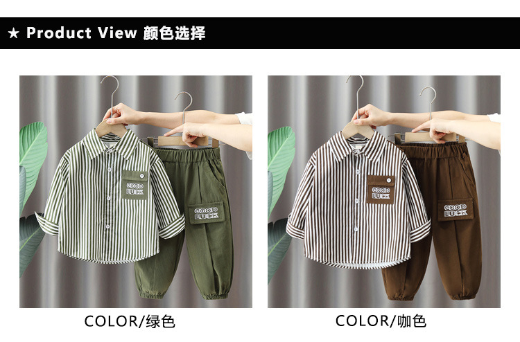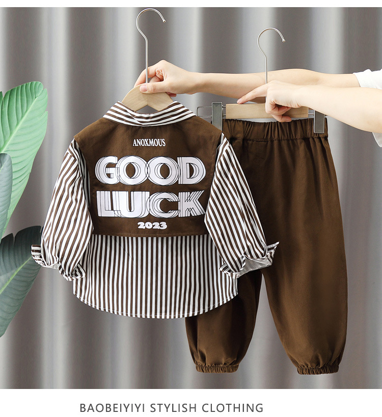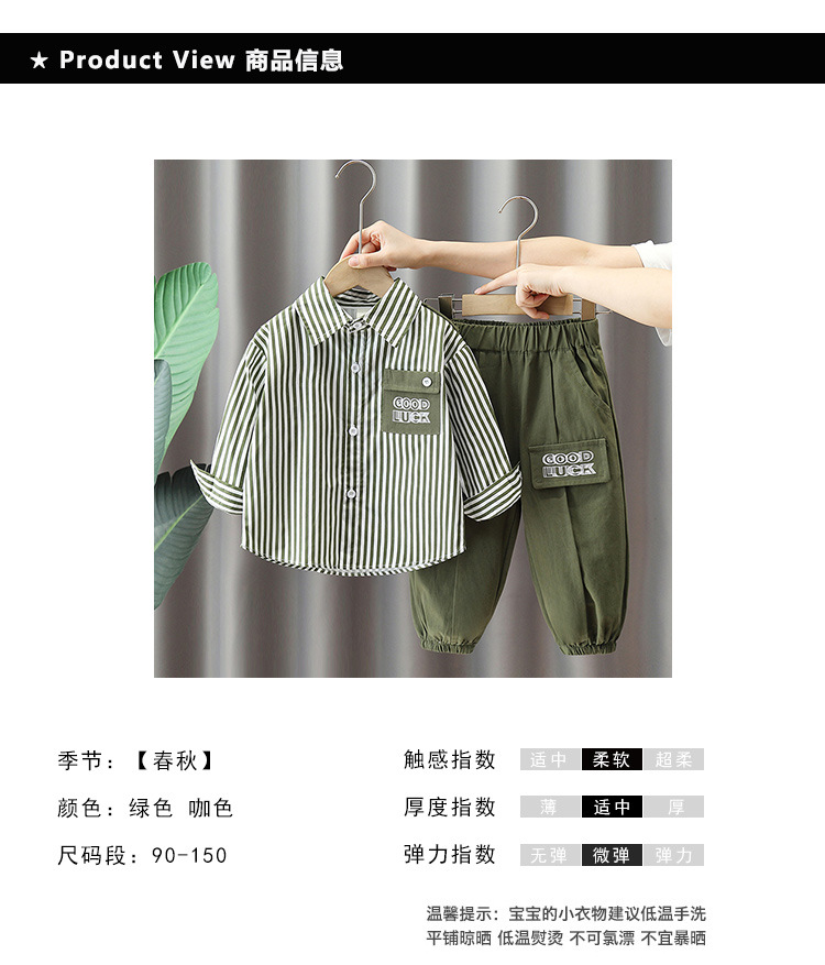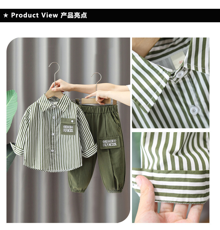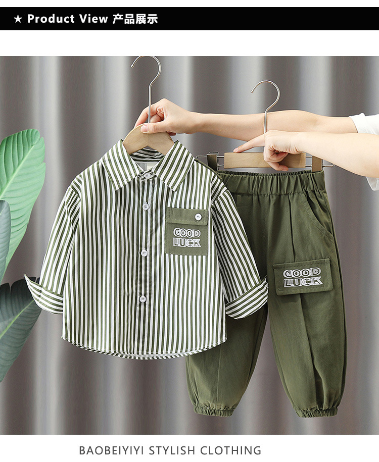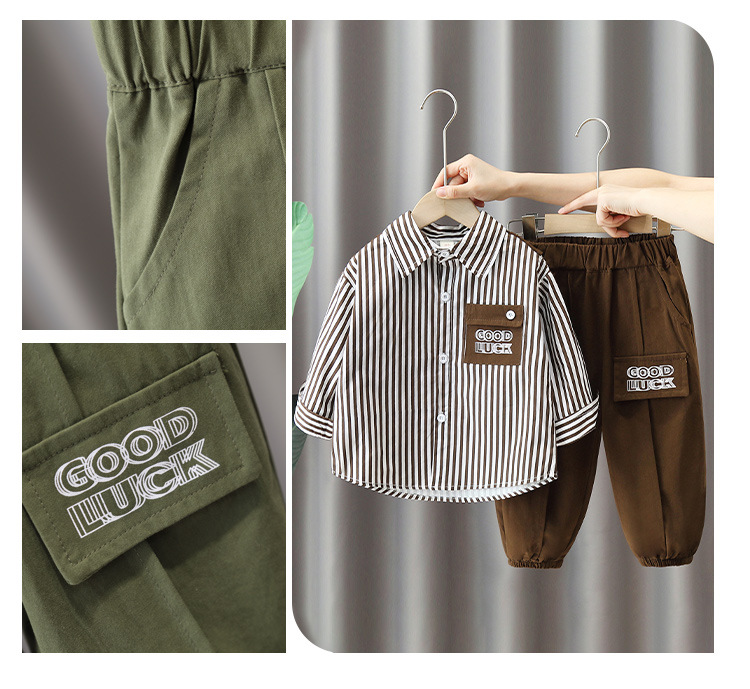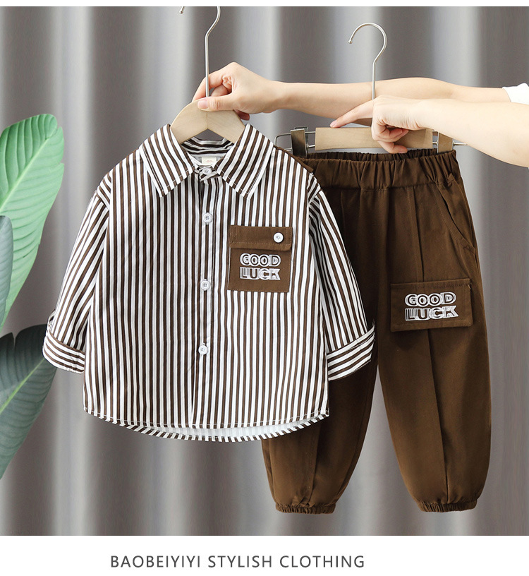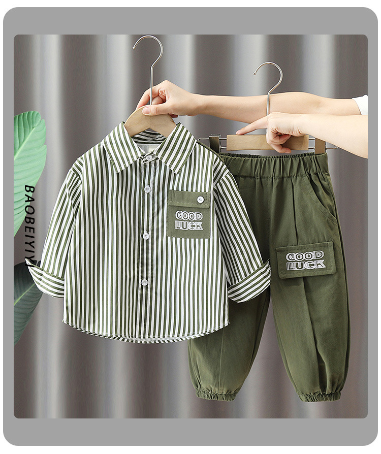 5862 Traje de otoño para niños 2024 Camisa a rayas de primavera y otoño para niños guapos Traje de dos piezas de otoño para bebés