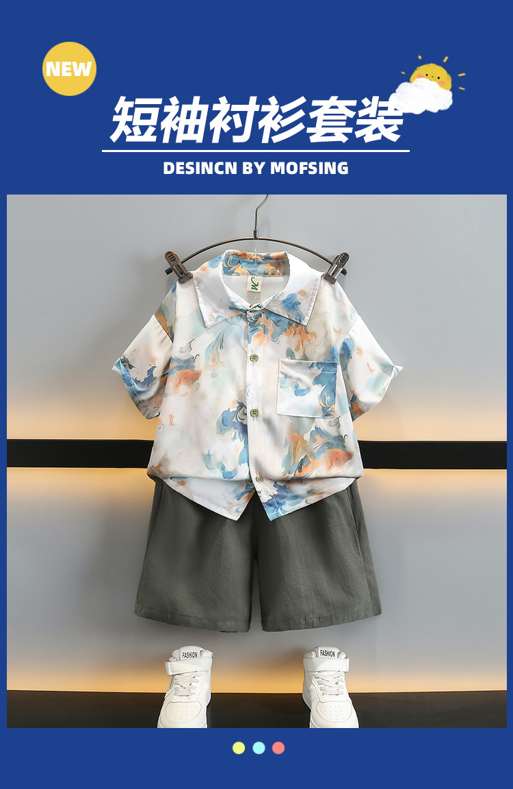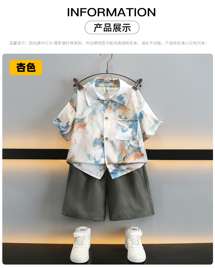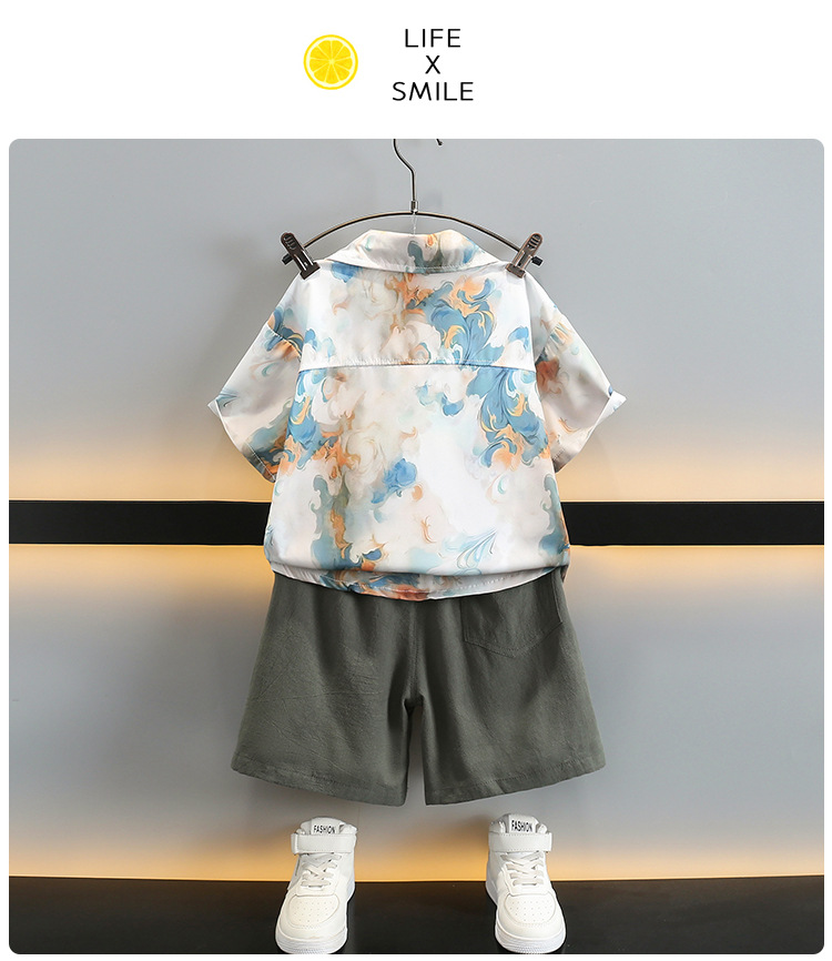 5711 Traje de manga corta de camisa de estilo occidental de verano para niños 2025 nuevo y hermoso vestido de verano para niños delgado tie-dye frito callejero