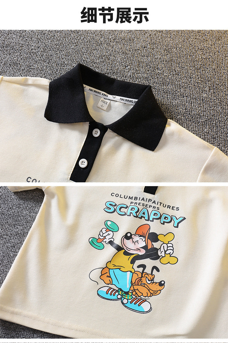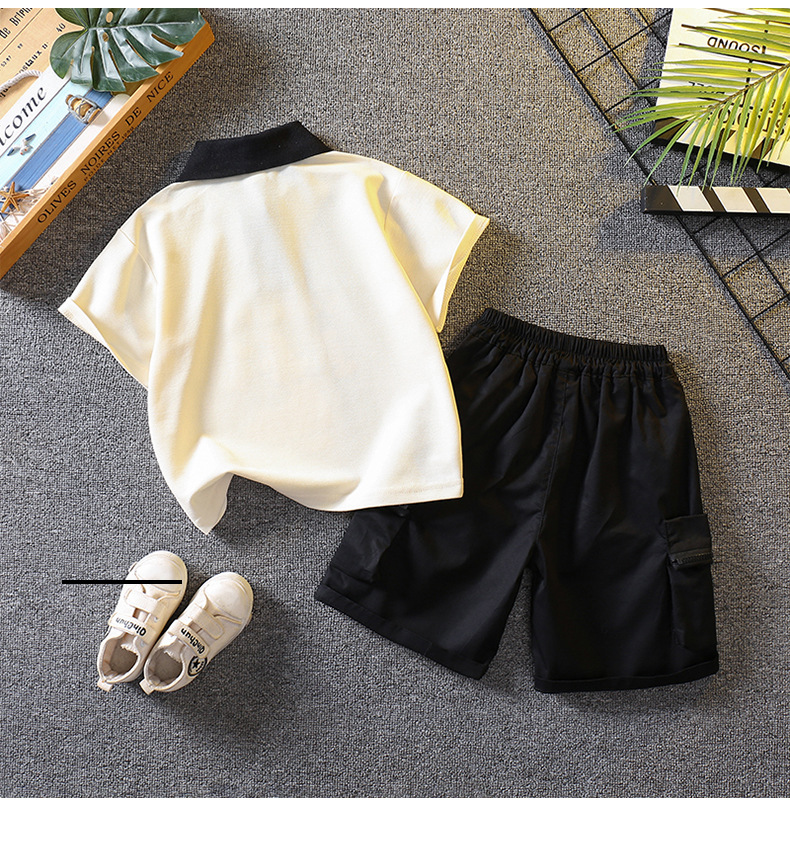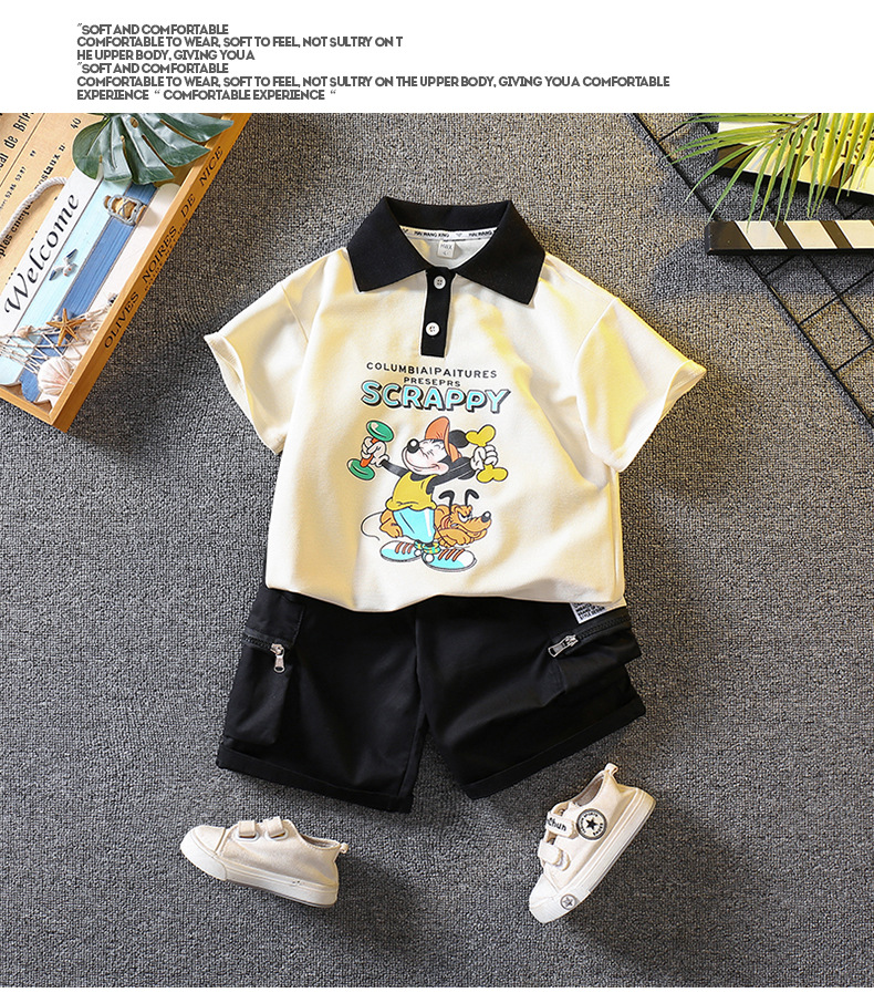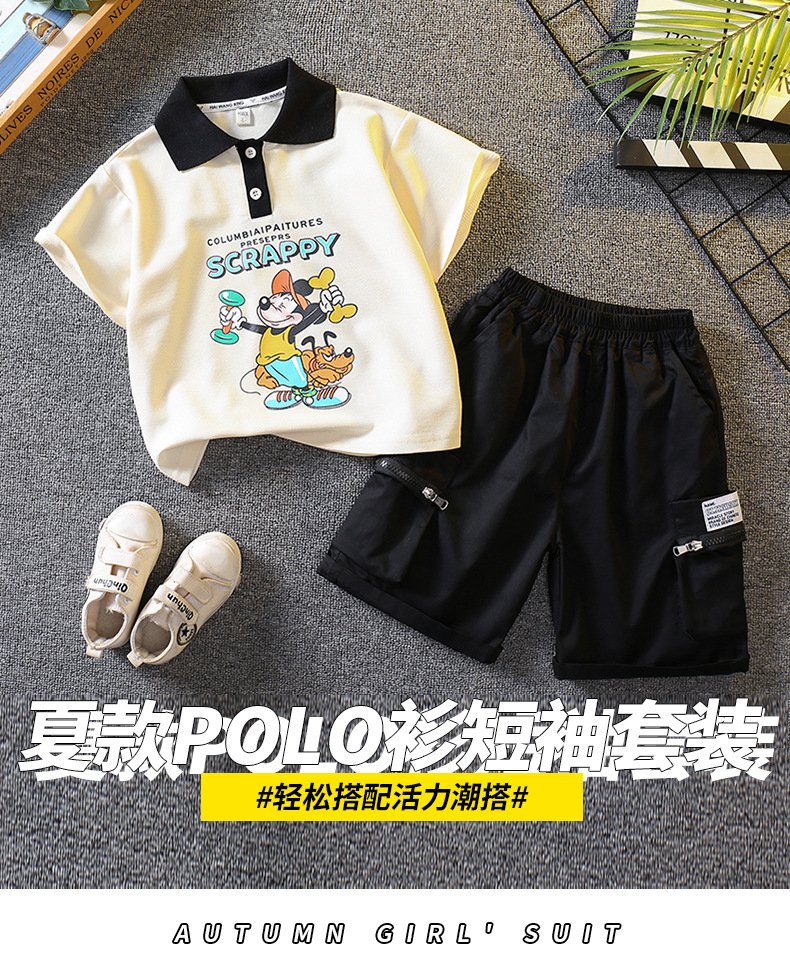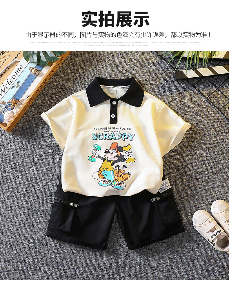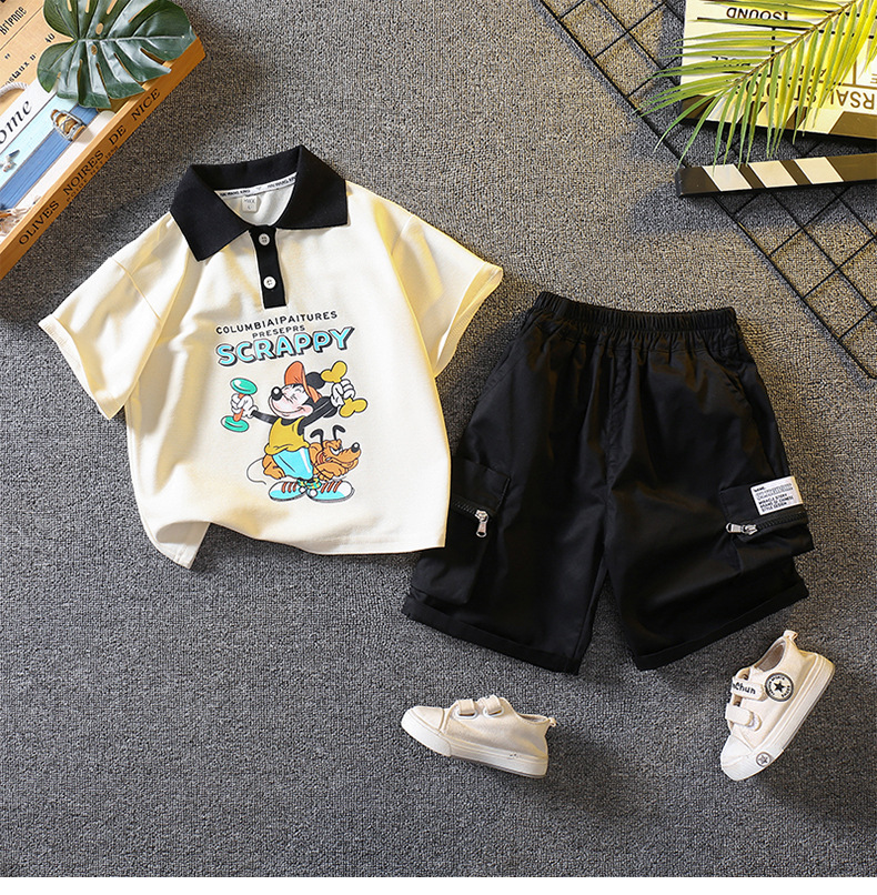 5698 traje de niño 2025 nuevo verano fresco y guapo bebé verano dibujos animados polo manga corta de dos piezas verano para niños