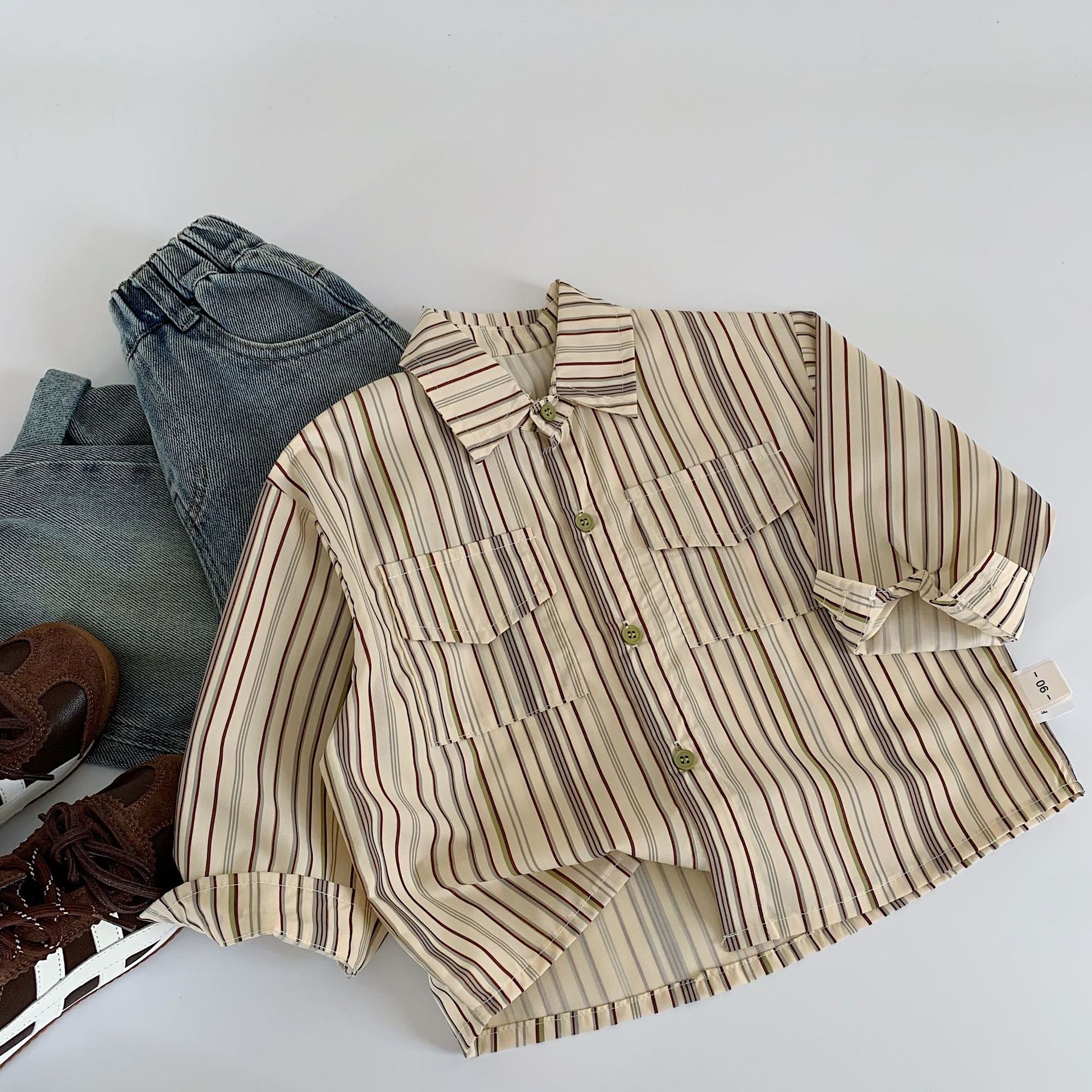 Camisa para niños Maibao 2025 primavera nueva versión coreana de la camisa hermosa a rayas para niños tops de primavera y otoño para niños