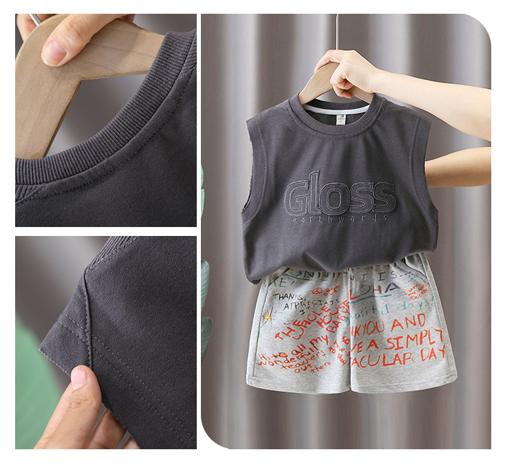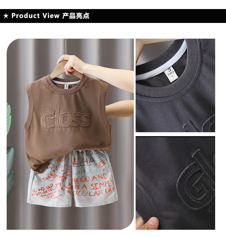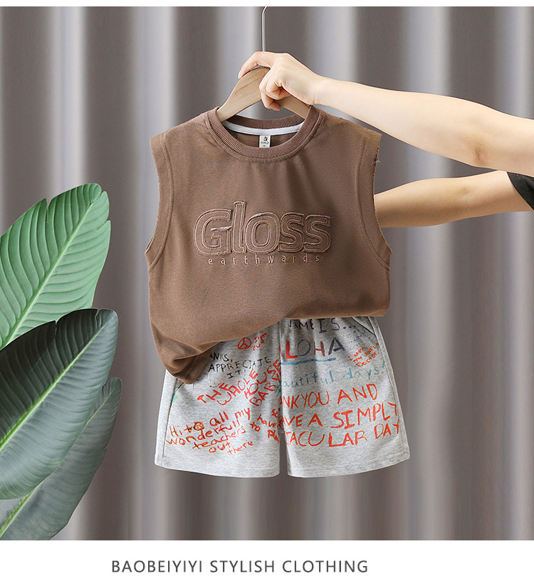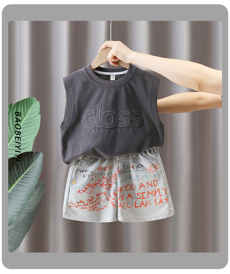 5601 traje de chaleco para niños 2025 nuevo estilo estilo occidental bebé verano sin mangas ropa niño verano traje de dos piezas marea