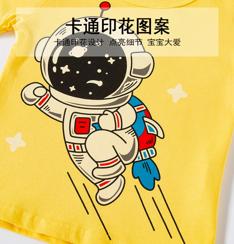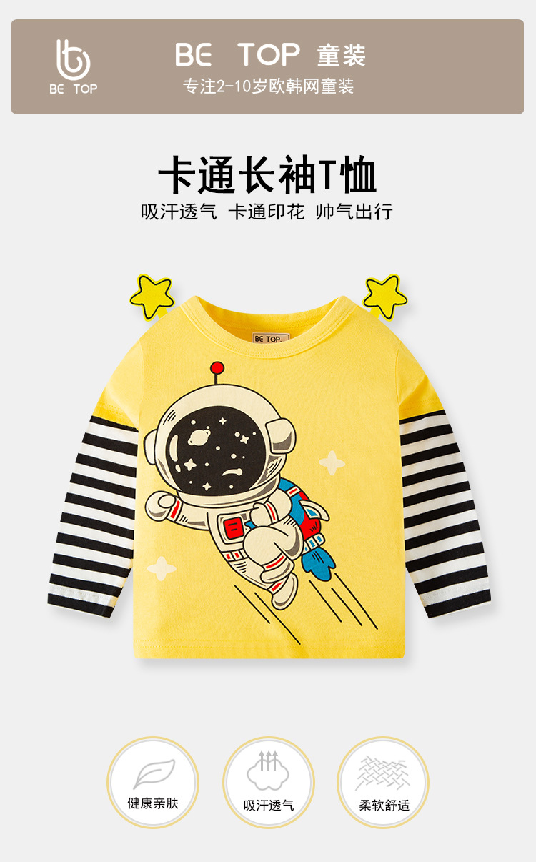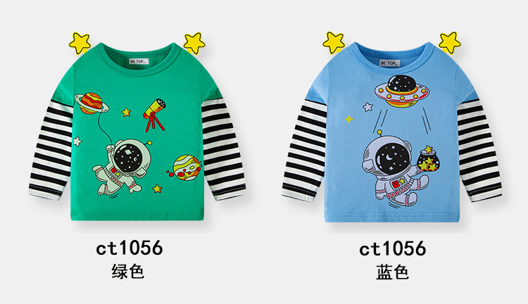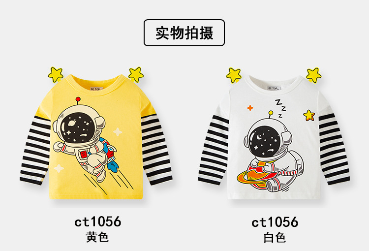Camisa de fondo para niños Primavera y otoño Nueva caricatura de astronauta Camiseta de manga larga para niños impresa tridimensional camisa de niño moda