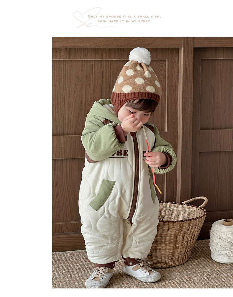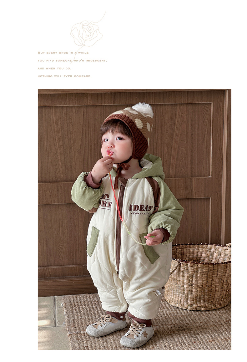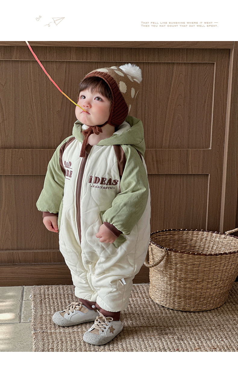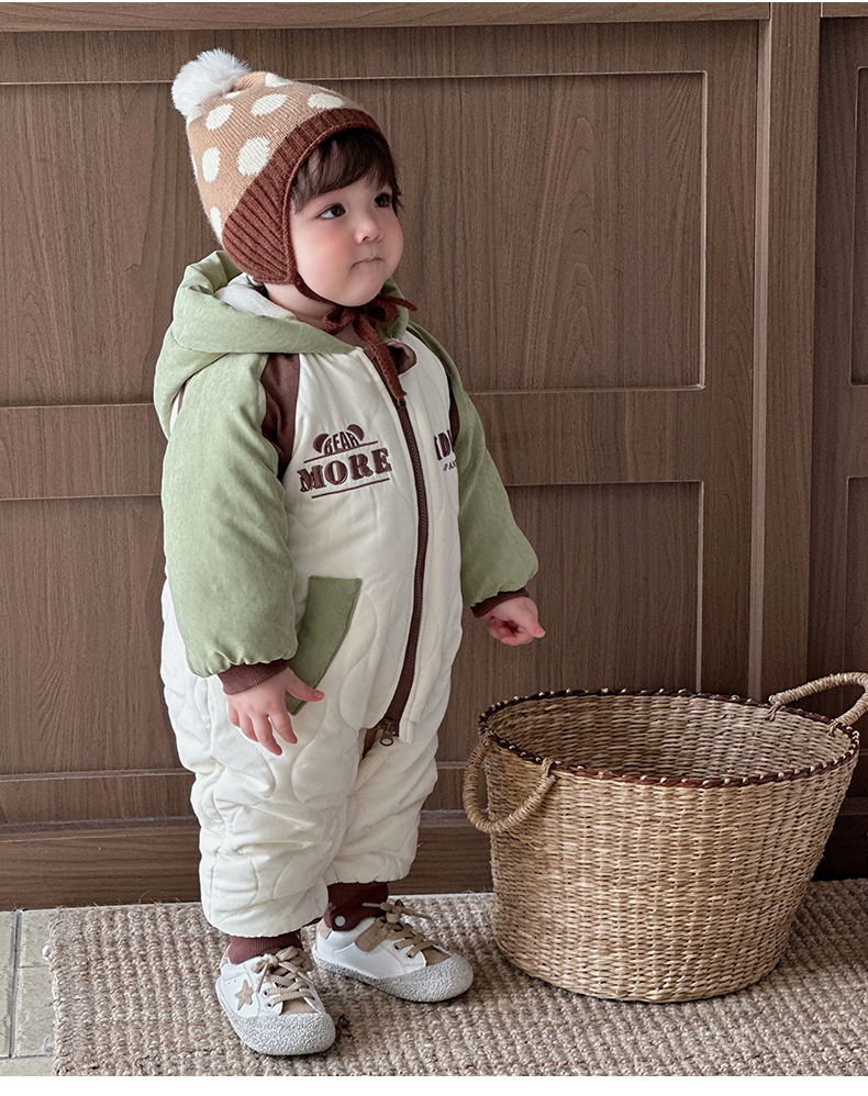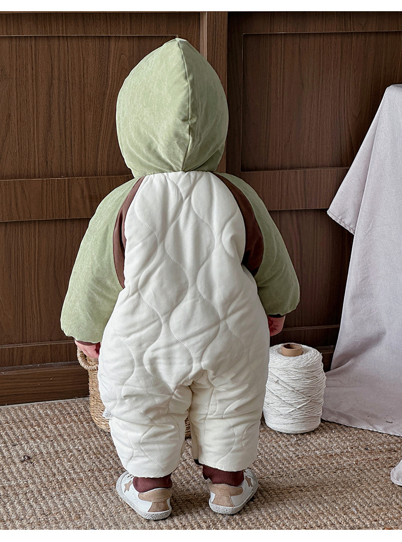 Ropa de bebé coreana, ropa de invierno, ropa de algodón, una pieza acolchada con algodón, lindo y súper lindo, un bebé de 0-2 años, un mamelero con capucha