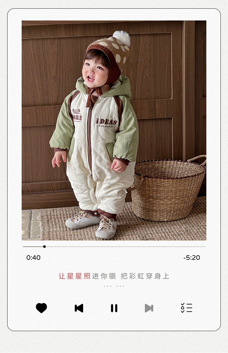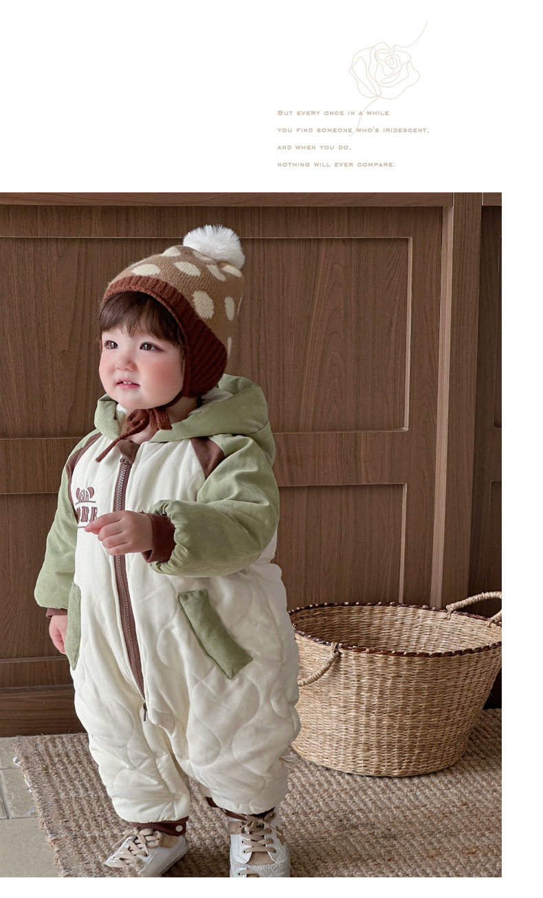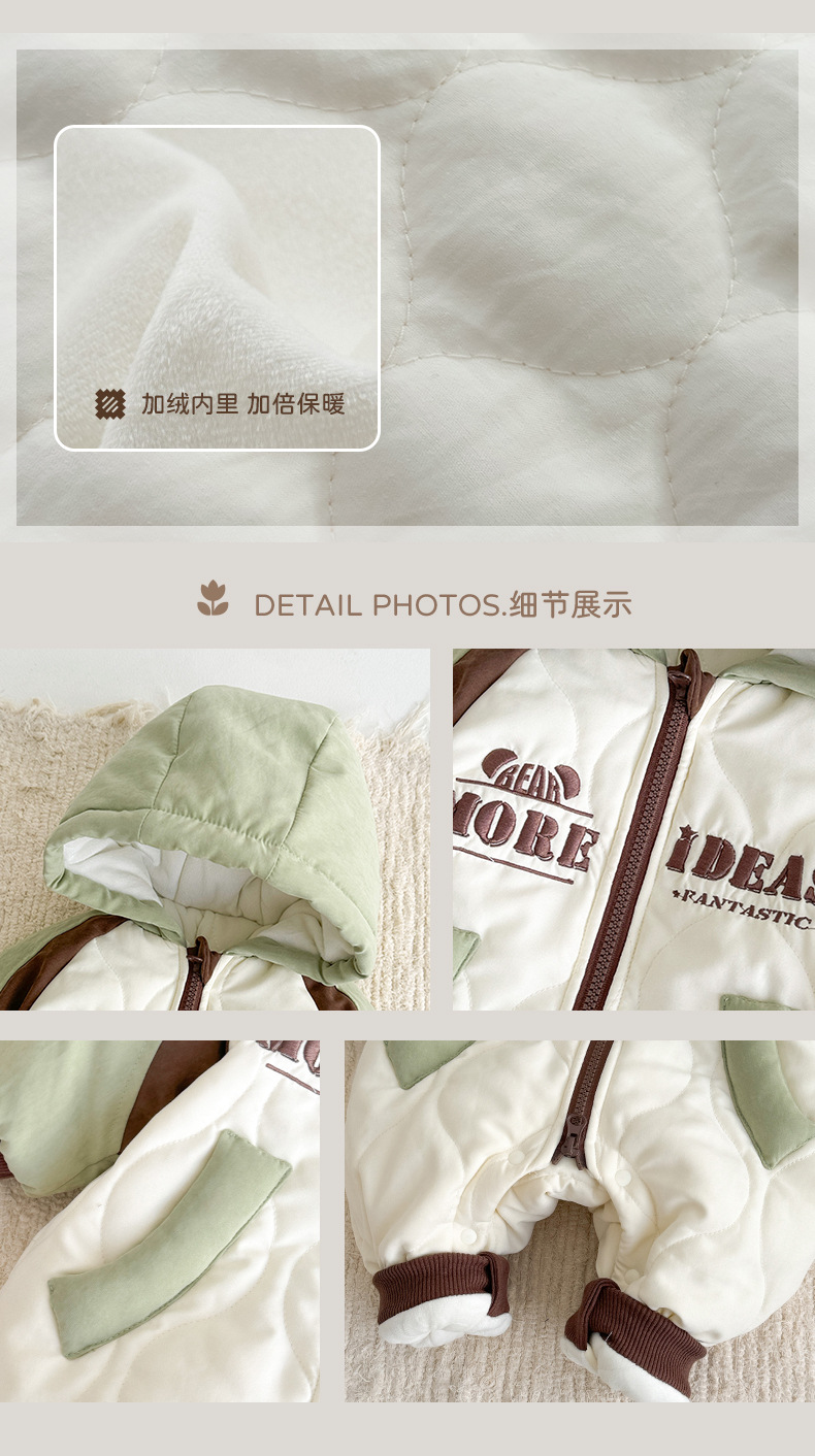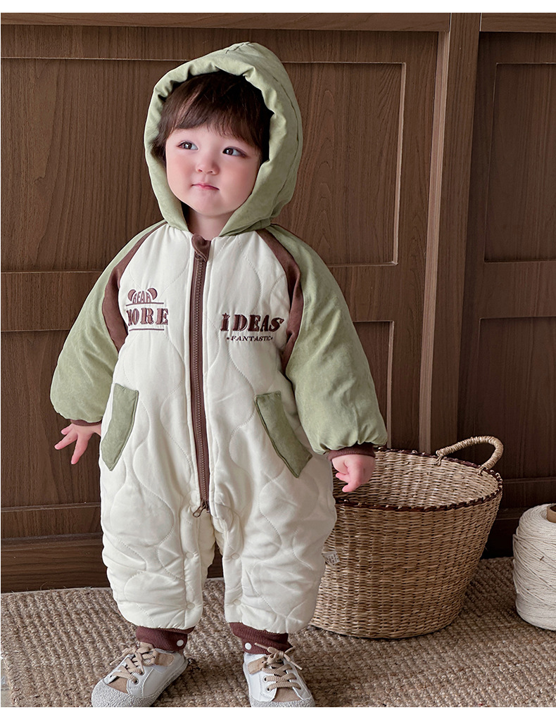 Ropa de bebé coreana, ropa de invierno, ropa de algodón, una pieza acolchada con algodón, lindo y súper lindo, un bebé de 0-2 años, un mamelero con capucha