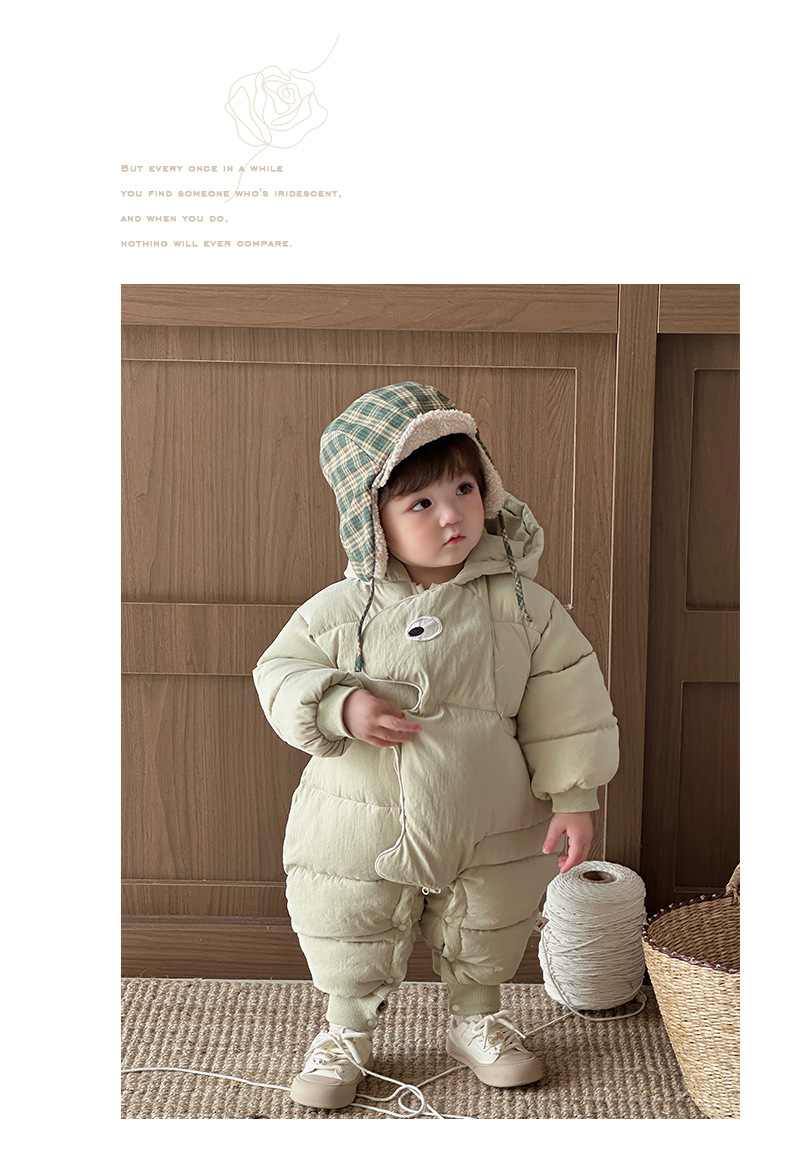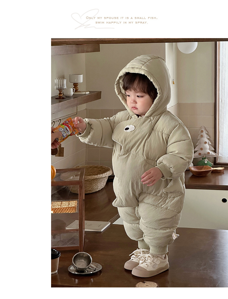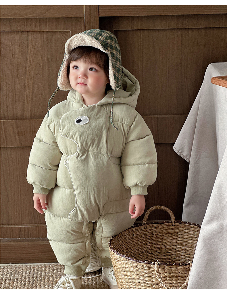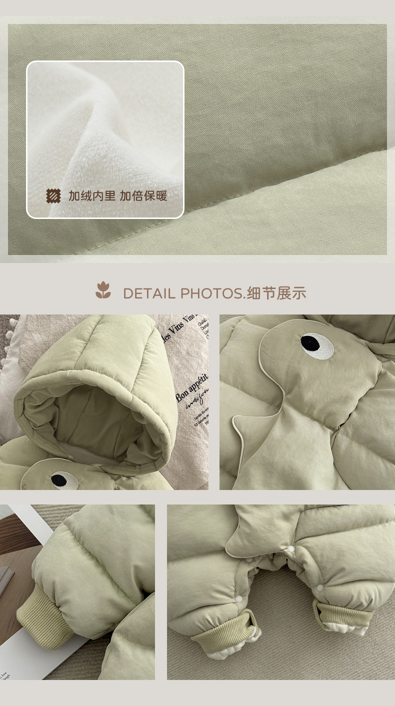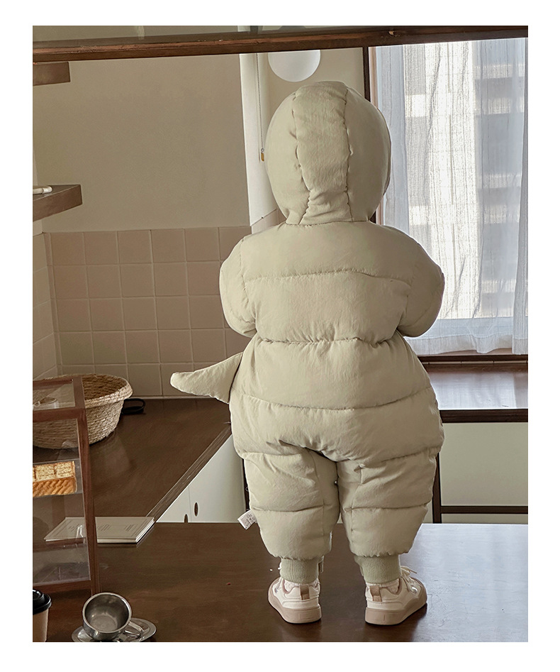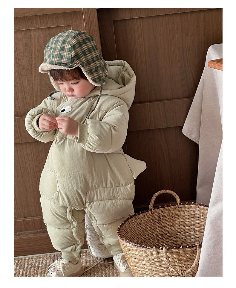 Invierno 2024 nuevo producto mono para bebé masculino ropa de salida acolchada gruesa mameluco tapeta de dibujos animados pequeño traje de arrastre de dinosaurio