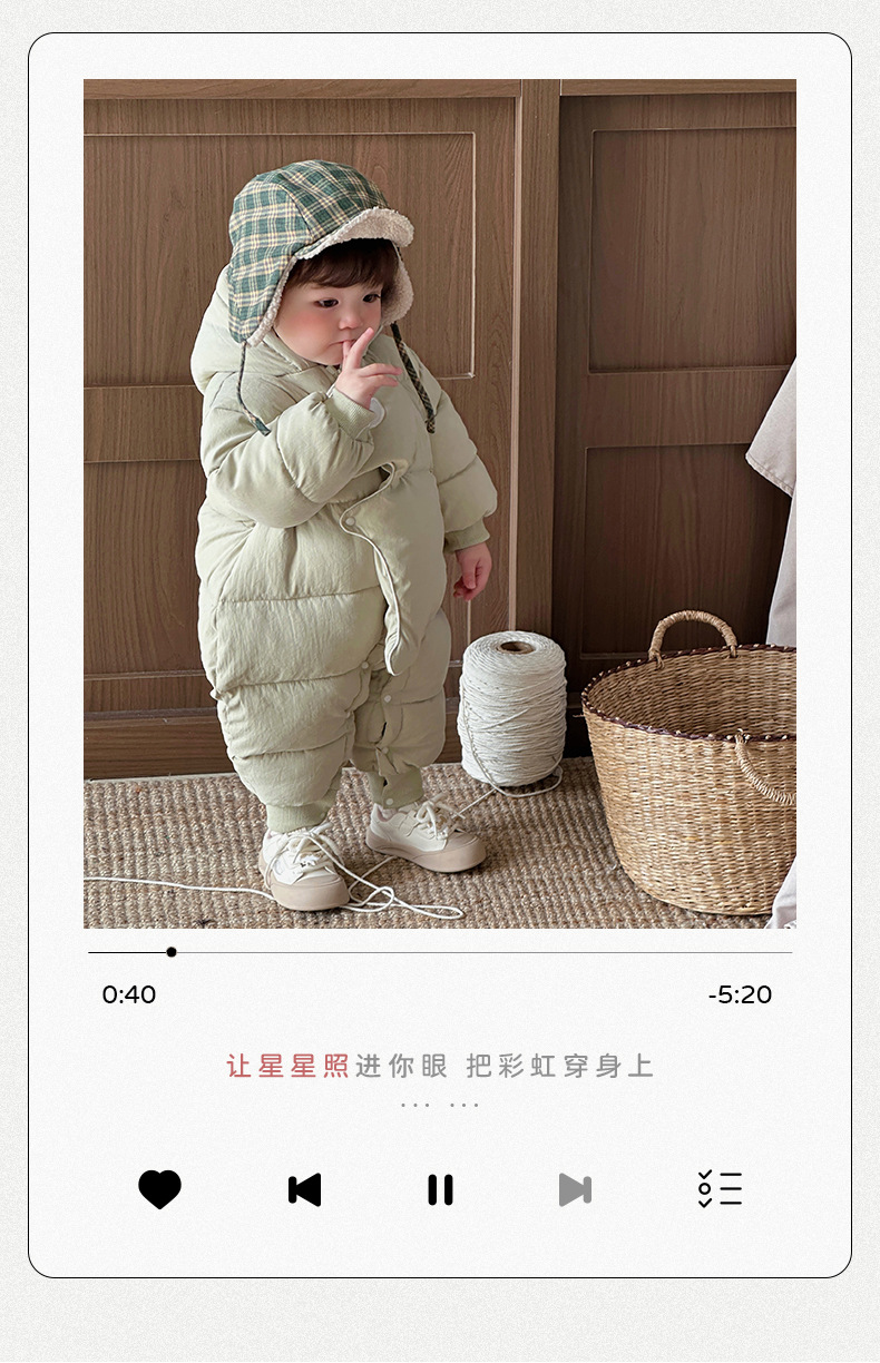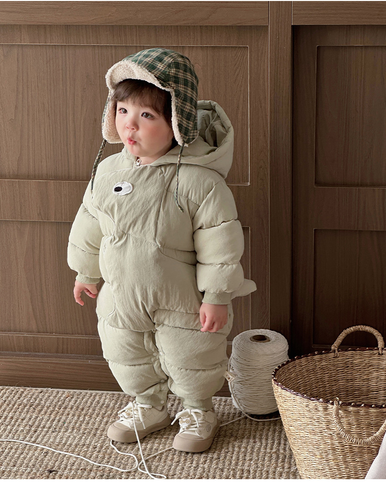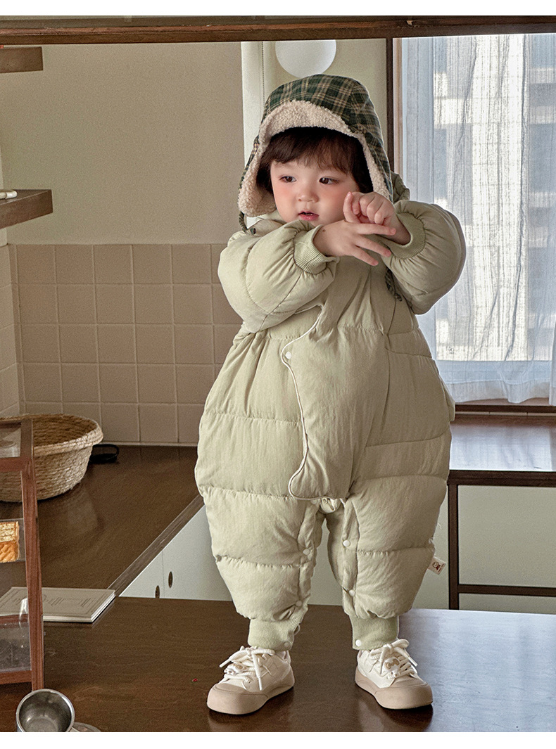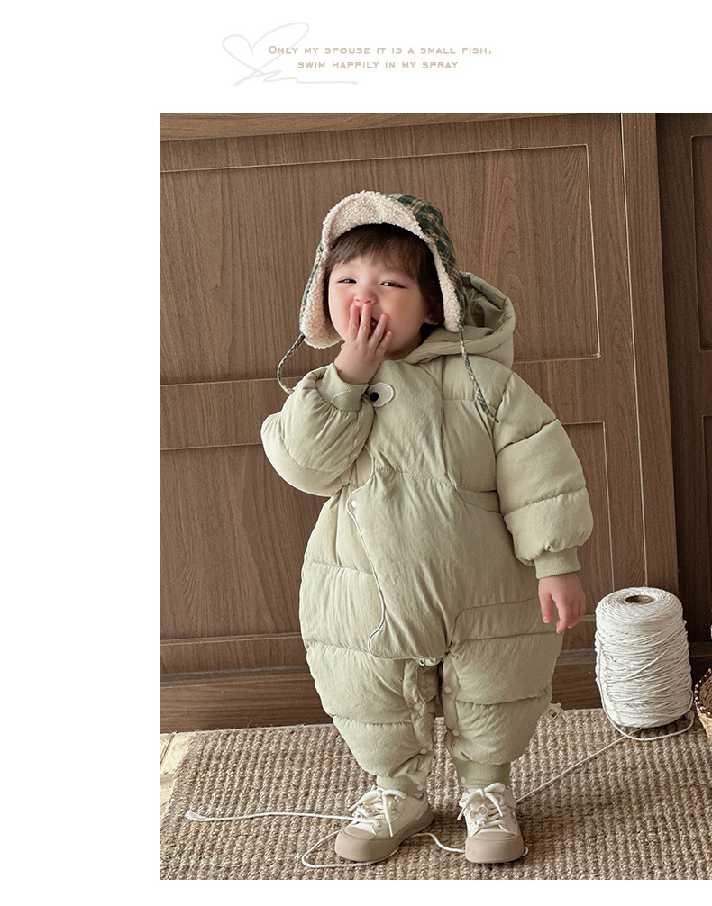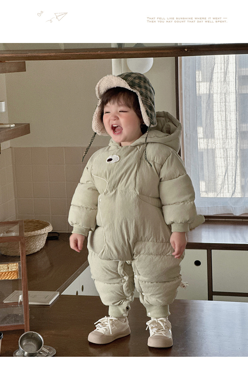 Invierno 2024 nuevo producto mono para bebé masculino ropa de salida acolchada gruesa mameluco tapeta de dibujos animados pequeño traje de arrastre de dinosaurio