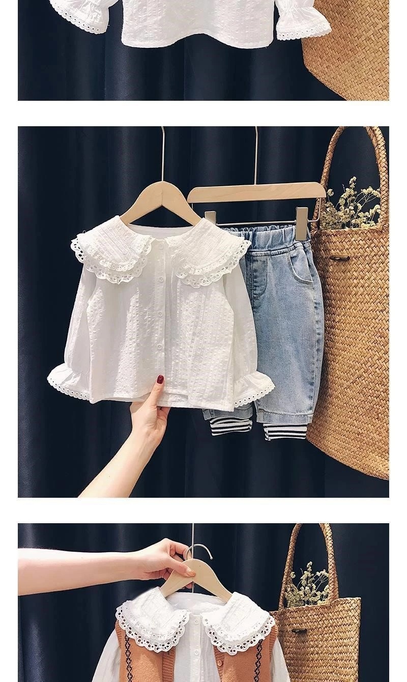 Camisa para niñas 2024 primavera y otoño camisa blanca delgada Rebeca estilo coreano casual de manga larga estilo occidental camisa superior para niñas