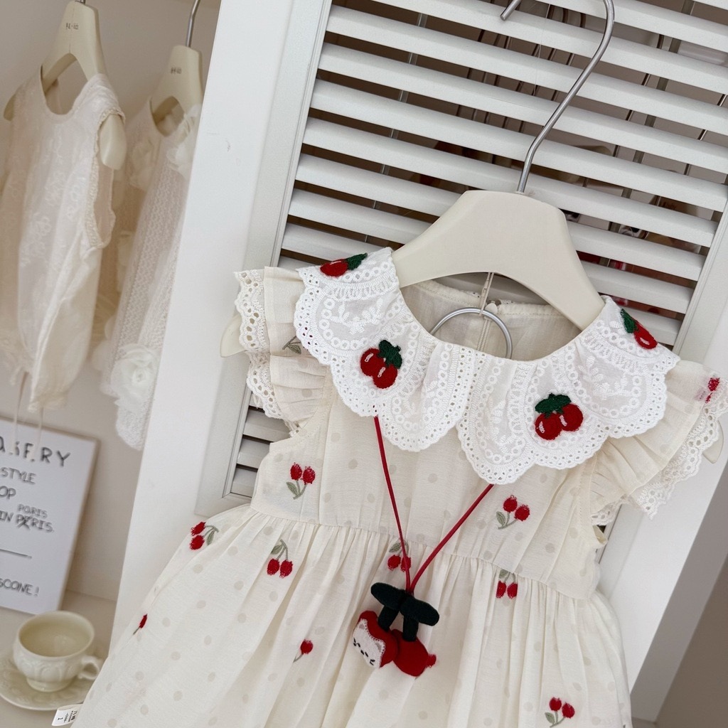 [Xianning Seven baby] Vestido de princesa dulce para niña de verano Vestido de cereza con cuello de muñeca de estilo occidental Vestido de chaleco lindo