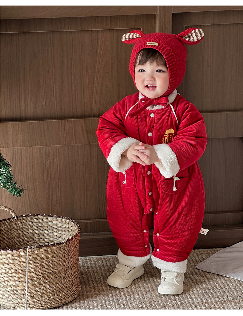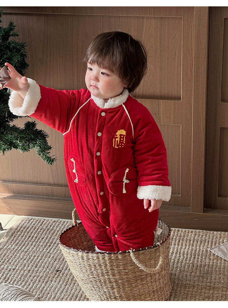 2024 invierno nuevo producto ropa de algodón grueso ropa de bebé nuevo mono acolchado de estilo chino a fin de semana ropa de año nuevo 1