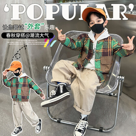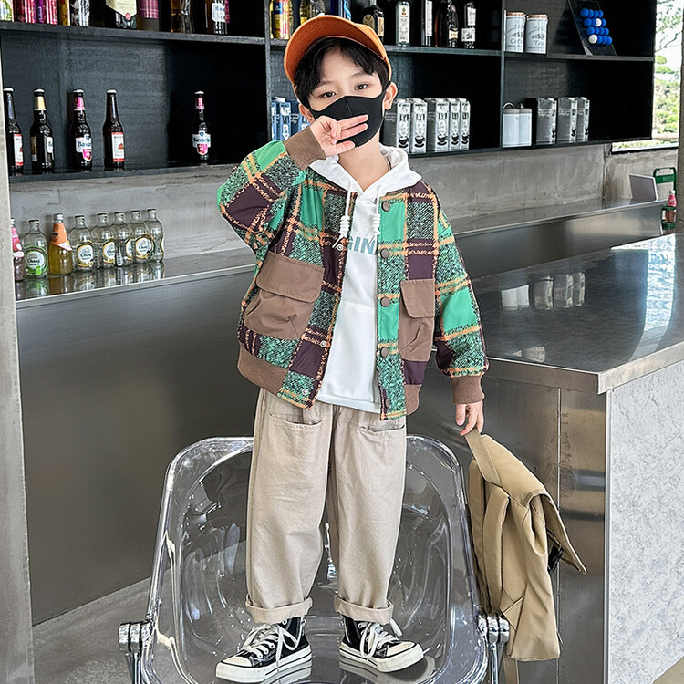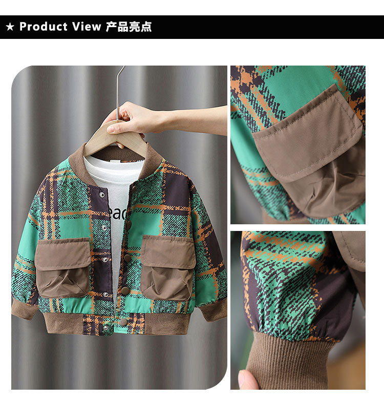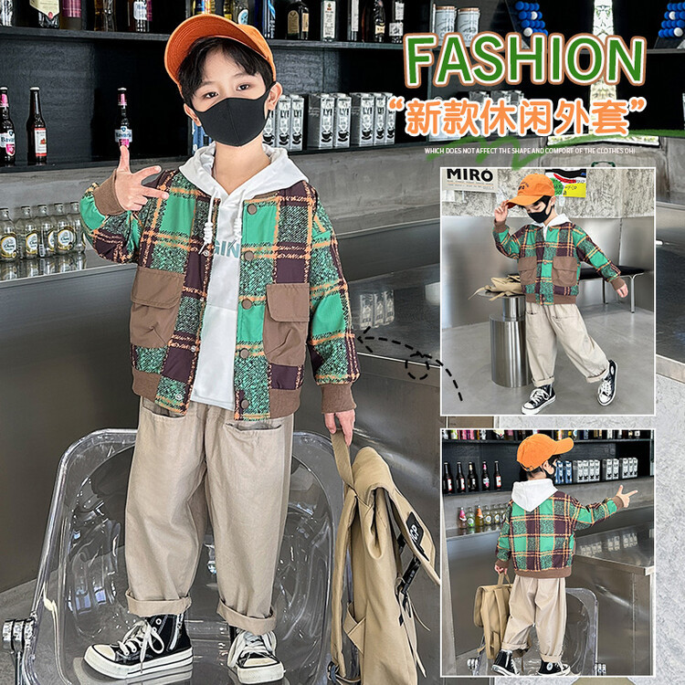 2759 chaqueta a cuadros de los muchachos 2023 primavera y otoño nuevo bebé ropa estilo coreano abrigo moda guapo