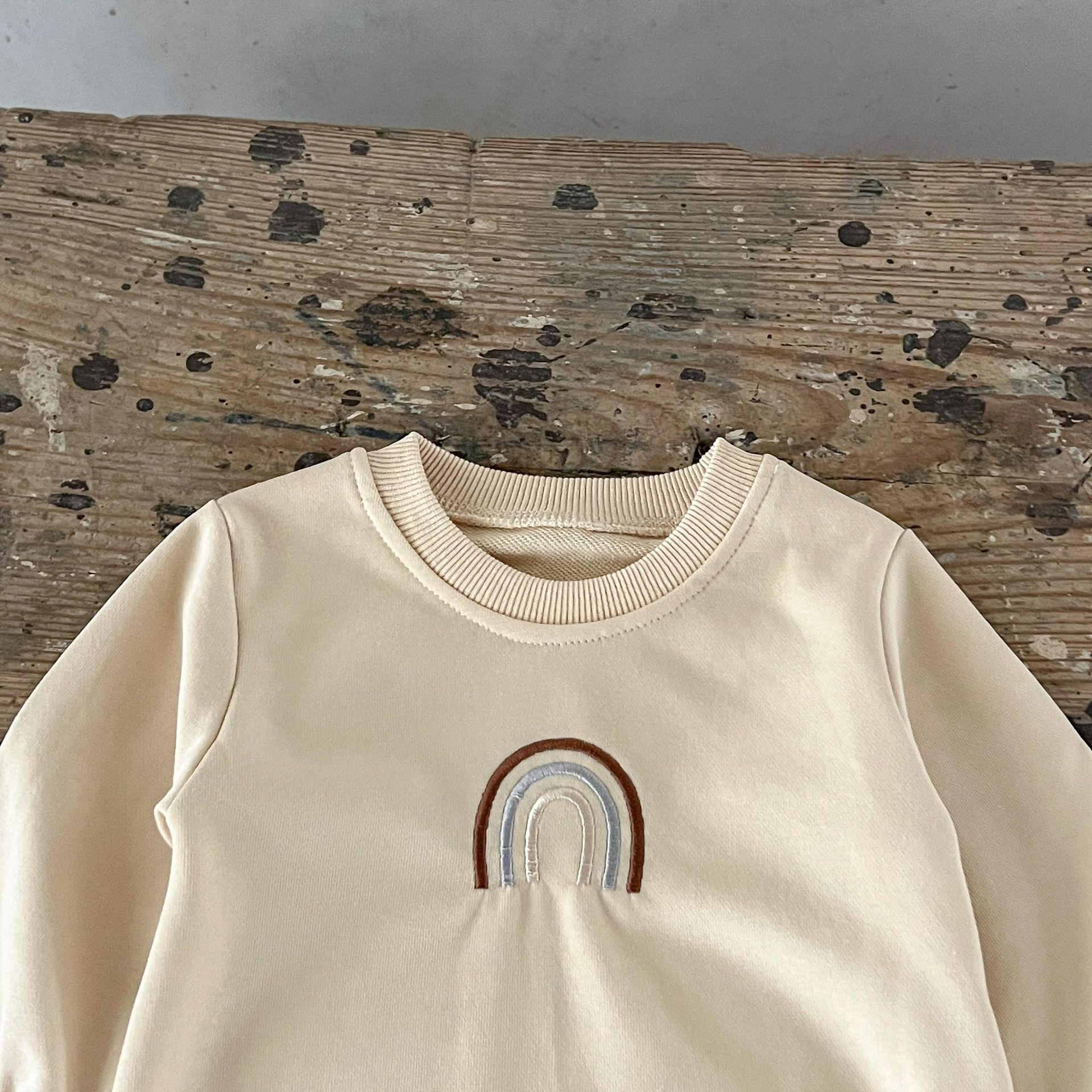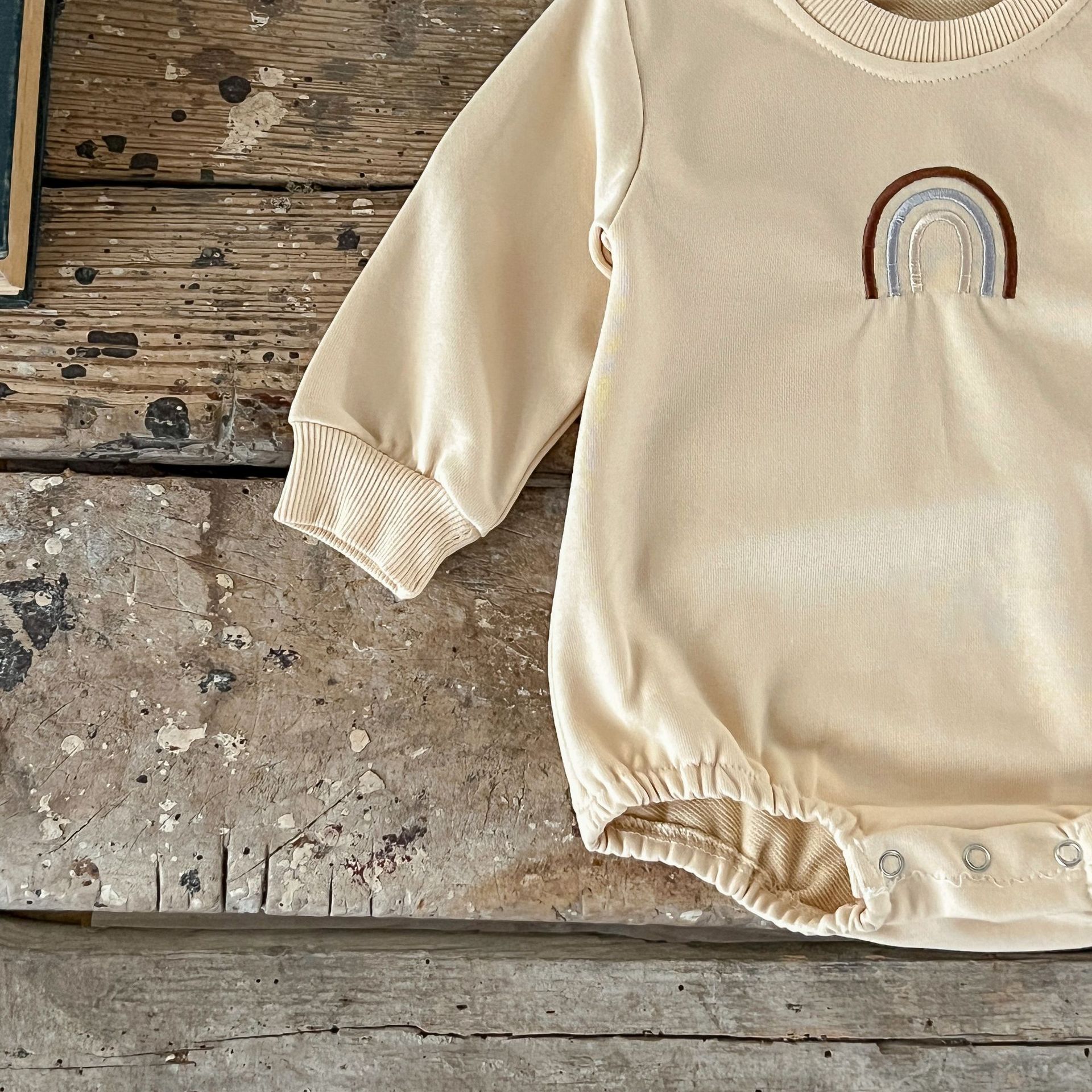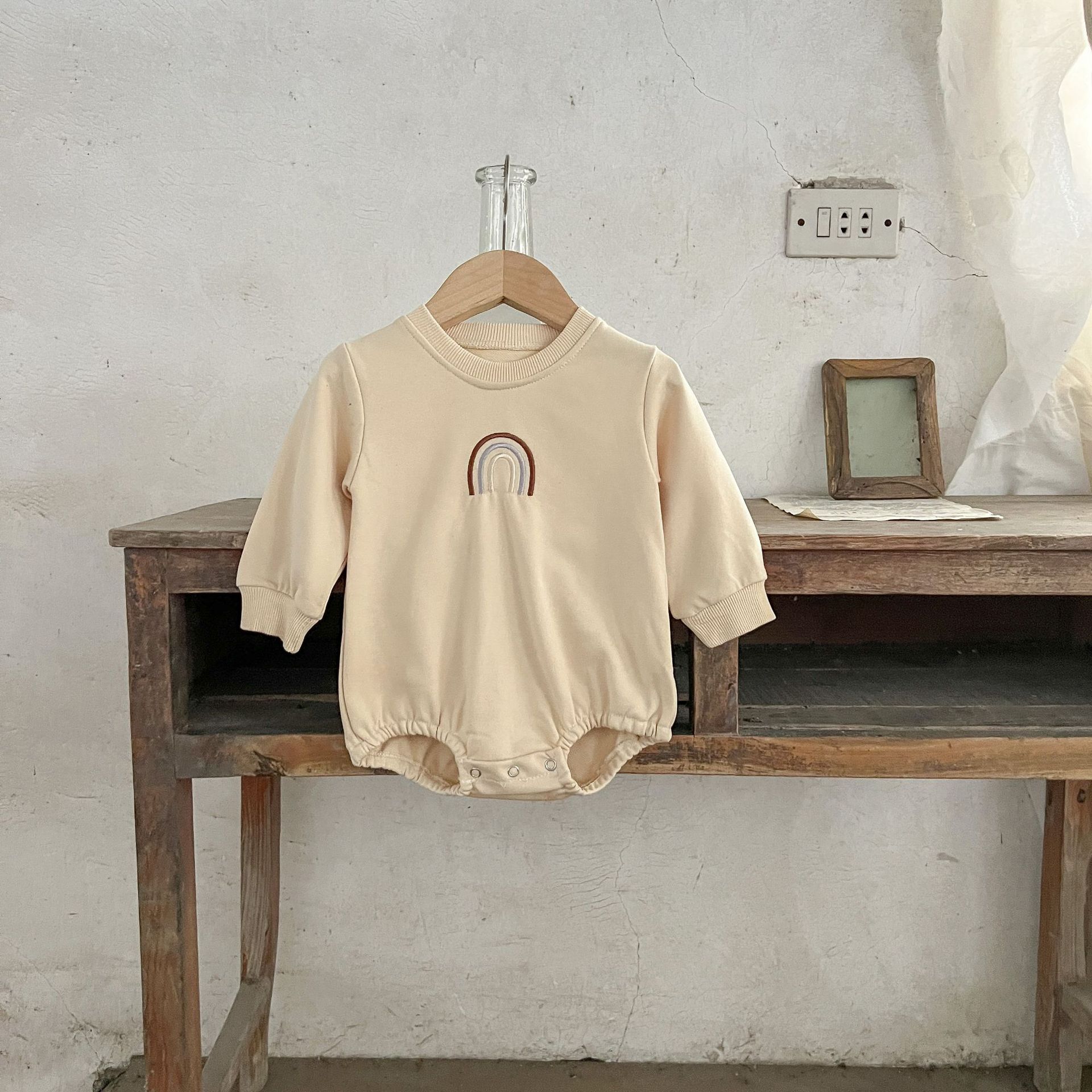 INS estilo coreano bebé niños y niñas suéter de algodón Arco Iris bordado mono mameluco recién nacido mameluco suelto moda