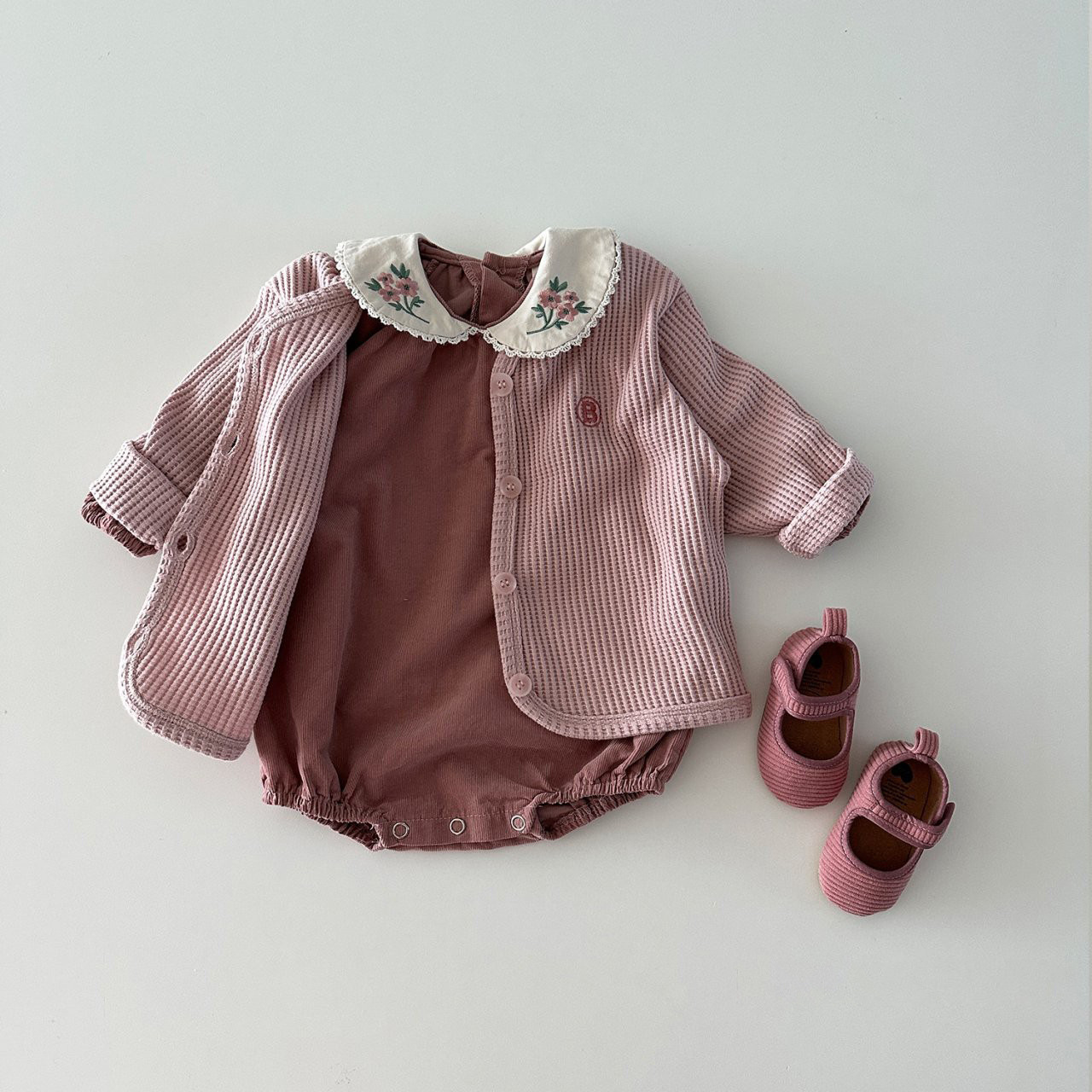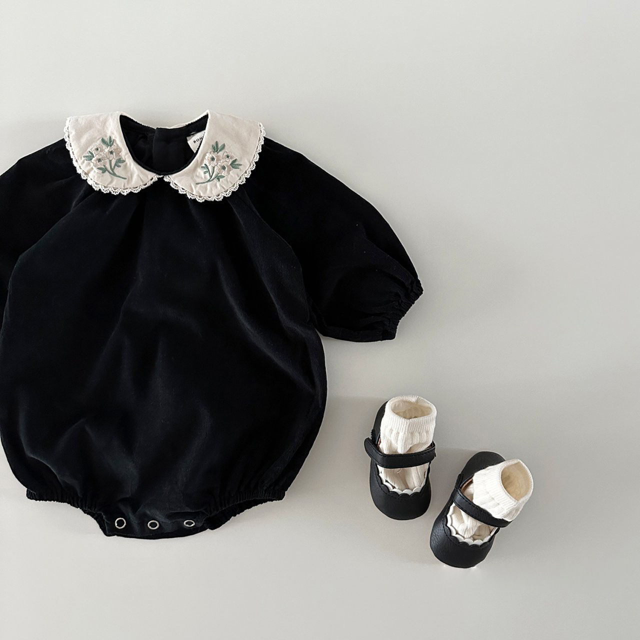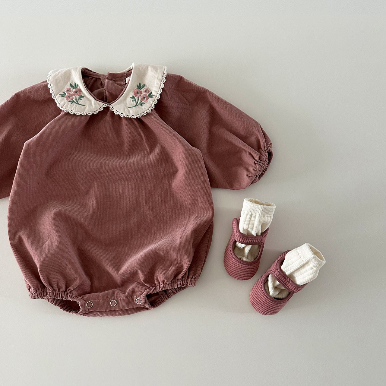INS estilo coreano niñas algodón bordado muñeca collar mono otoño versátil dulce mameluco moda