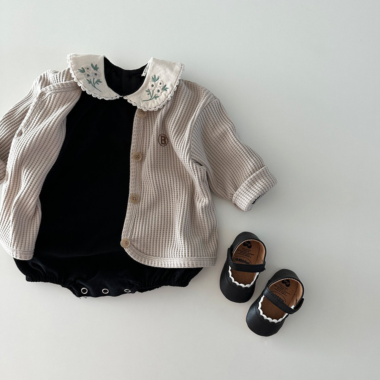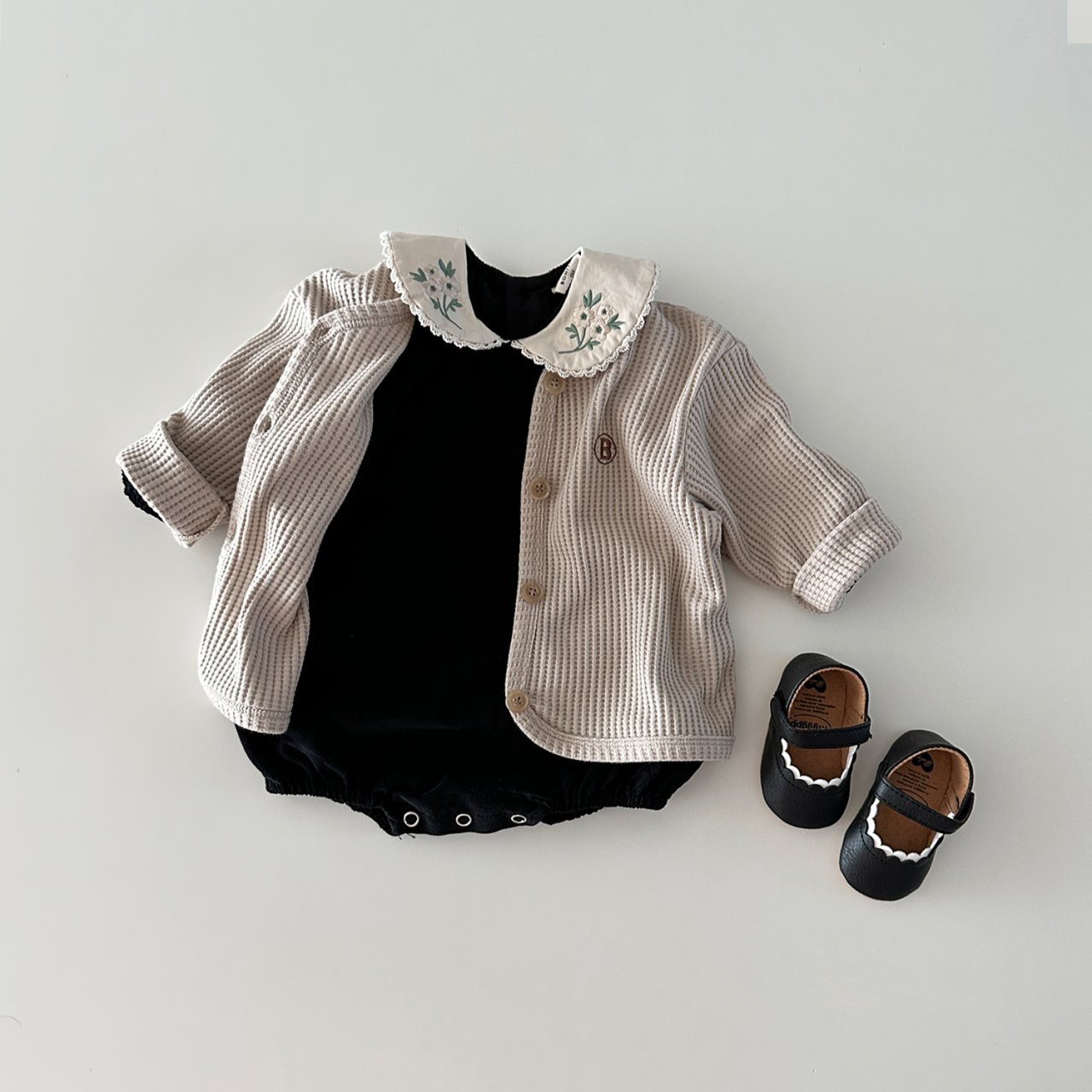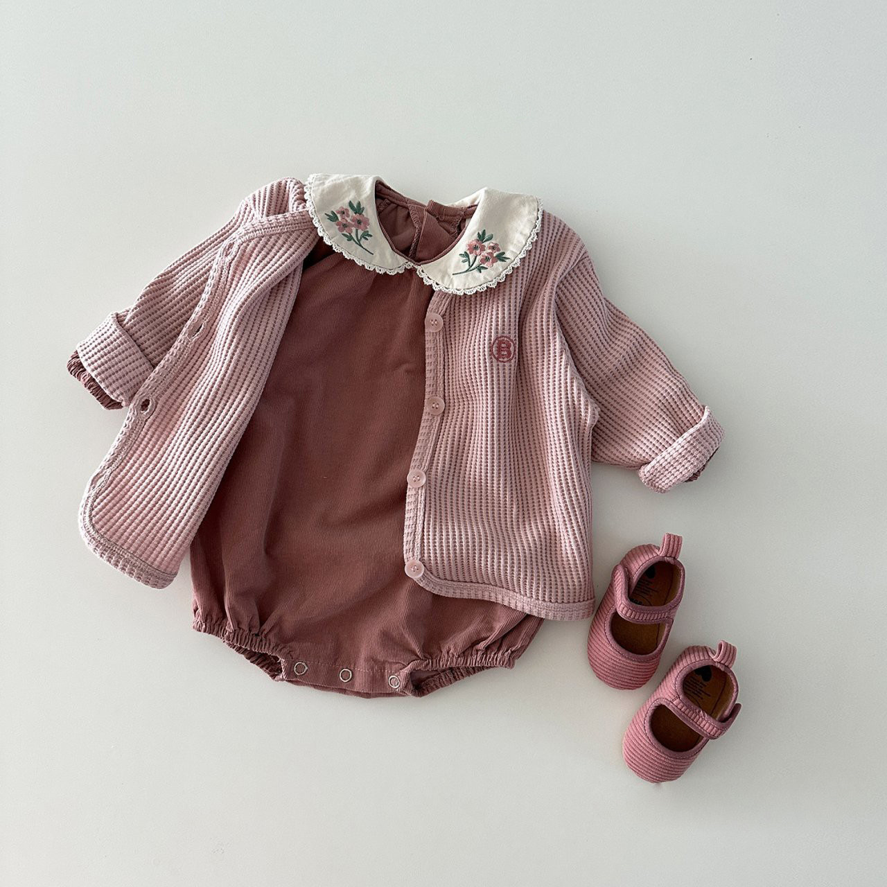 INS estilo coreano niñas algodón bordado muñeca collar mono otoño versátil dulce mameluco moda