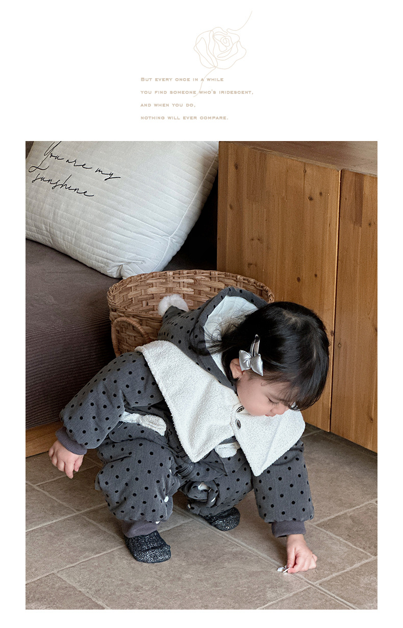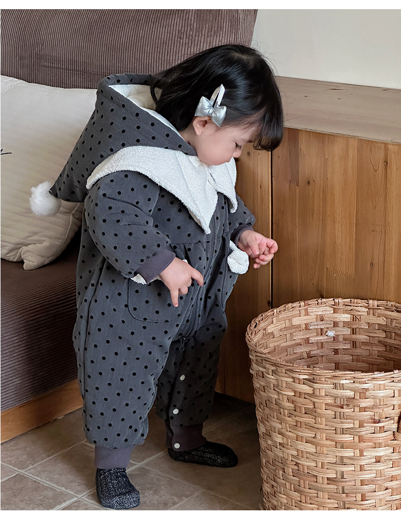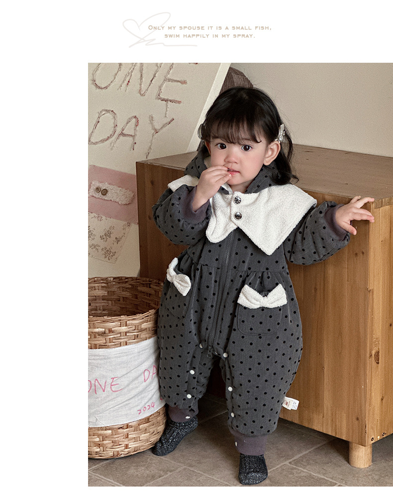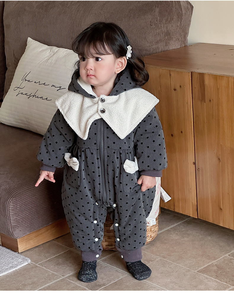 Abrigo para bebés versión coreana lindo y súper lindo chal de lunares pequeño ropa de invierno estilo occidental bebé cálido traje de escalada de invierno