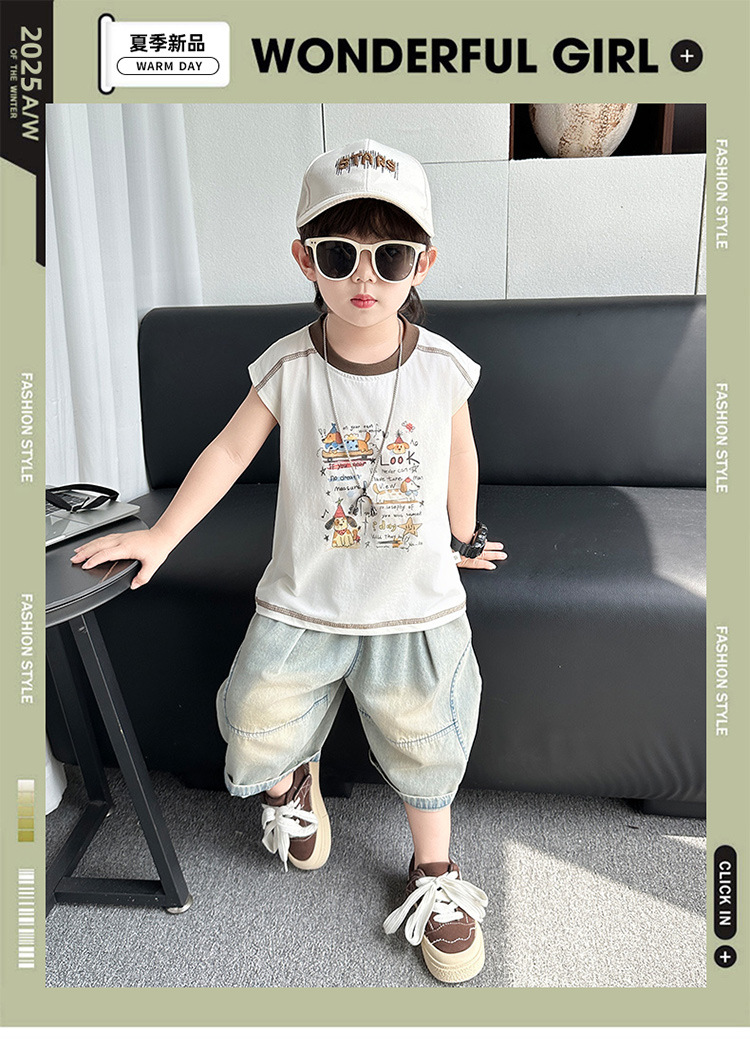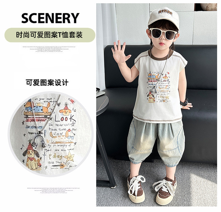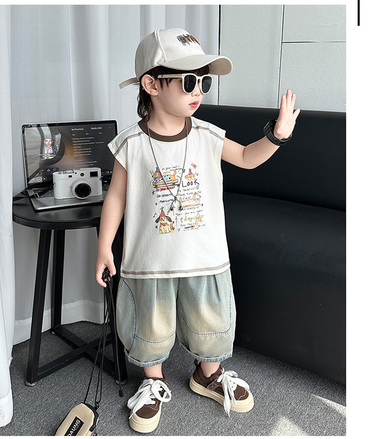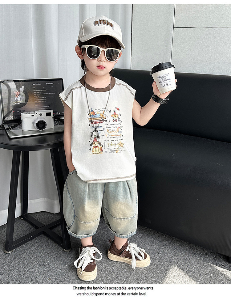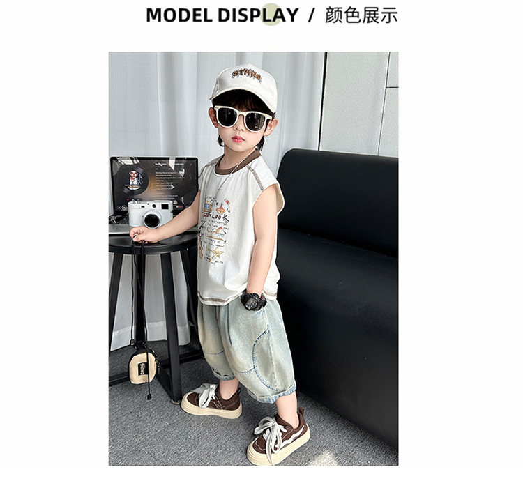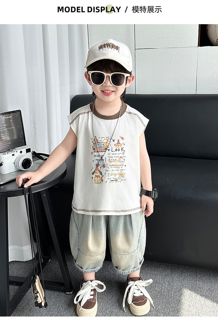 7396 traje de chaleco para niños verano 2025 nuevo vestido de verano sin mangas para niños fresco y guapo bebé delgado de dos piezas de verano