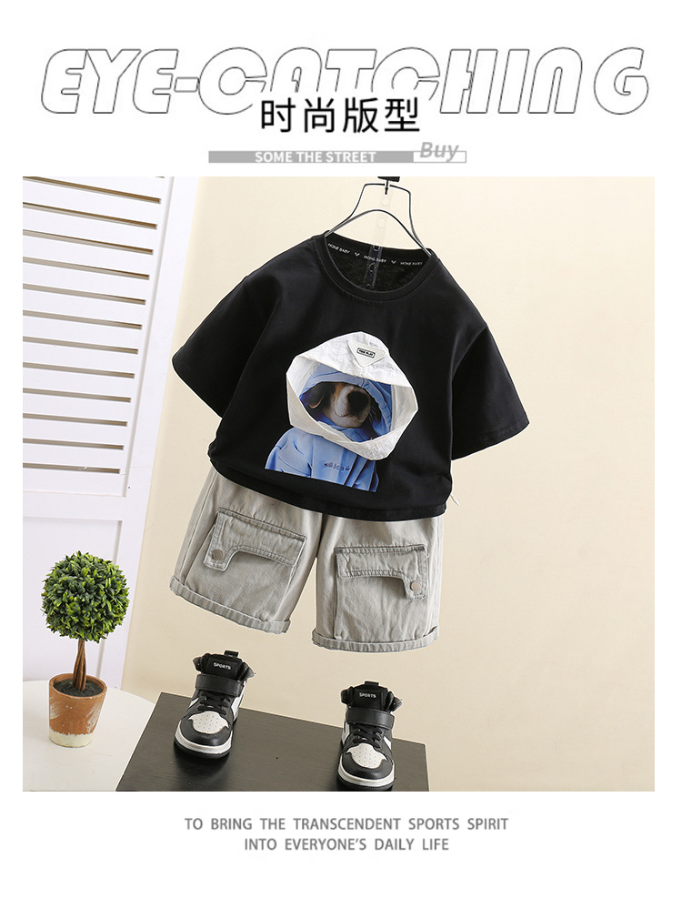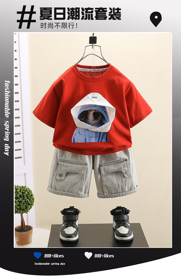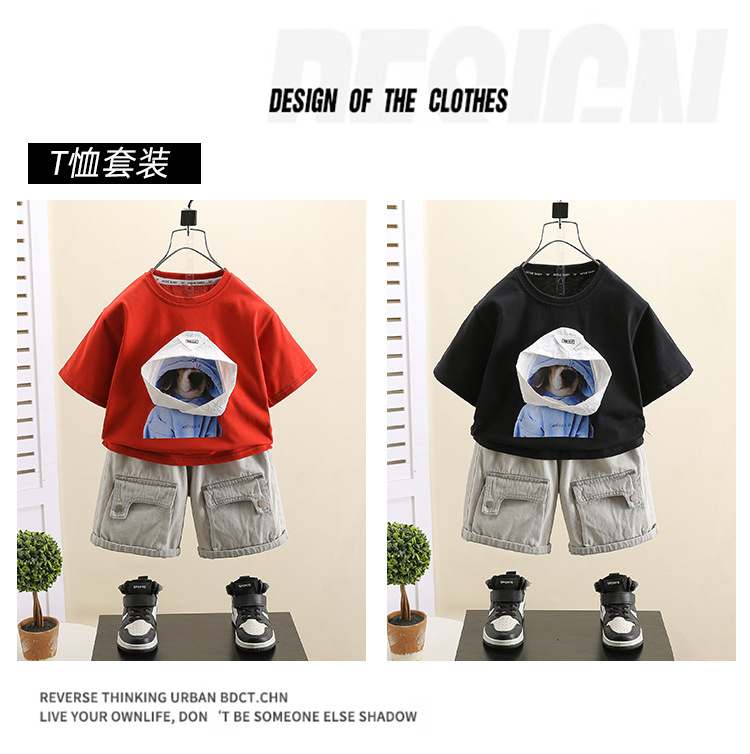 7421 Traje de verano para niños 2025 Nuevo estilo para niños Ropa delgada Verano Camiseta estampada de manga corta Conjunto de dos piezas 6