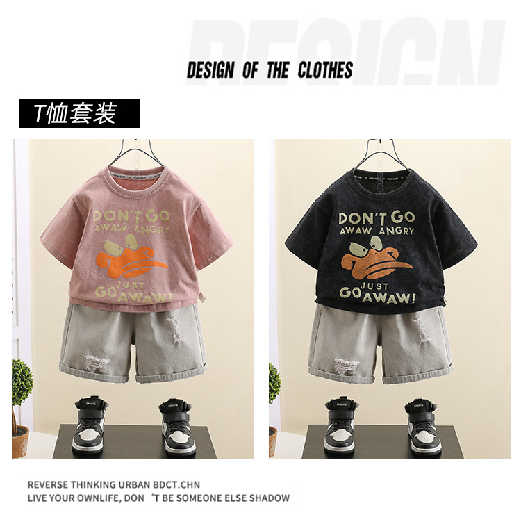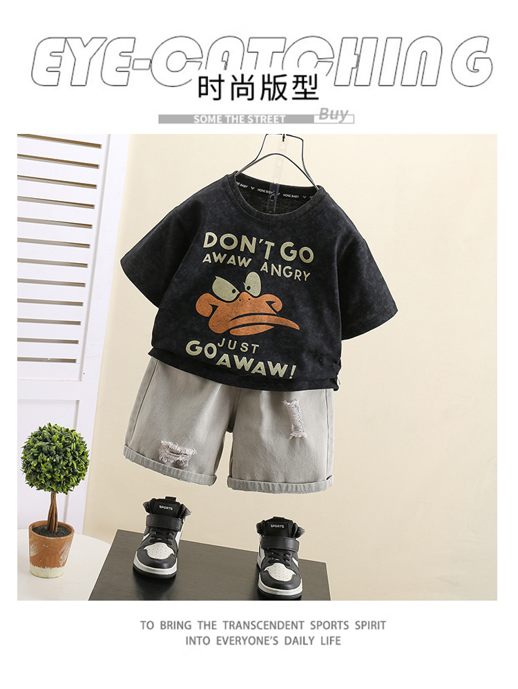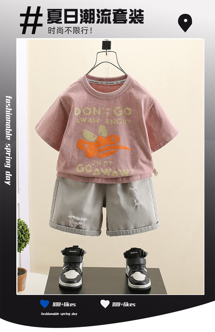 7416 pantalones cortos de mezclilla para niños traje de verano verano para niños manga corta 2025 nuevo traje de dos piezas de la calle frita para niños y bebés