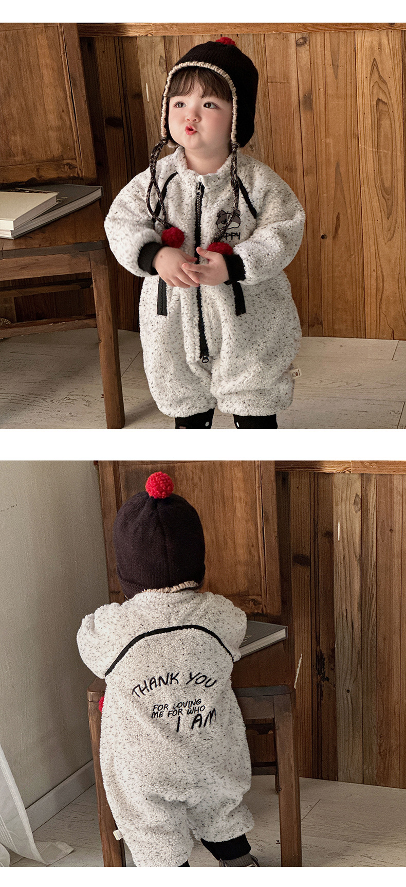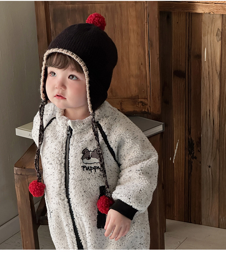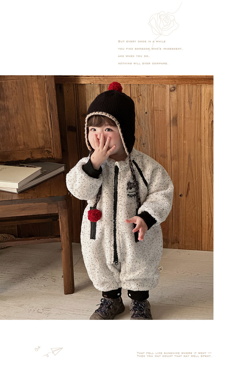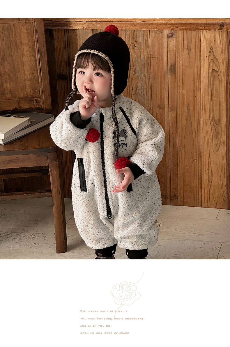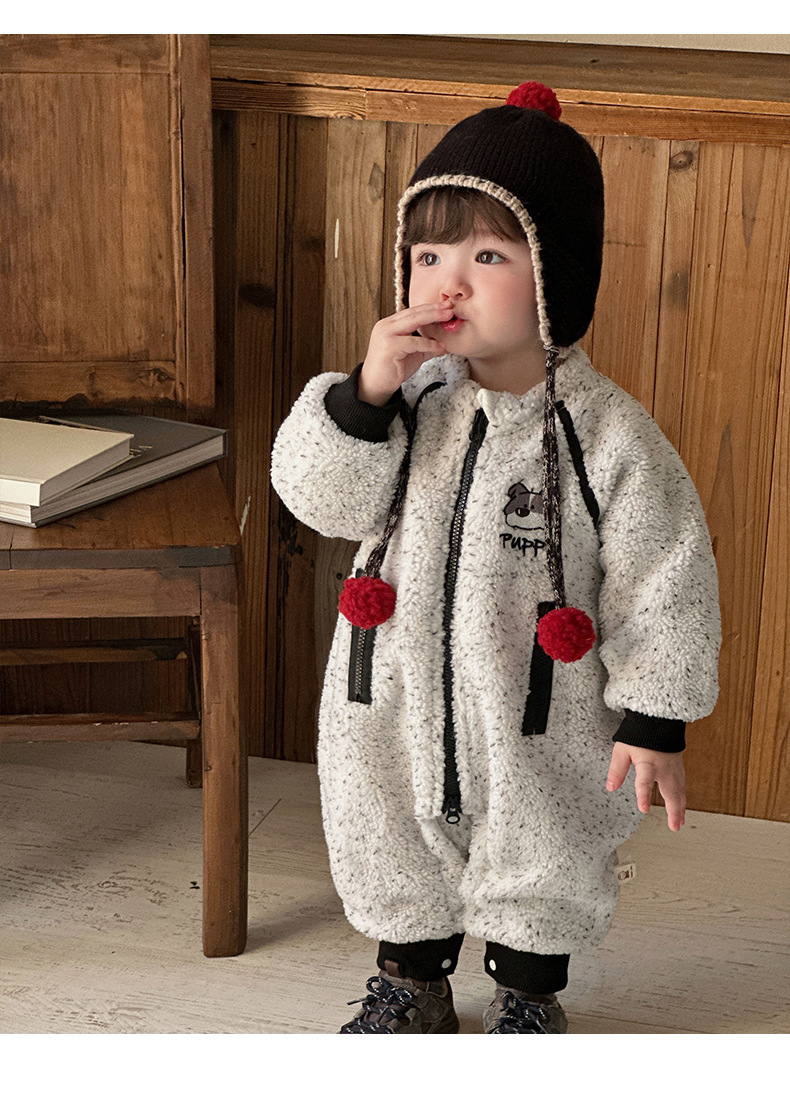 2024 nuevo mono de bebé de invierno acolchado de dibujos animados peludo cachorro engrosado y cálido bebé saliendo traje de escalada