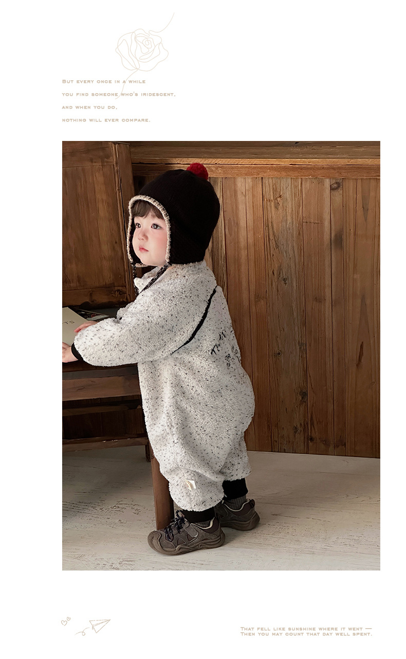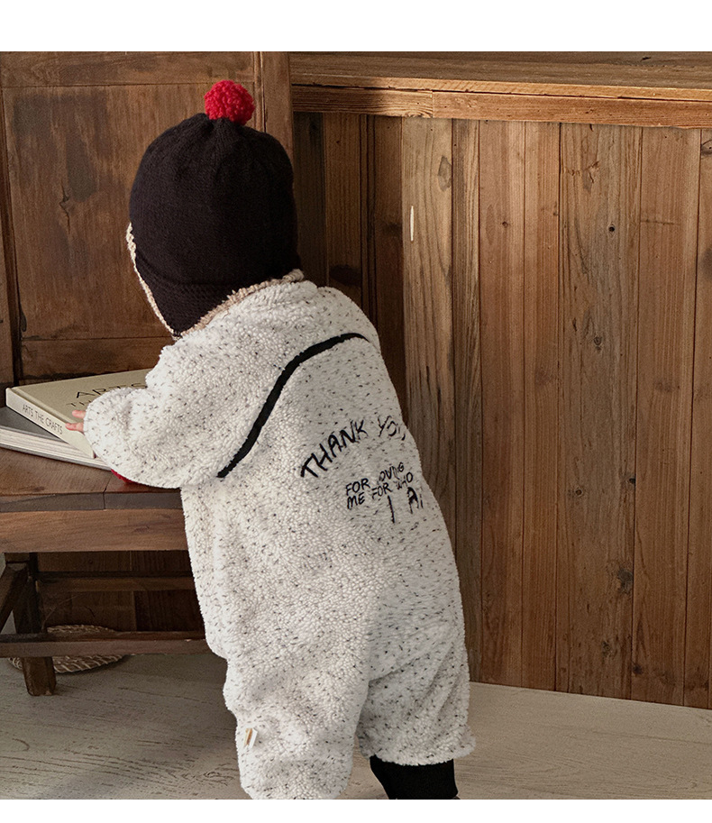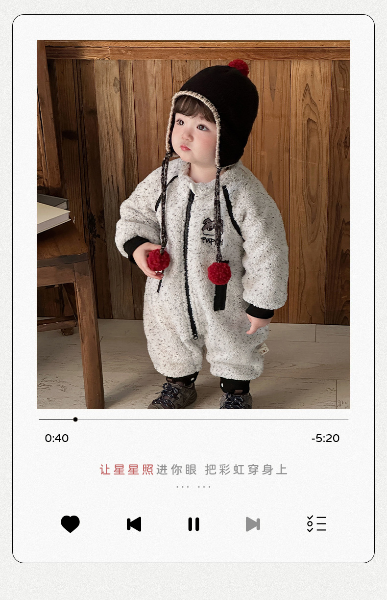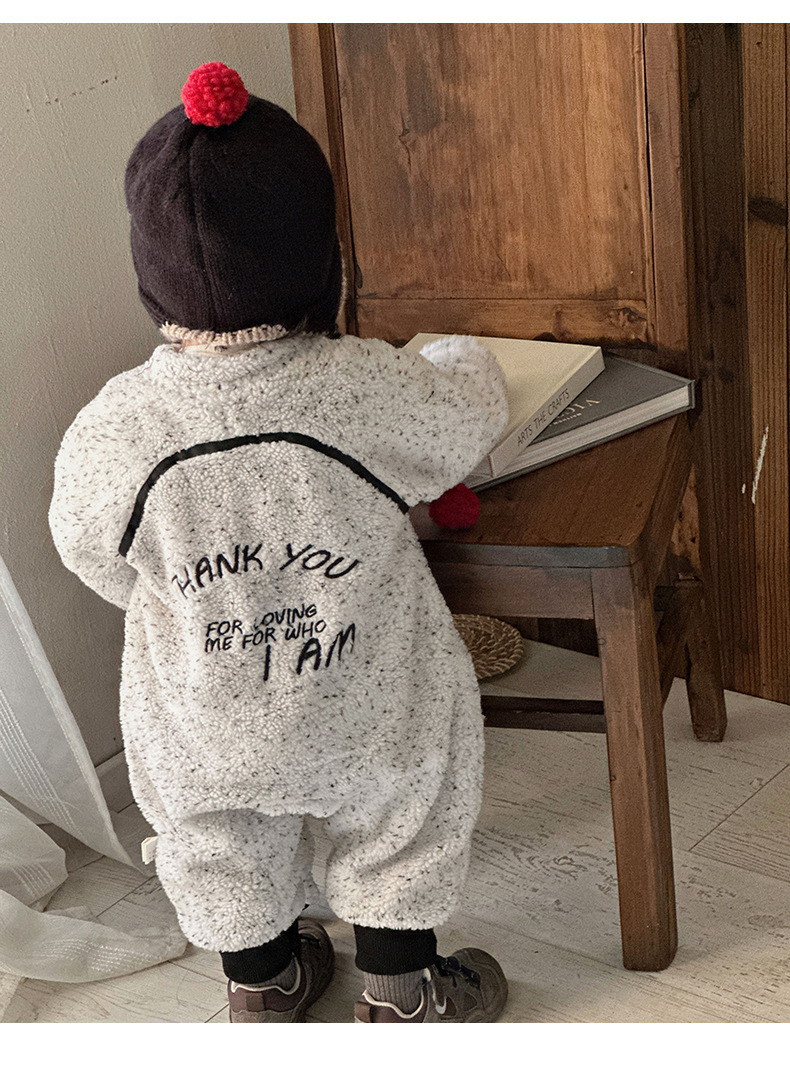 2024 nuevo mono de bebé de invierno acolchado de dibujos animados peludo cachorro engrosado y cálido bebé saliendo traje de escalada