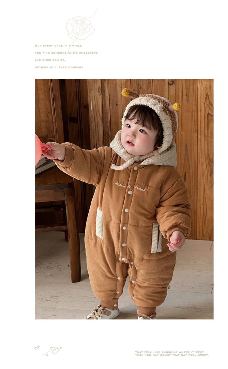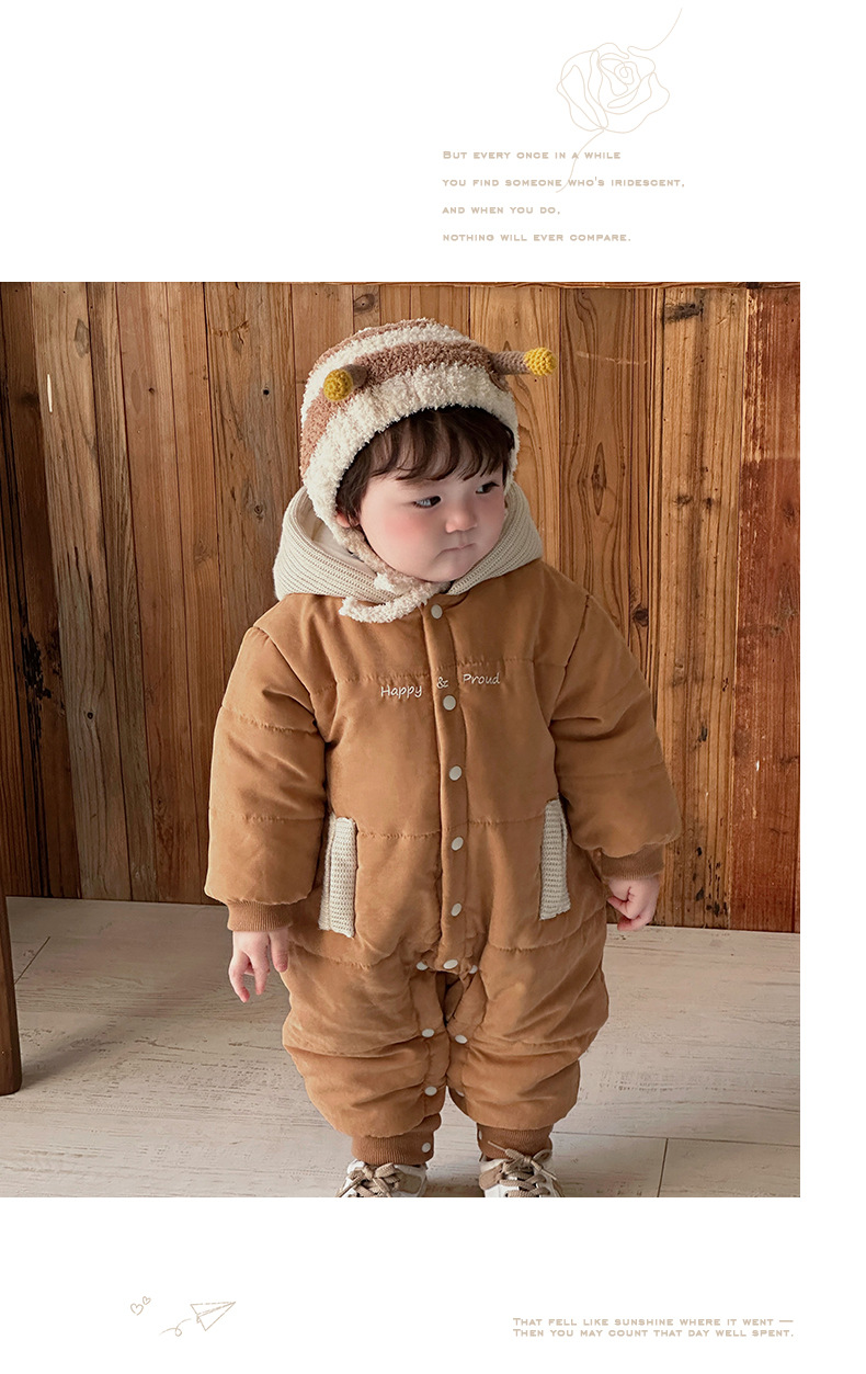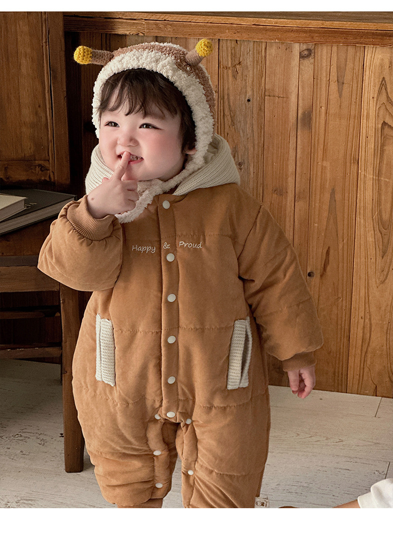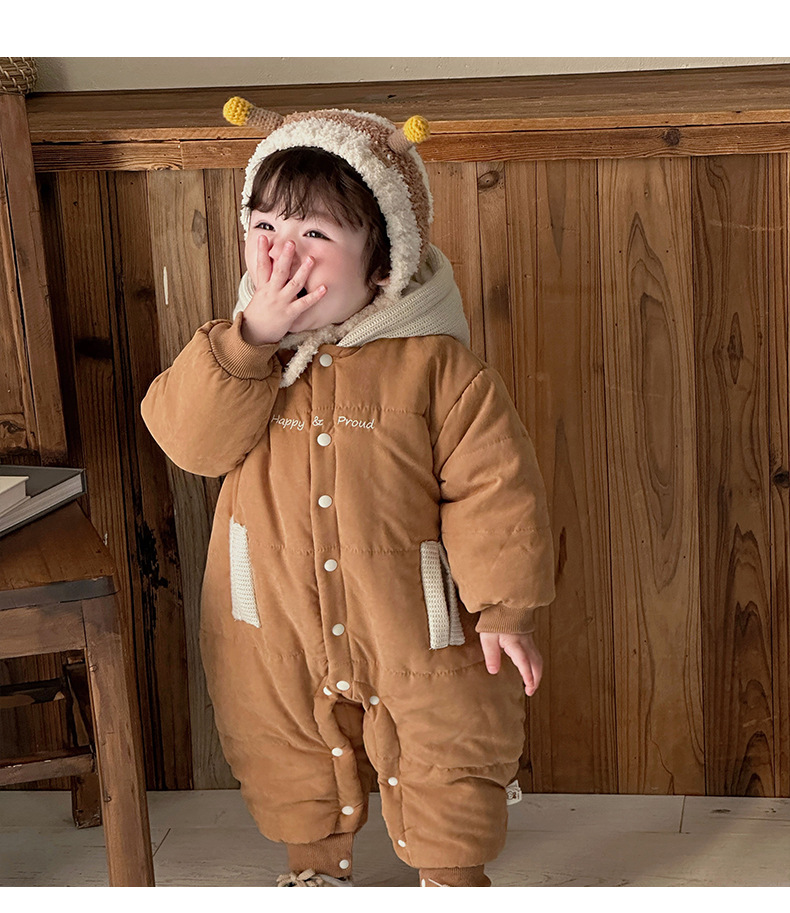 2024 bolsillo de órgano de aire occidental para bebés de invierno, grueso, cálido, cómodo y suave, abrigo de algodón de una pieza para bebé
