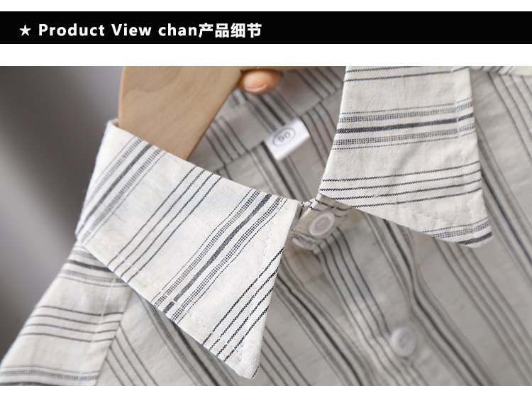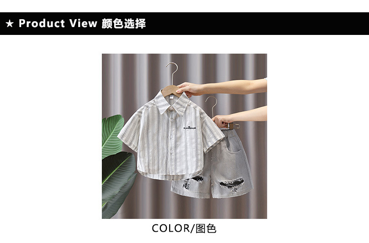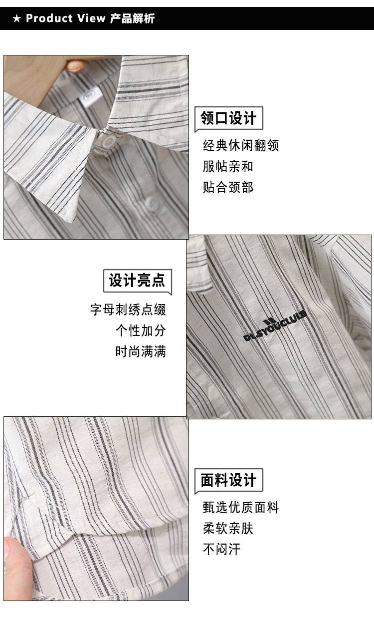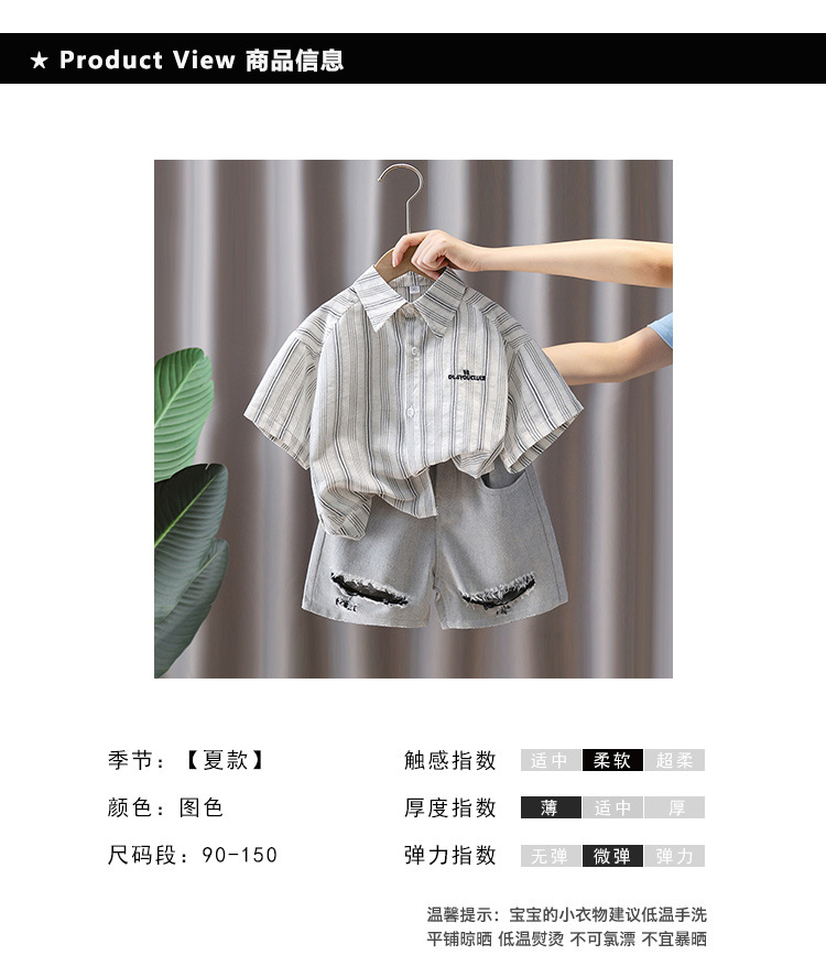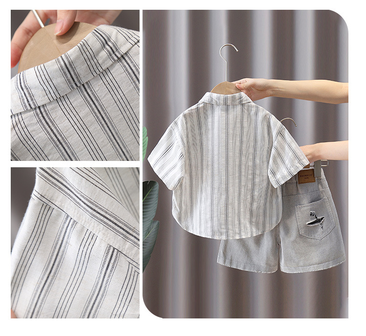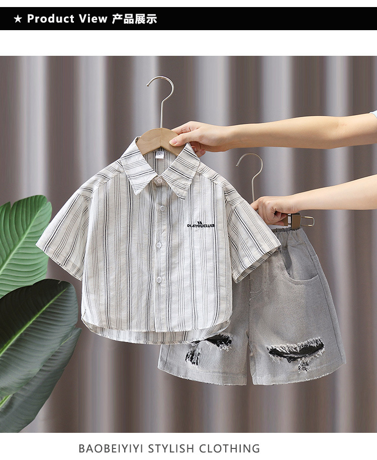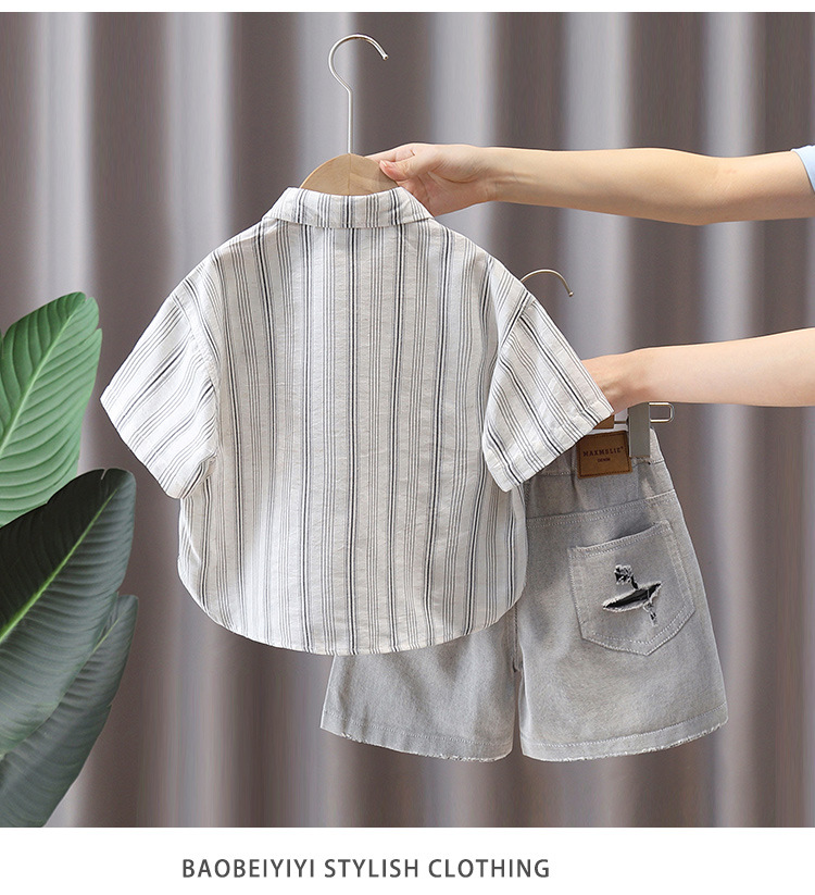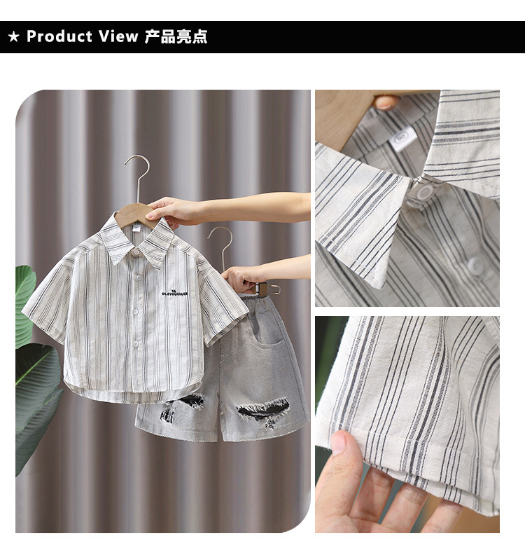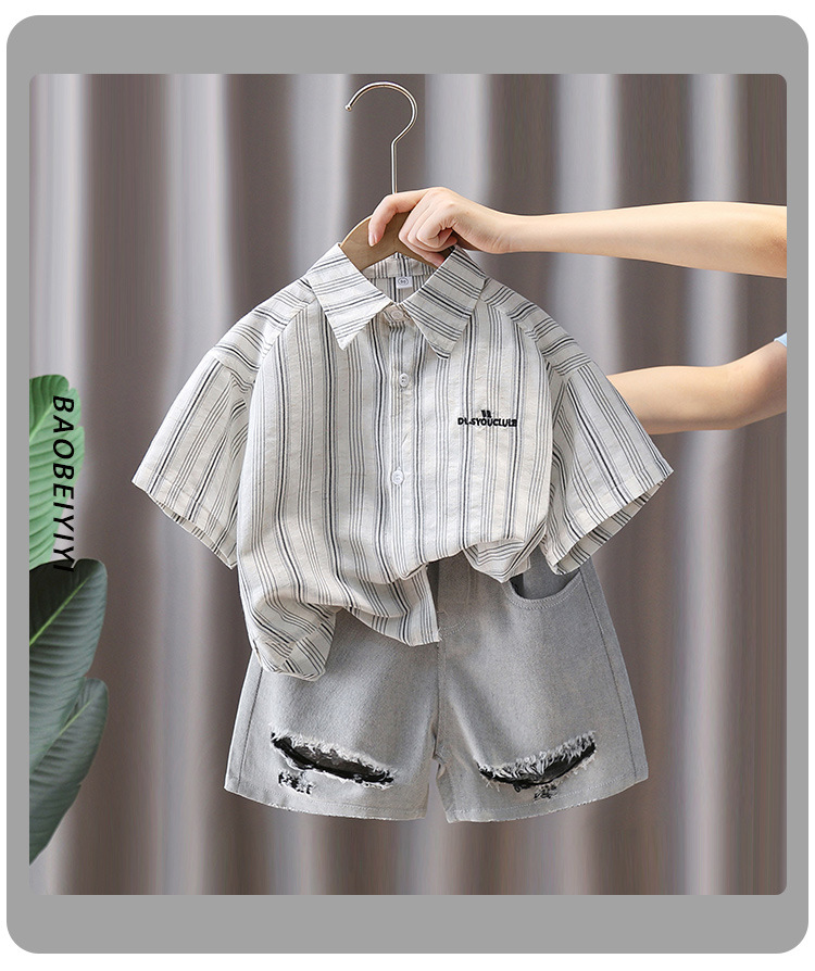 7367 Traje de camisa para niños Camisa a rayas de manga corta delgada de verano para niños 2025 nuevo traje de verano de dos piezas de verano