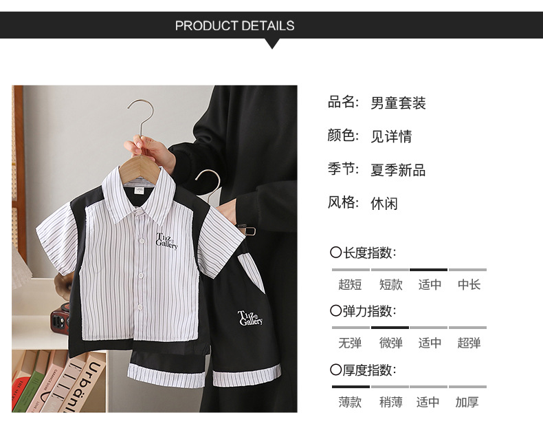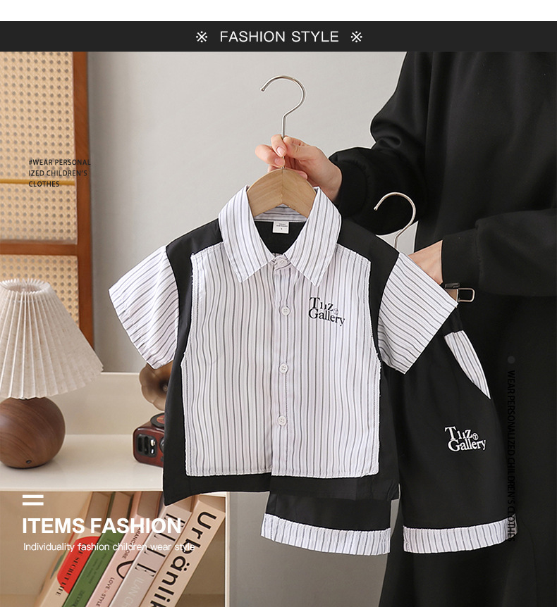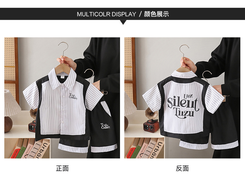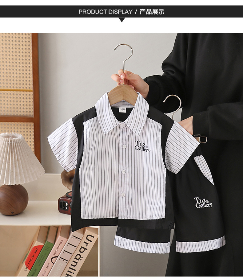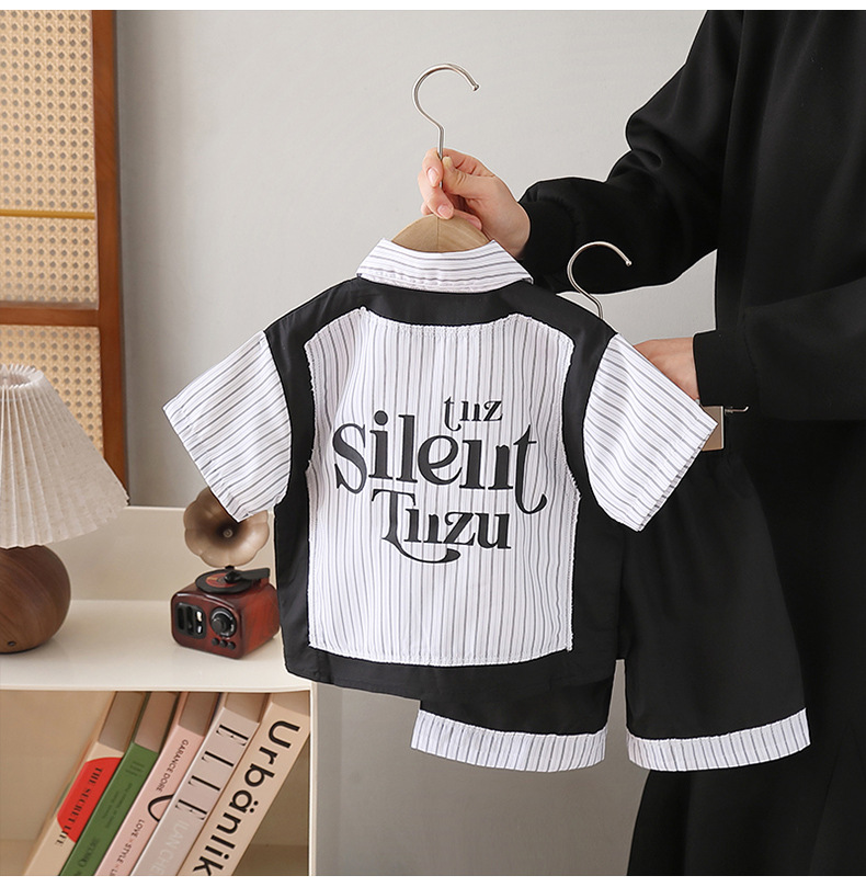 8124 Traje de verano para niños 2025 Nuevo estilo para niños Camisa de moda de estilo occidental de manga corta para niños bebé de verano