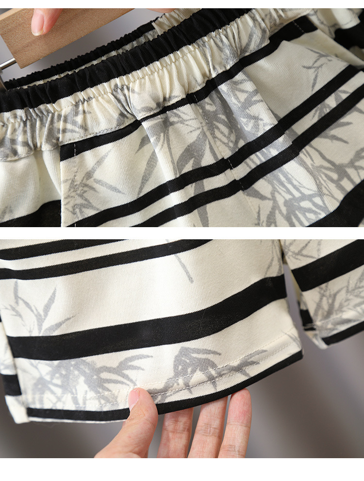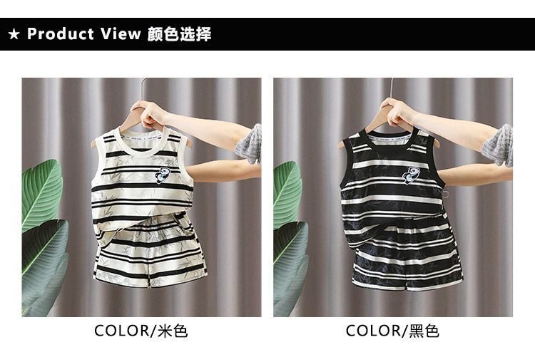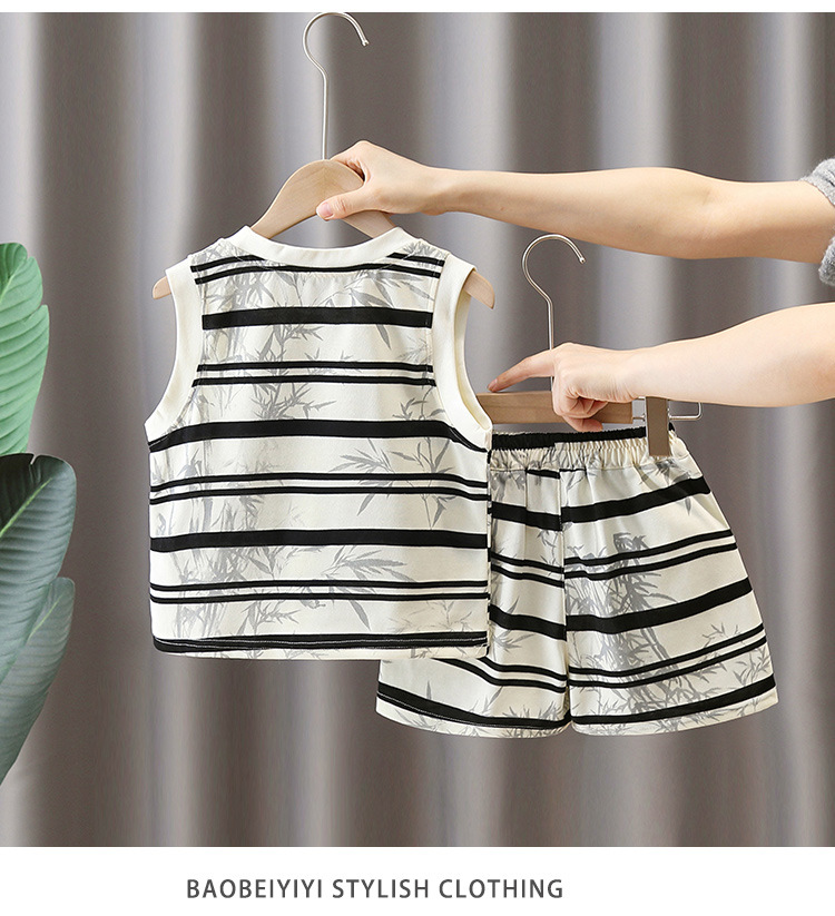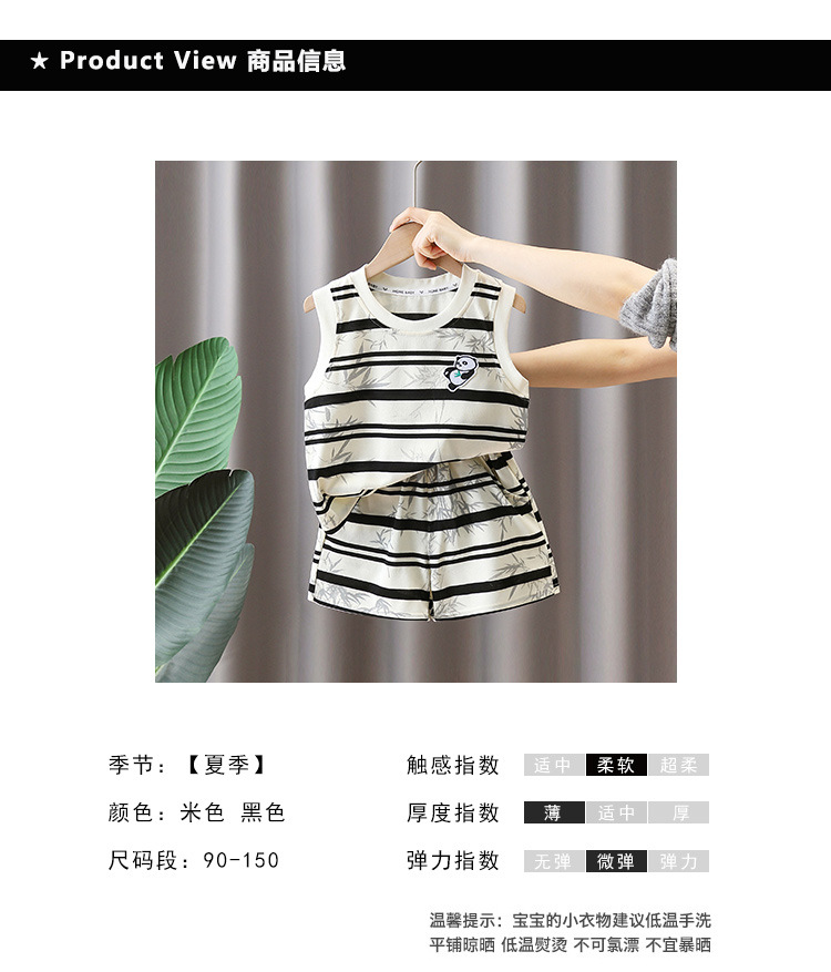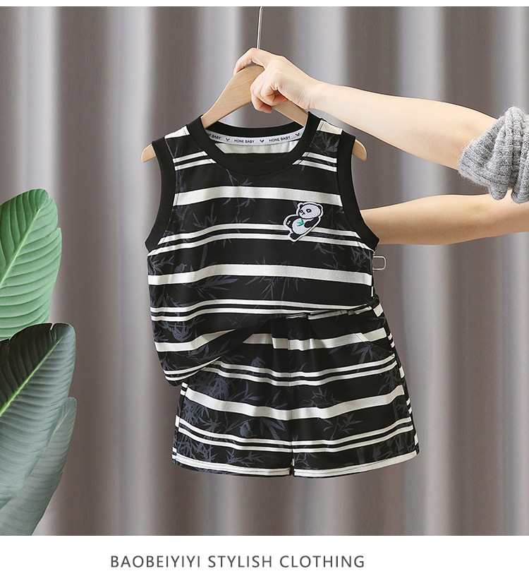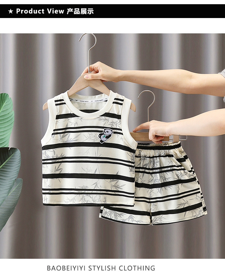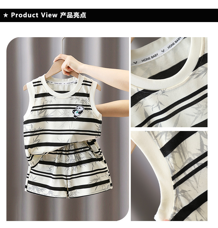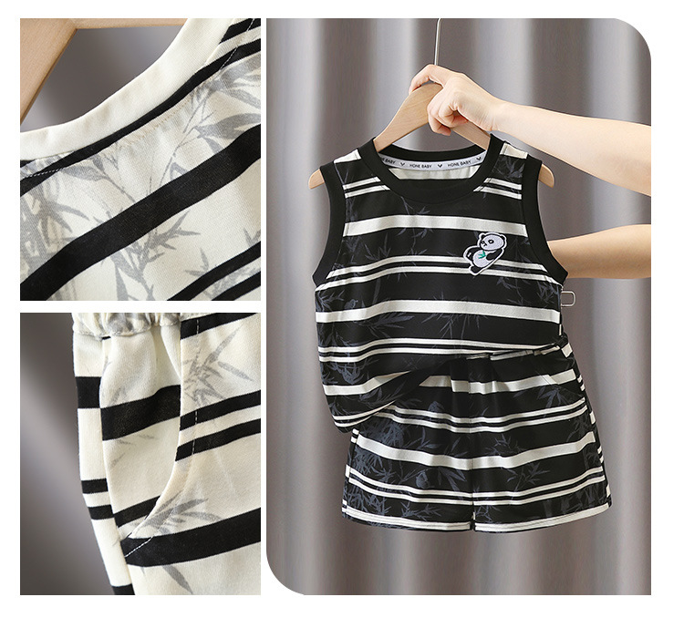 7373 Traje a rayas para niños 2025 Nuevo chaleco de panda sin mangas para niños Baby Summer Red de dos piezas Trendy