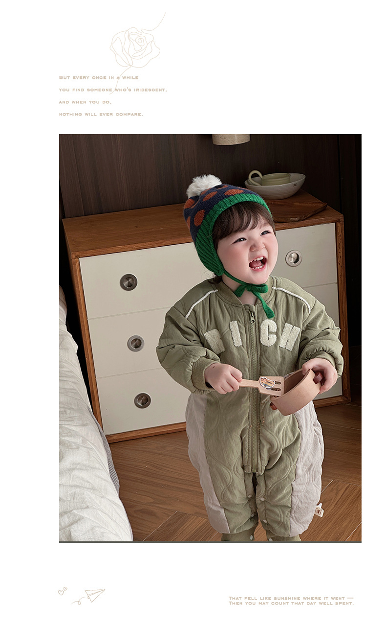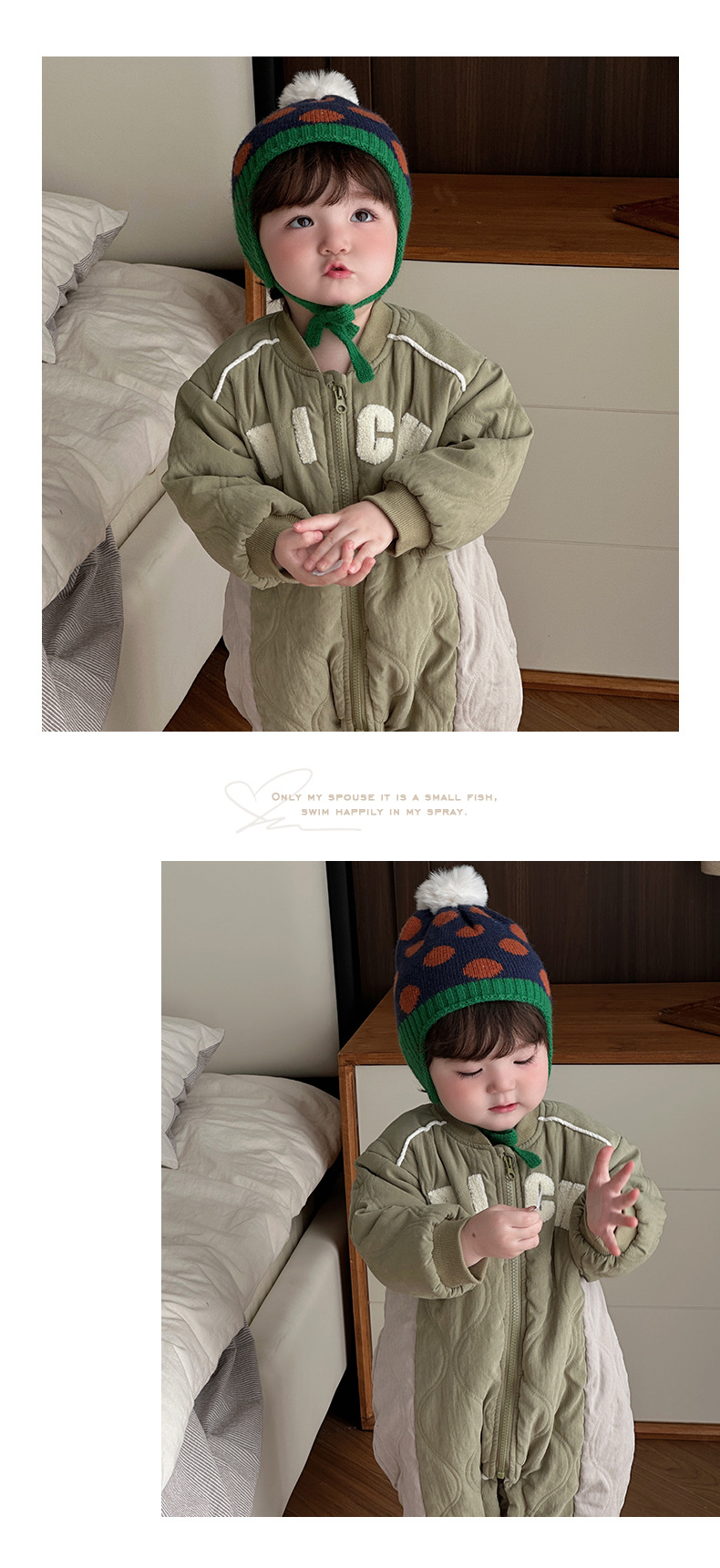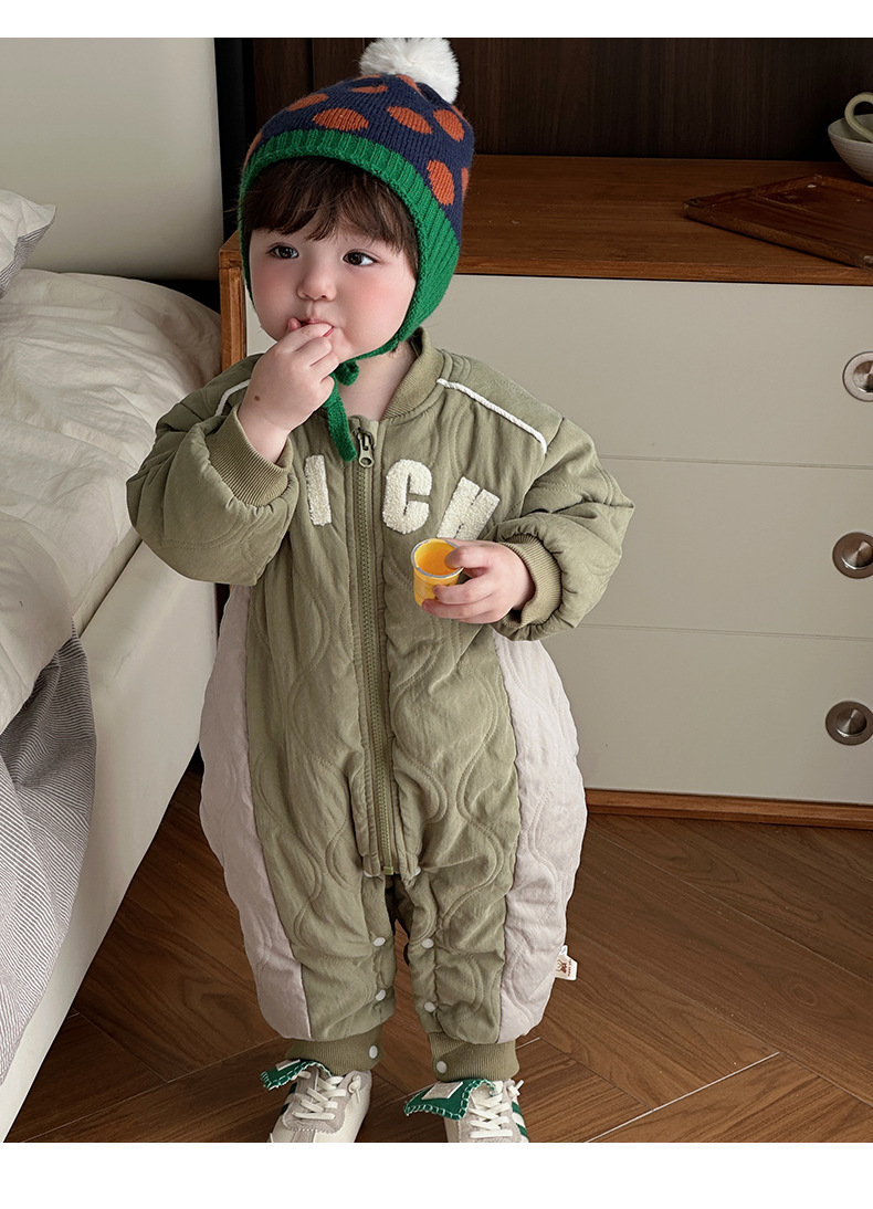 2024 nuevo invierno bebé coreano de dibujos animados letras de estilo occidental acolchado de algodón grueso cálido y cómodo abrigo de algodón de una pieza suave