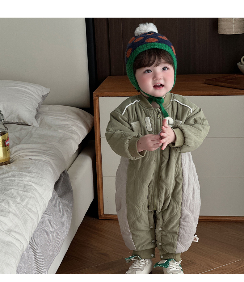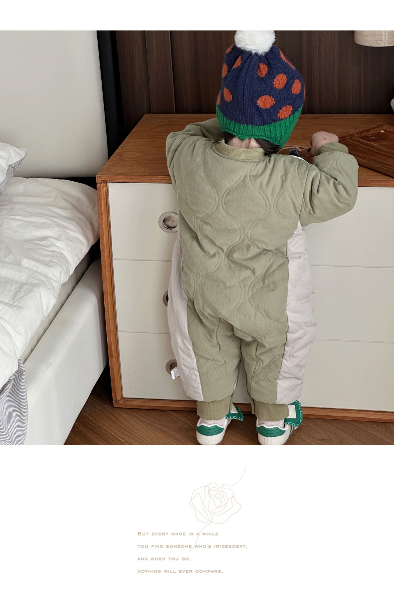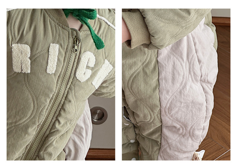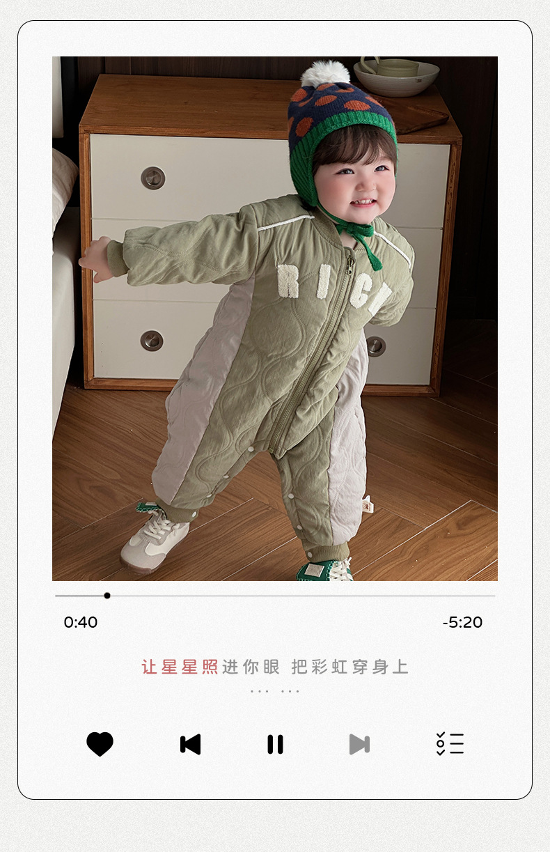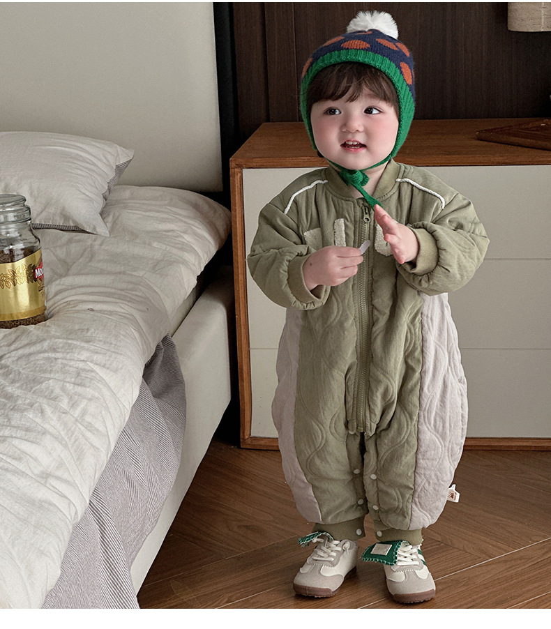2024 nuevo invierno bebé coreano de dibujos animados letras de estilo occidental acolchado de algodón grueso cálido y cómodo abrigo de algodón de una pieza suave