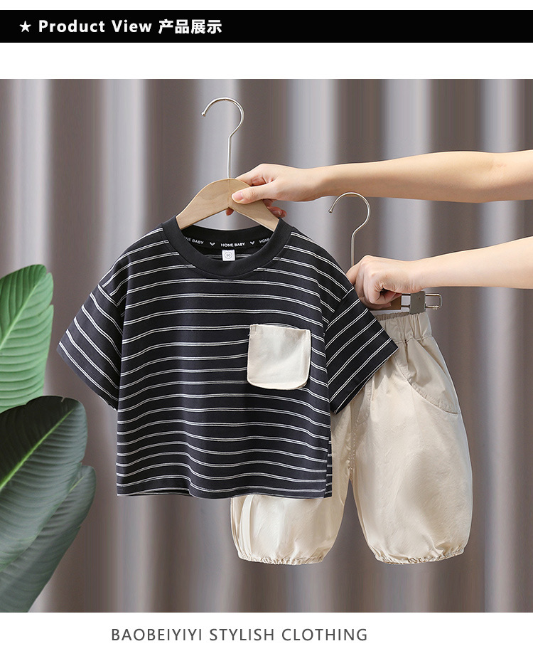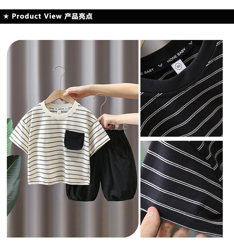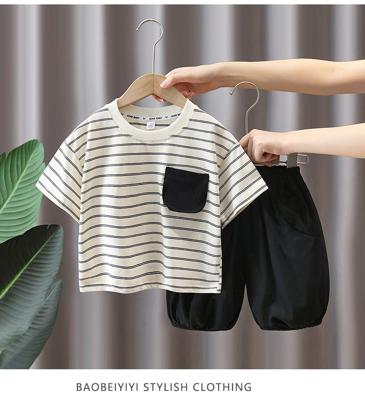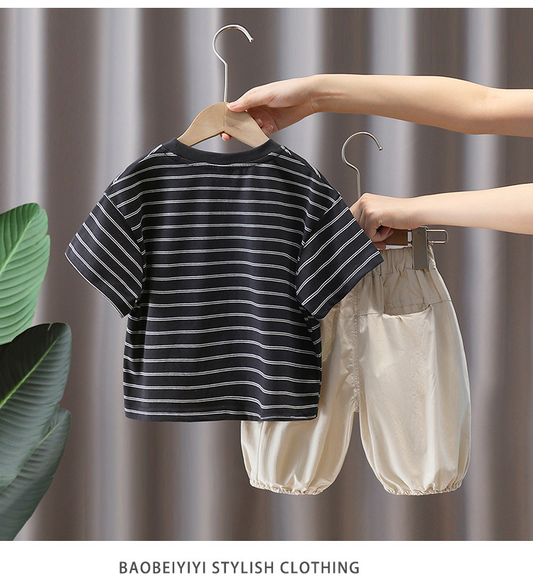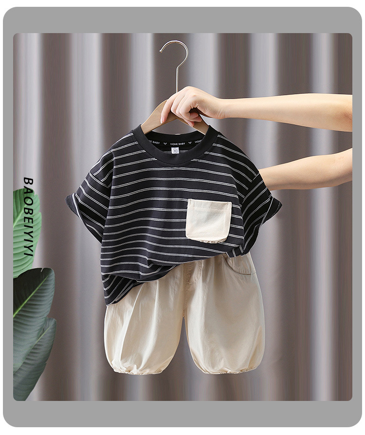 7369 Ropa para niños Traje de manga corta para niños Estilo de verano Estilo coreano Camiseta a rayas Moda para niños Traje de dos piezas de verano 5