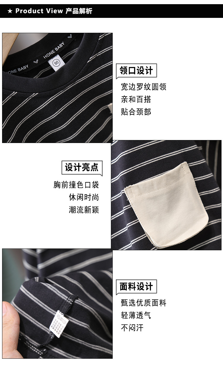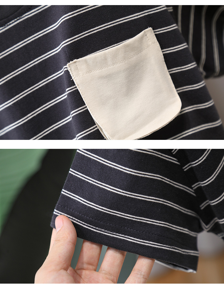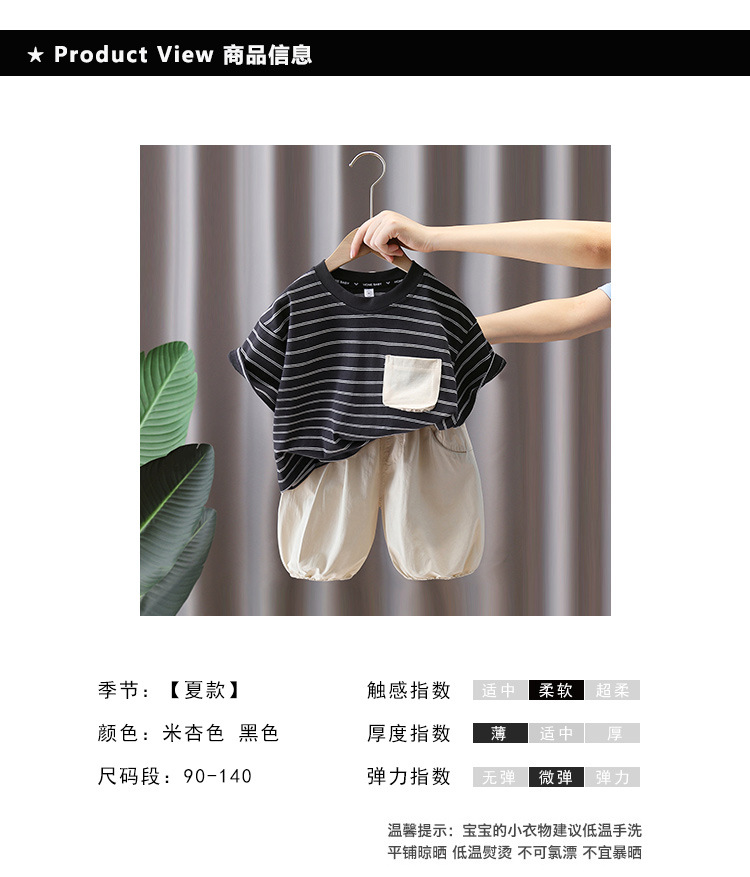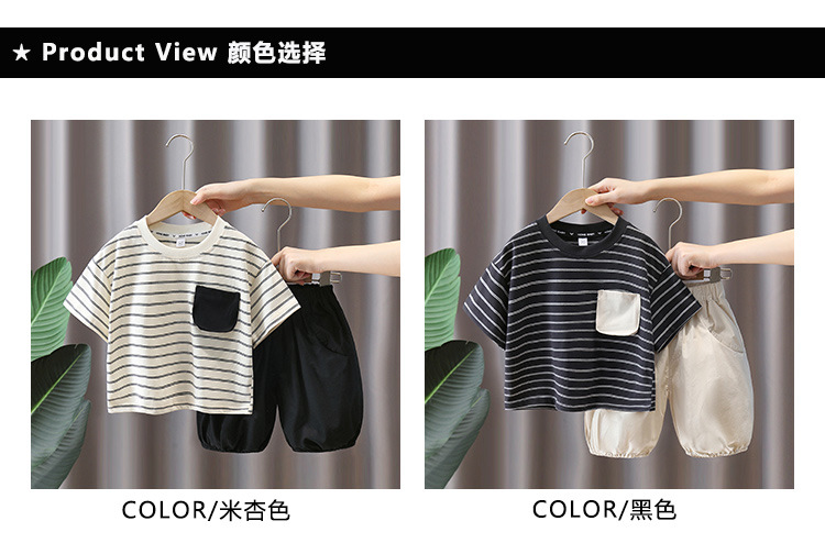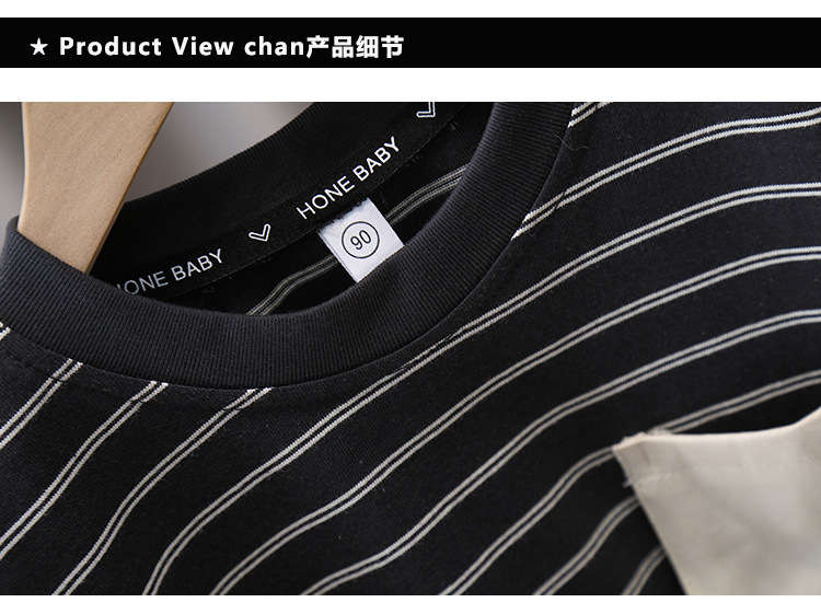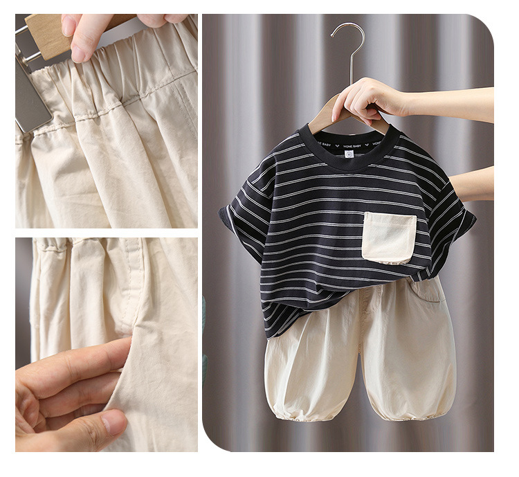 7369 Ropa para niños Traje de manga corta para niños Estilo de verano Estilo coreano Camiseta a rayas Moda para niños Traje de dos piezas de verano 5