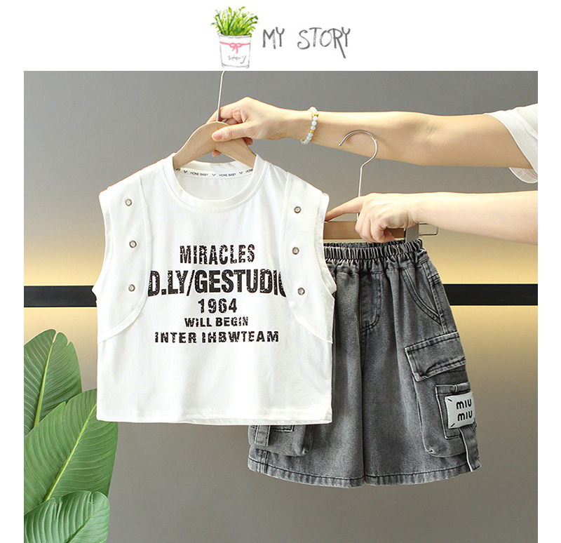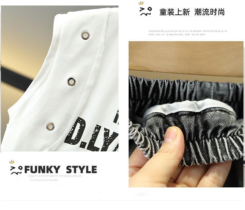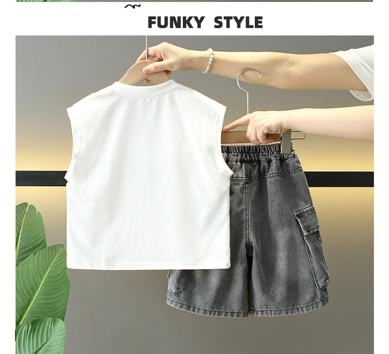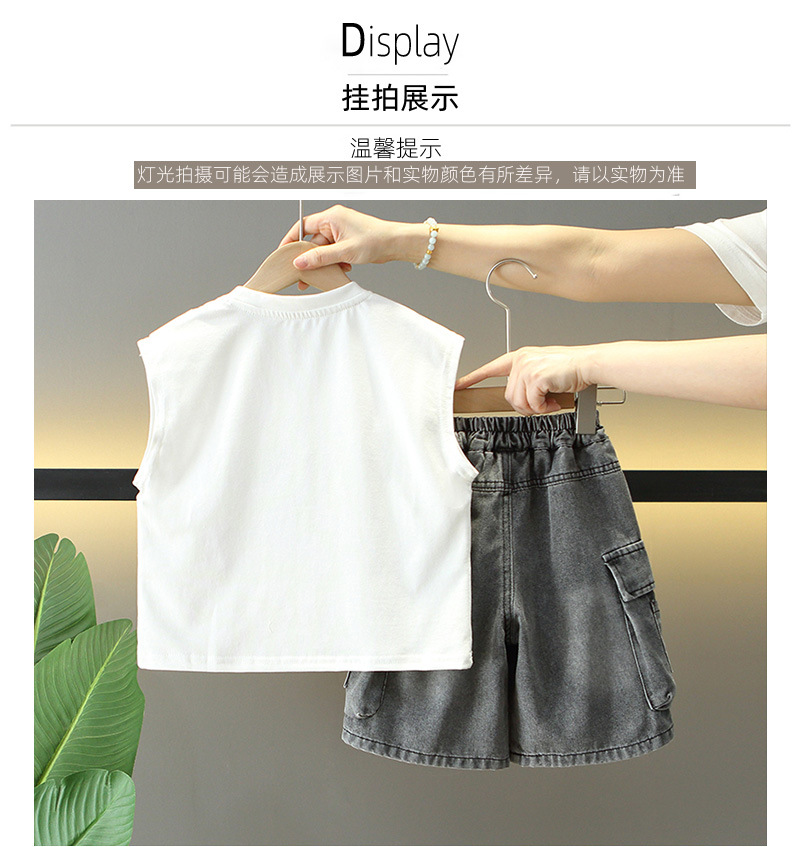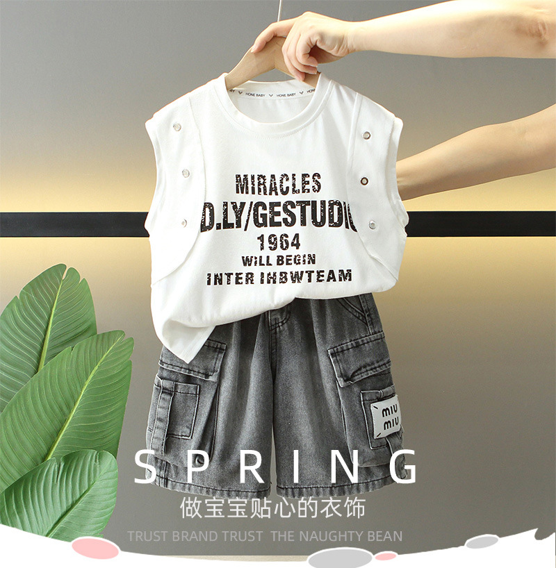 8105 Traje sin mangas de verano para niños 2025 verano nuevo estilo para niños estilo coreano pantalones cortos de mezclilla guapos ropa coreana