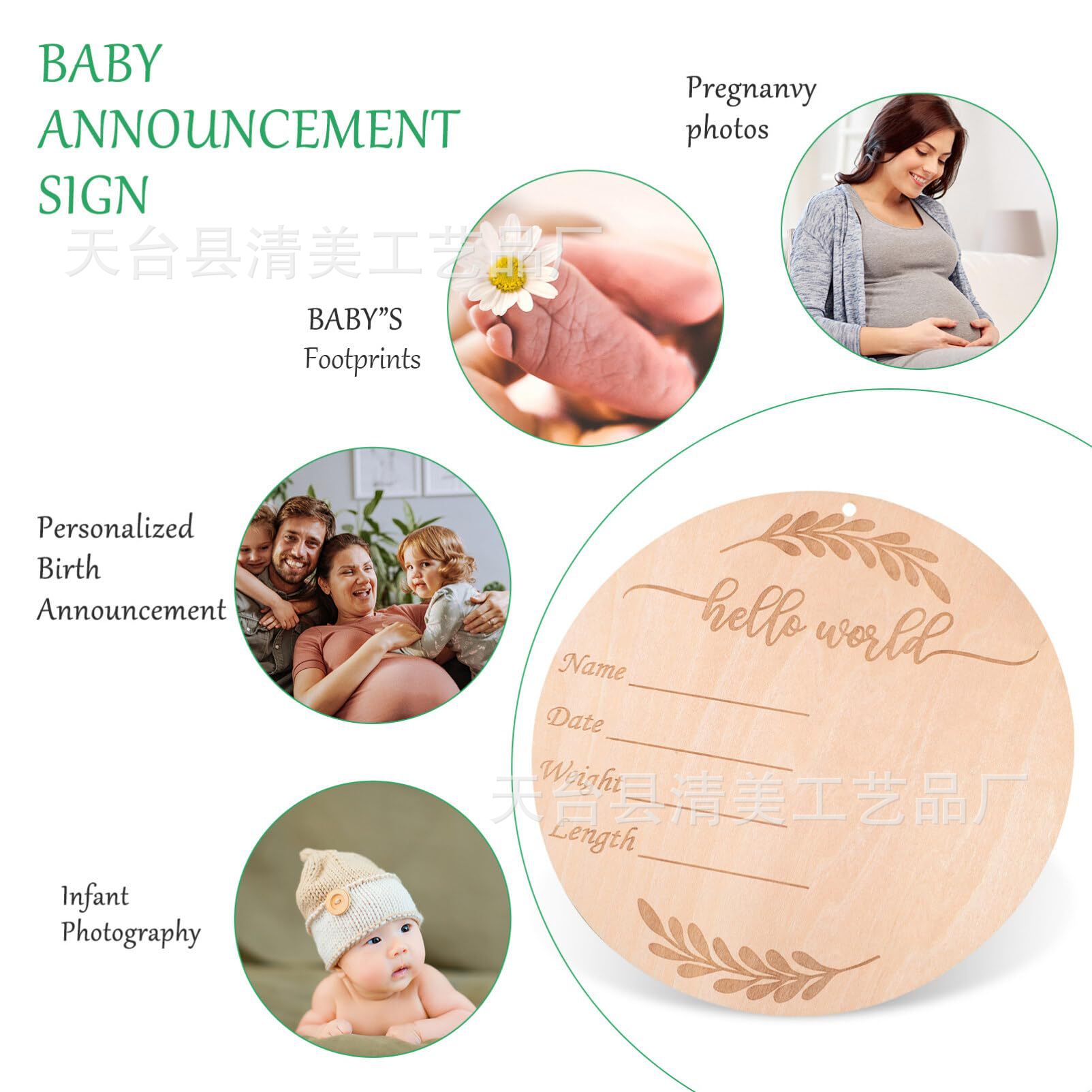 10,16 cm crecimiento del bebé placa conmemorativa del bebé placa conmemorativa del bebé accesorios de la foto del recién nacido pieza de madera redonda