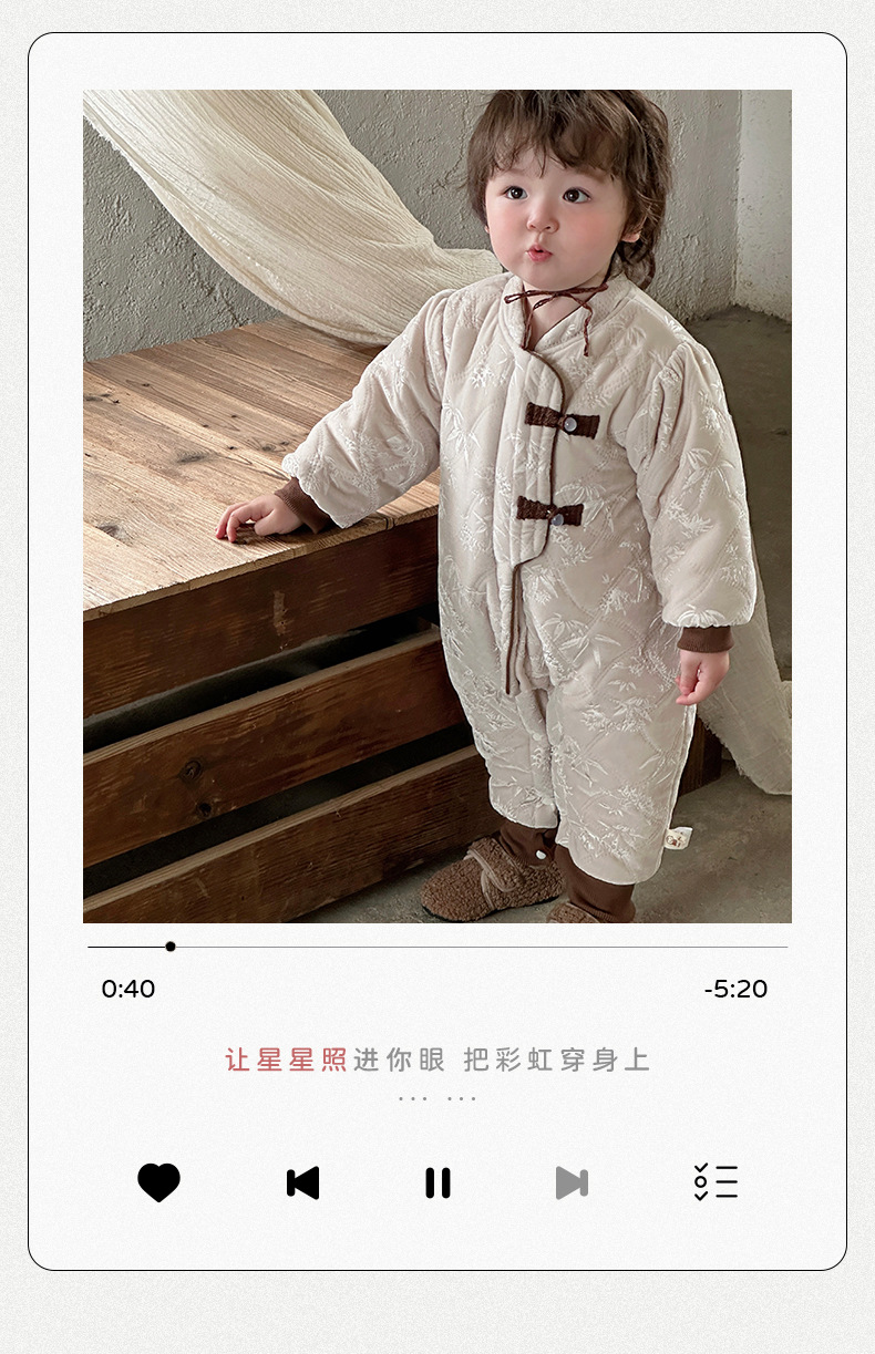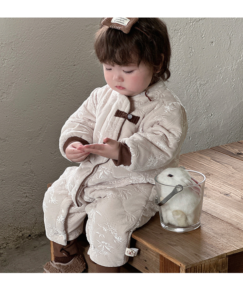 Ropa de bebé, engrosamiento de invierno, cálido y cómodo, nuevo estilo nacional chino más terciopelo acolchado para bebés con hebilla