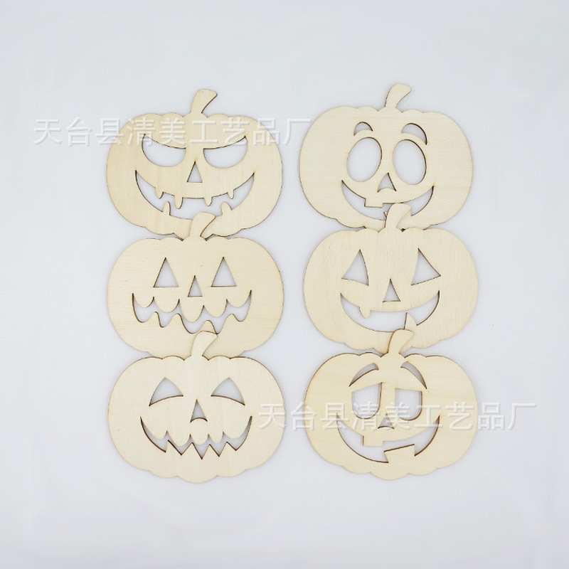 Seis piezas de madera de Halloween decoración de dibujos animados mueca calabaza pintura de piezas de madera cara sonriente artesanía de madera de bricolaje