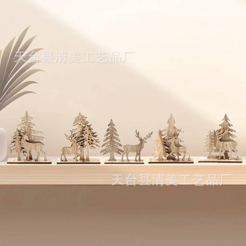 Decoración navideña de madera Muñeco de nieve alce Decoración de fiesta navideña de madera Decoración creativa