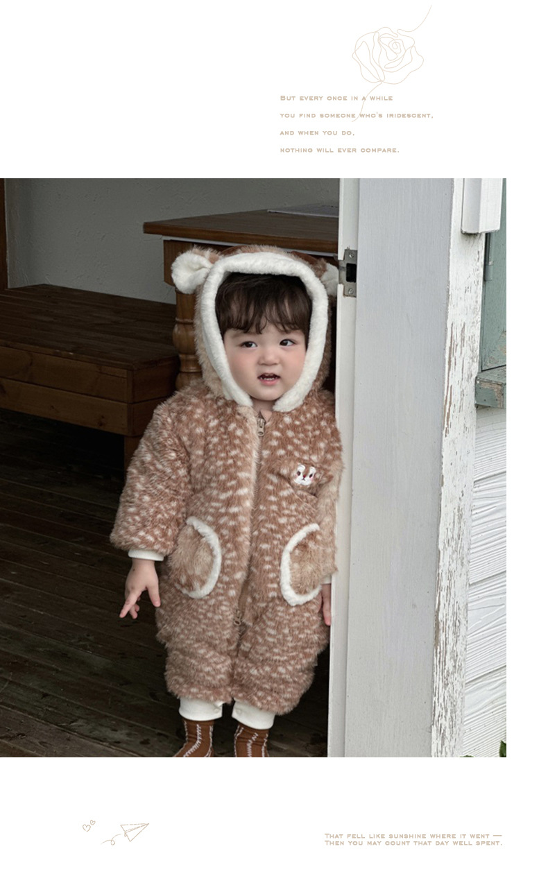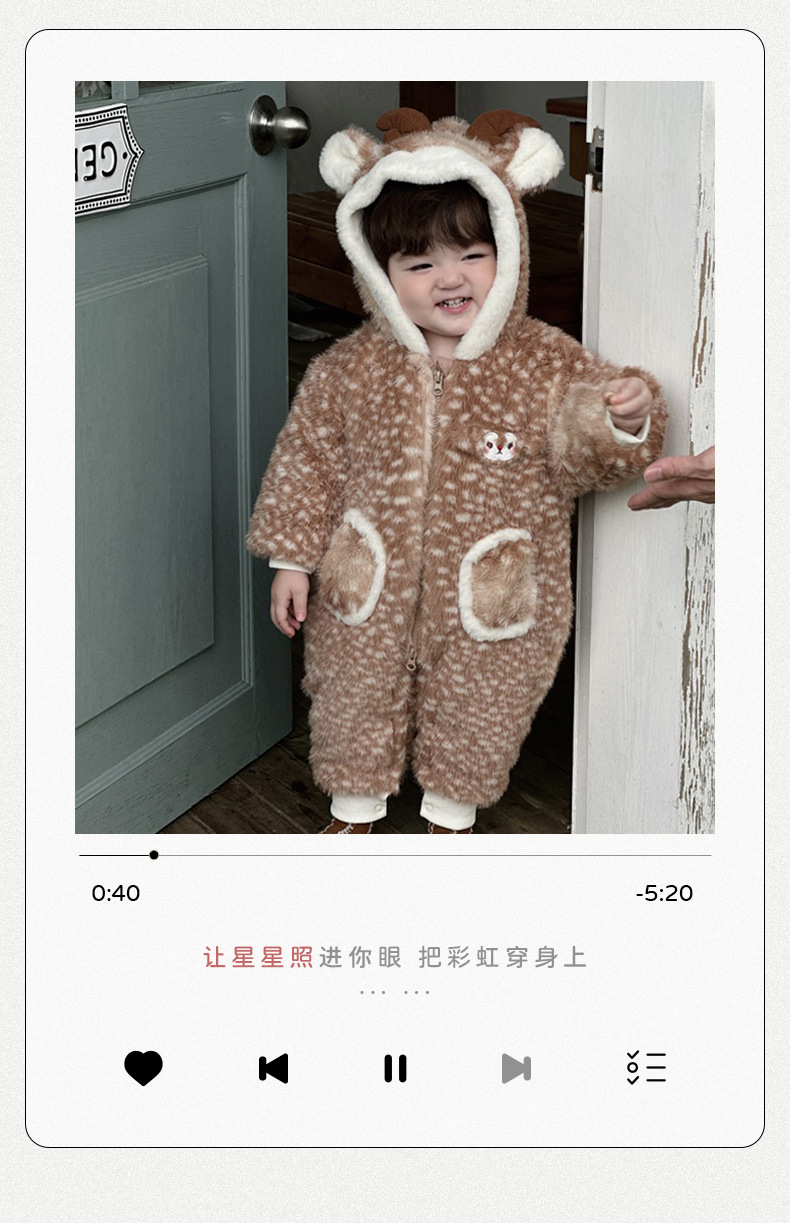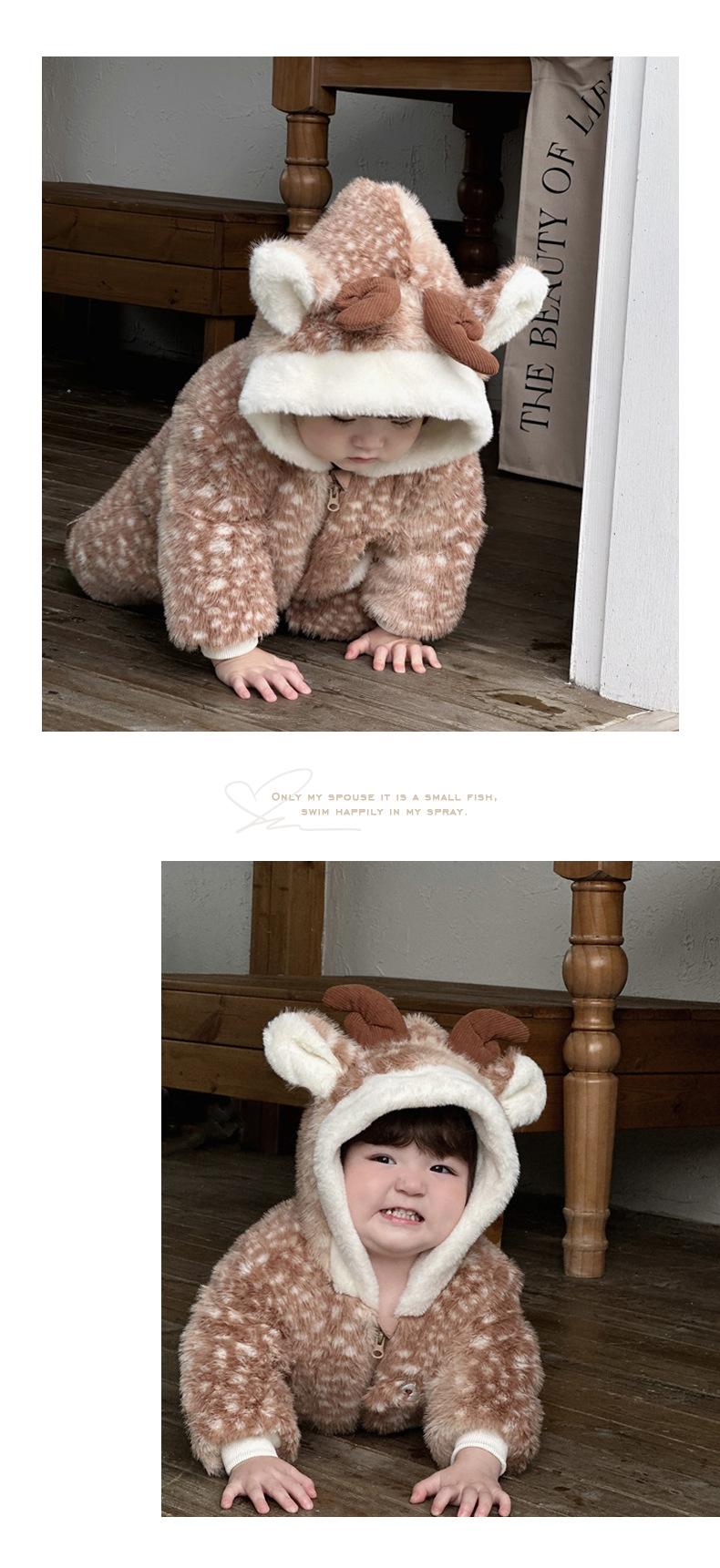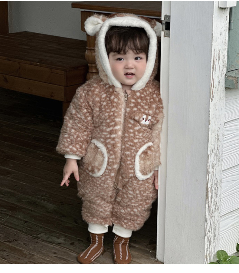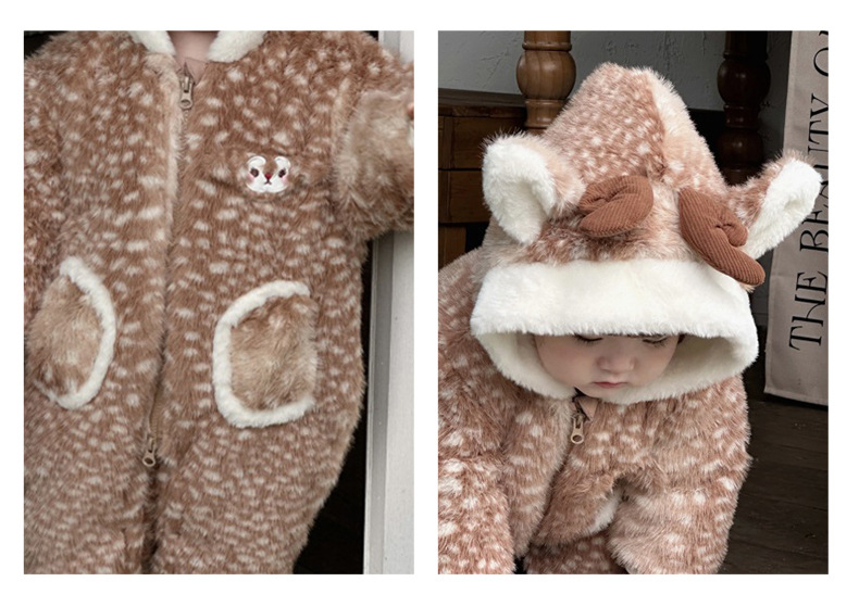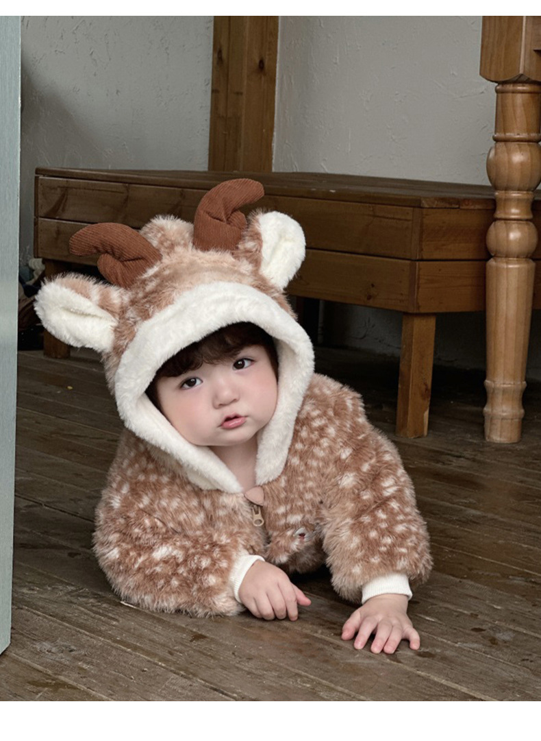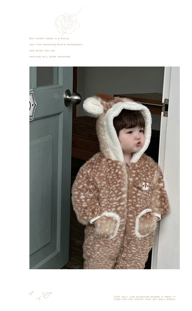 Mono de Felpa para Bebé Niño, Diseño de Ciervo, Grueso, Cálido, Cómodo, Suave y Elegante, Invierno 2025