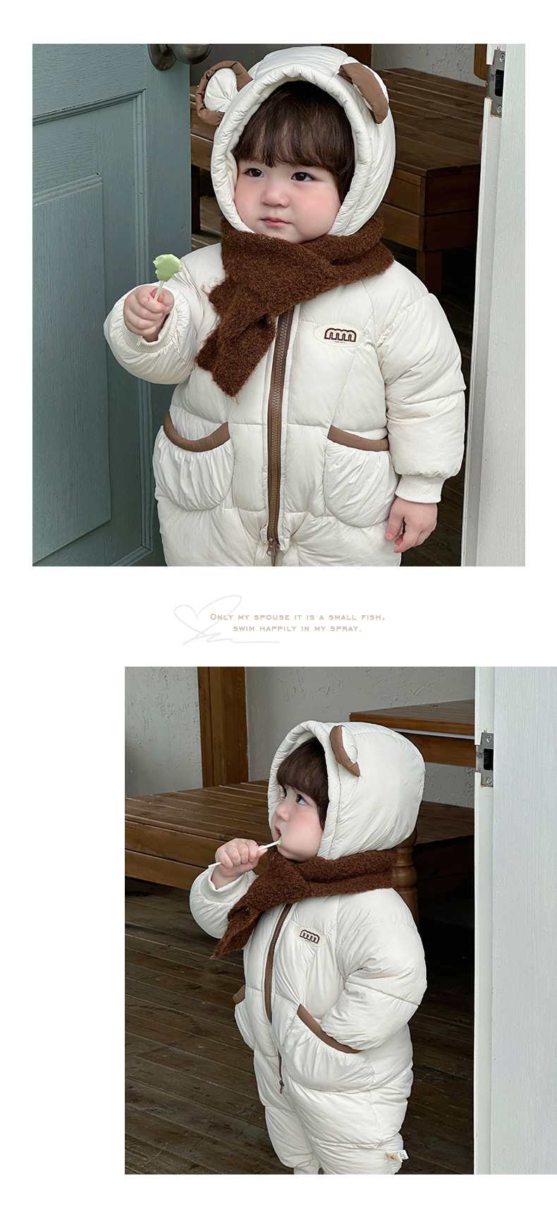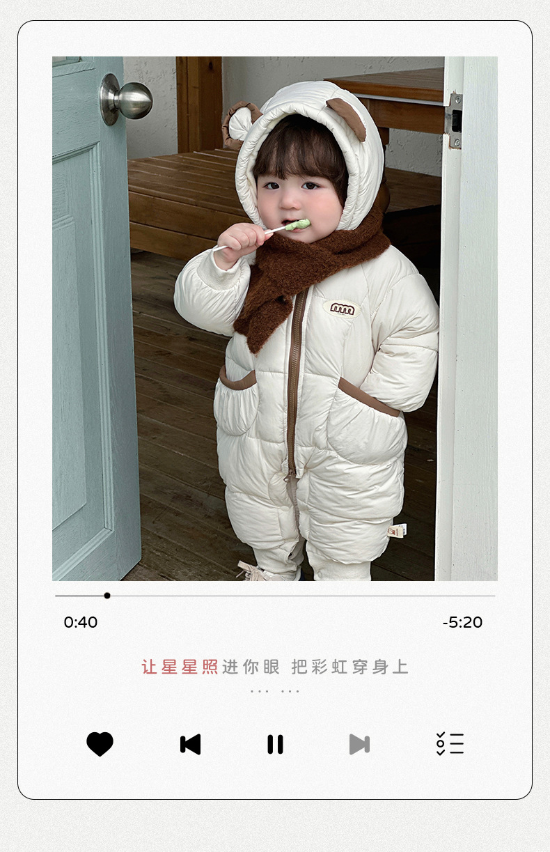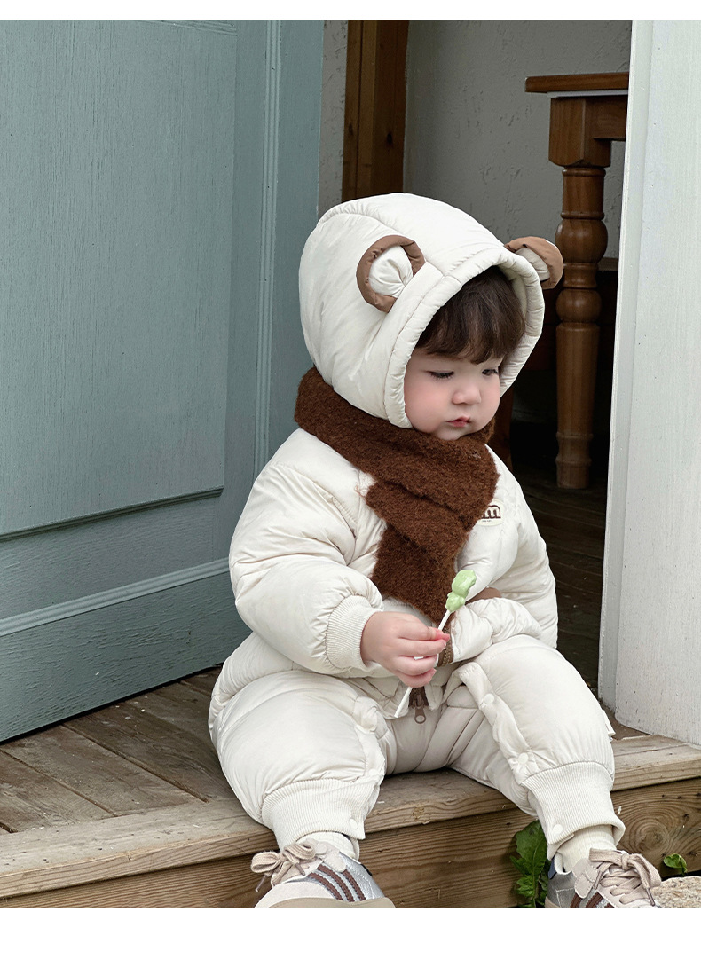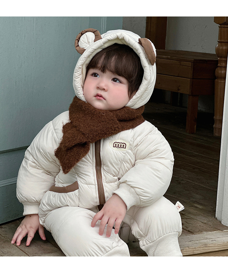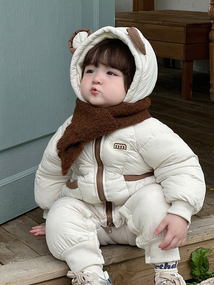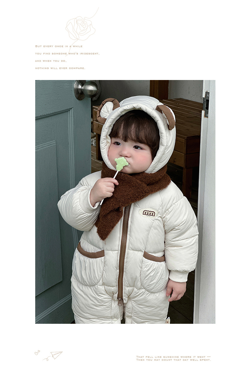 Ropa para niños coreanos ropa de invierno para bebés más mamelucos acolchados de terciopelo versión coreana bebé lindo súper lindo mono chaqueta acolchada de invierno marea