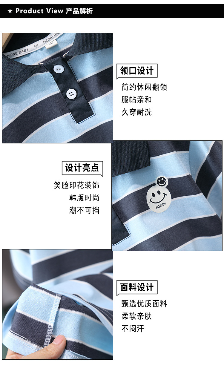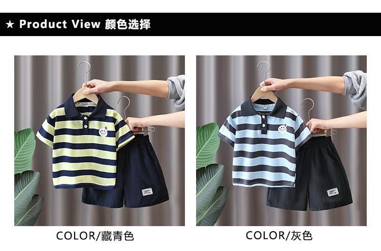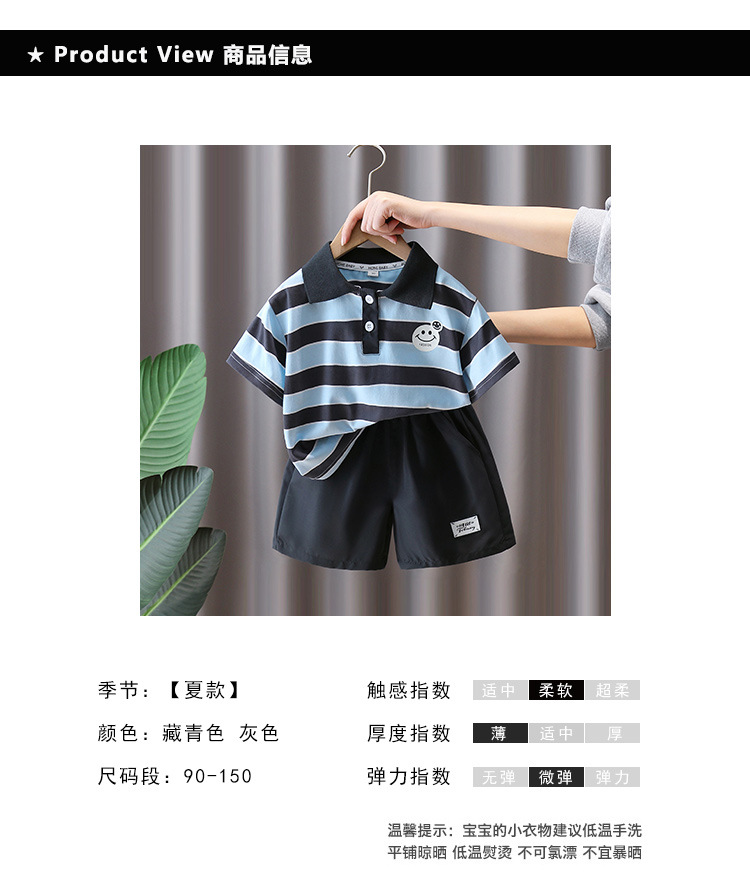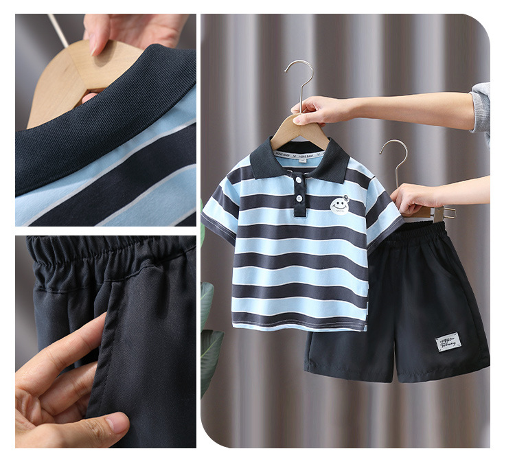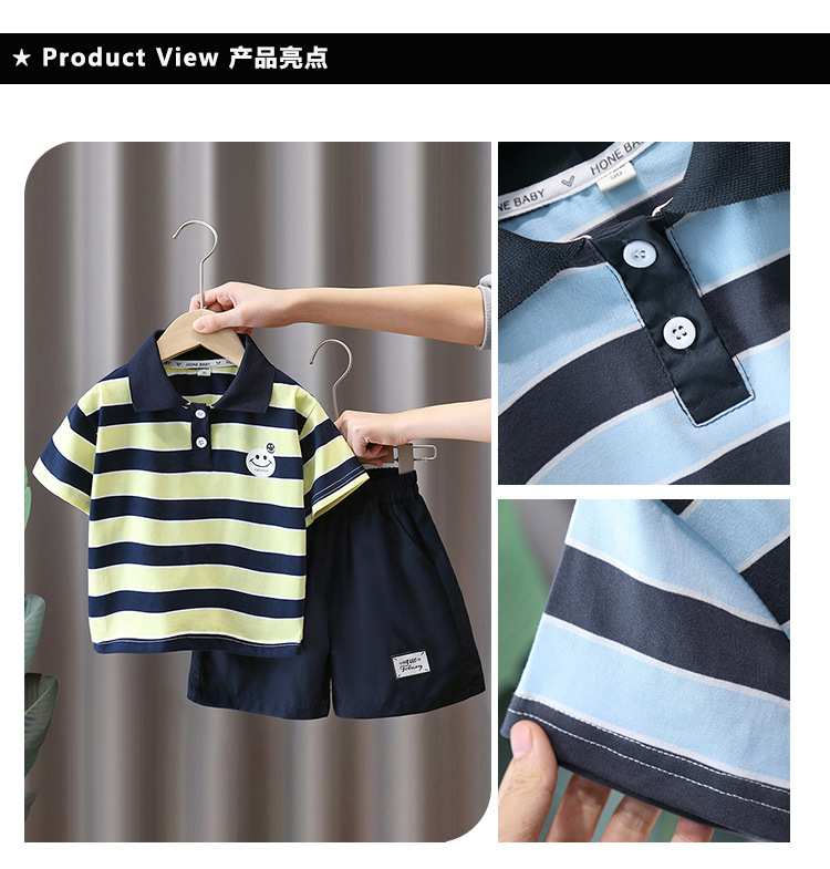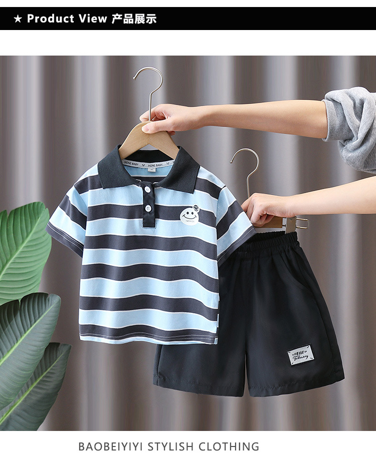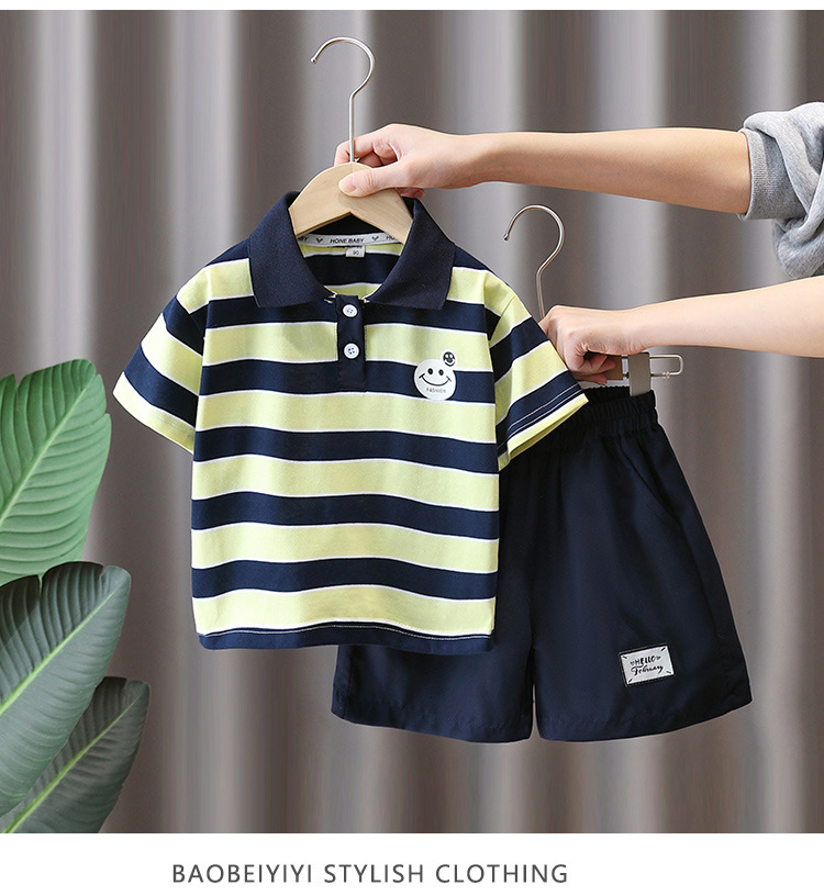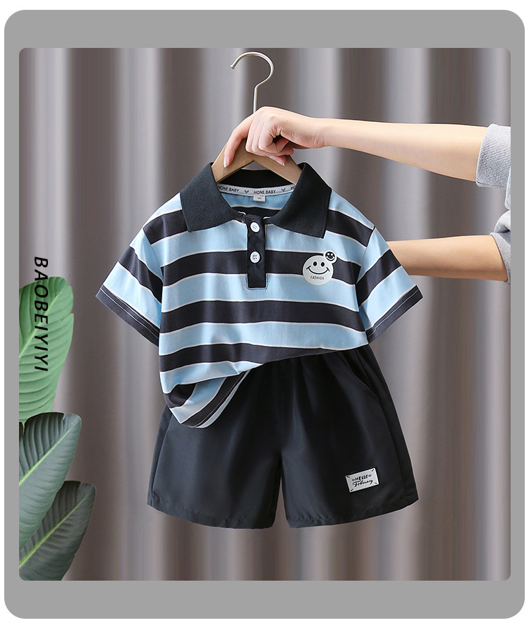 7321 Traje de niño Verano 2025 Nuevo estilo Trendy Queer Camisa POLO a rayas de manga corta Traje de dos piezas de moda de verano