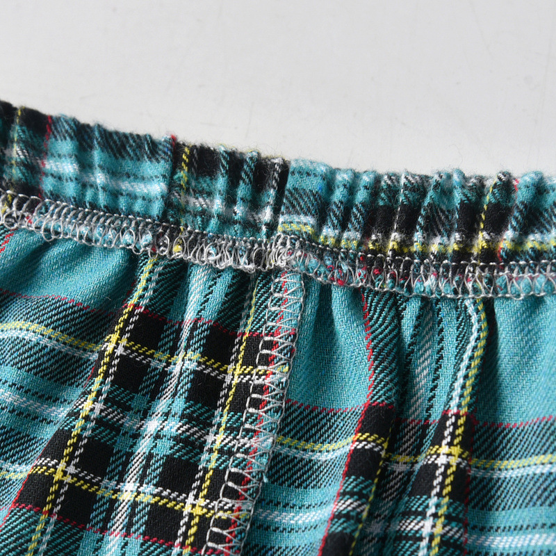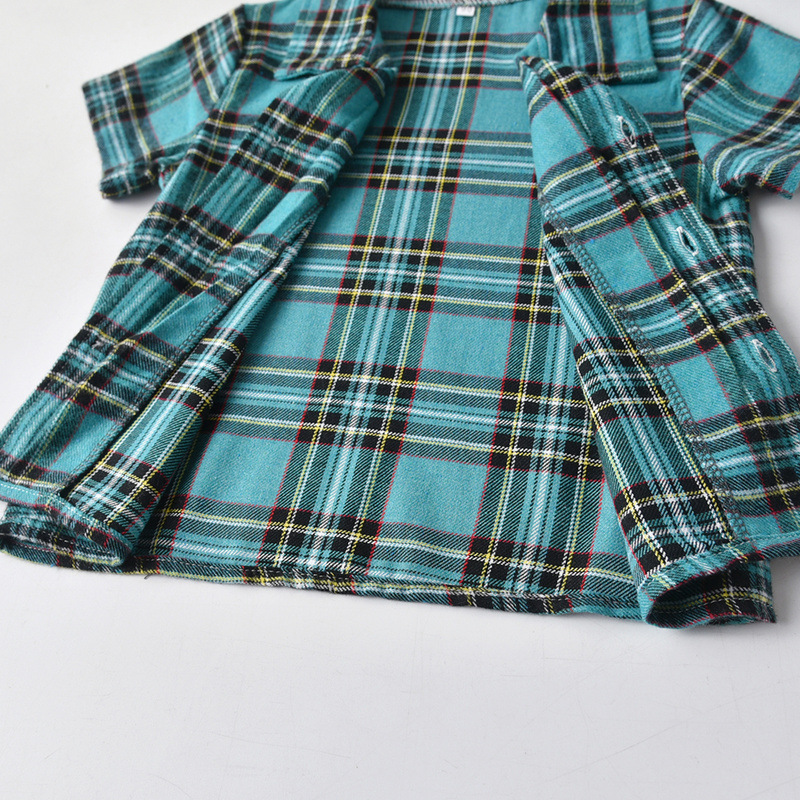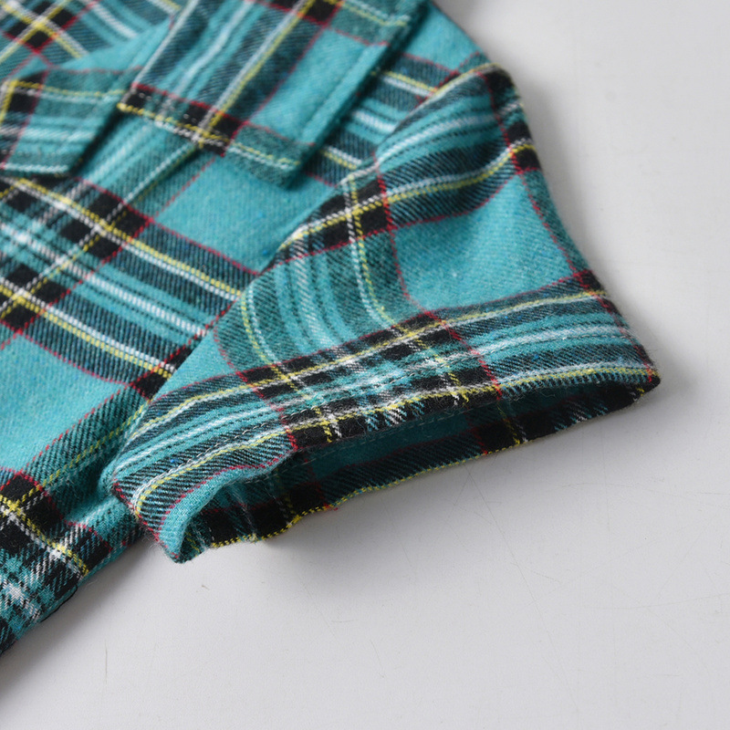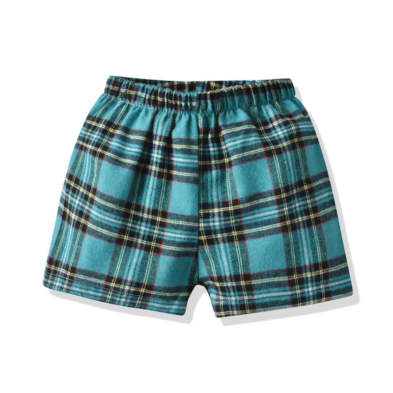 2024 comercio exterior ropa para niños y niñas rebeca de manga corta a cuadros con solapa de verano pantalones cortos elástico pijamas kids de dos piezas