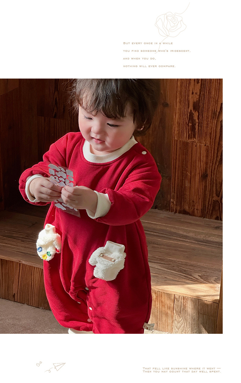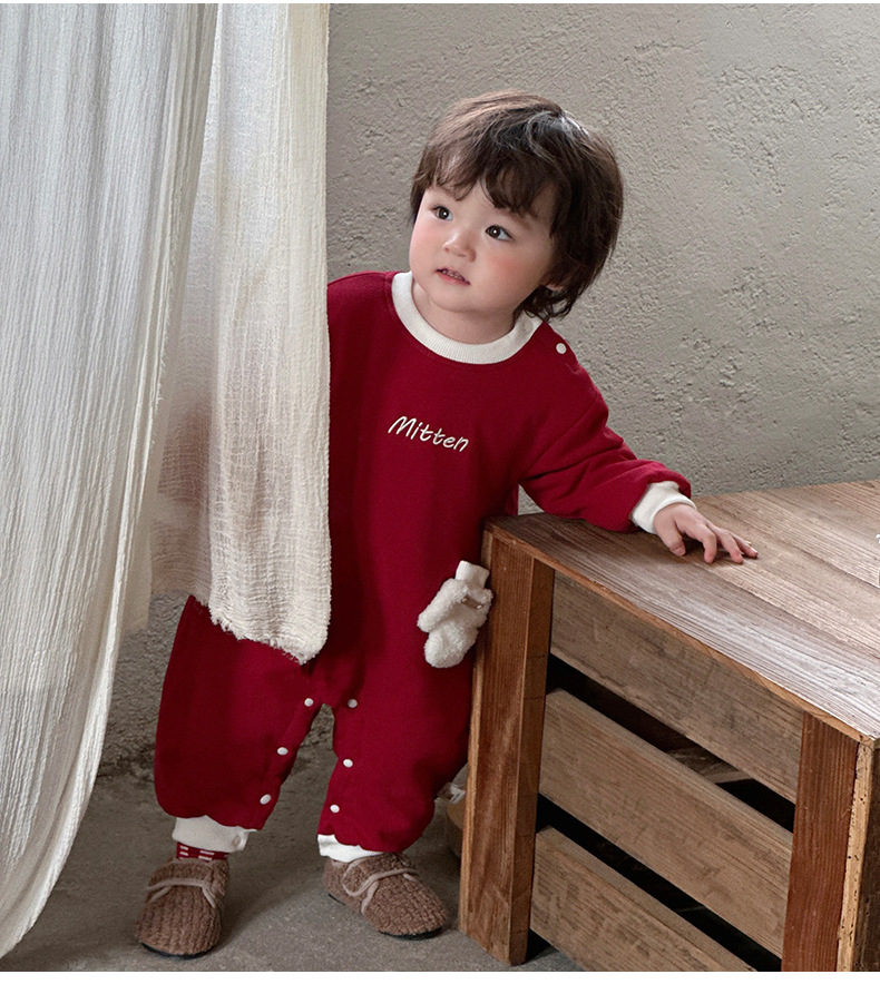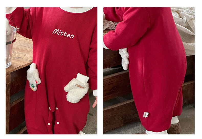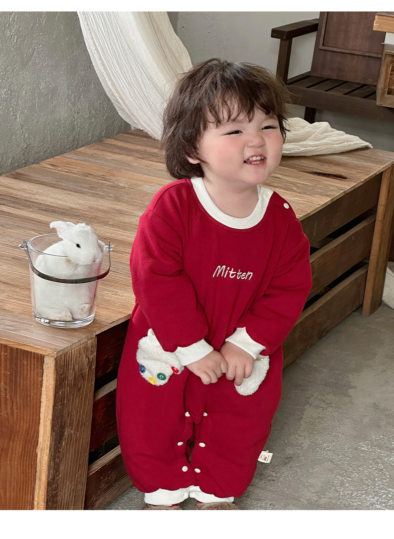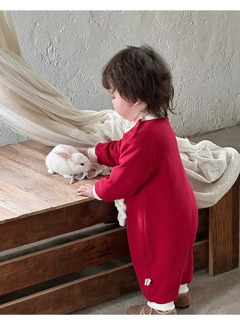 2024 nuevo traje de gatear para bebé de invierno, estilo occidental, cálido, cómodo y grueso de una pieza, vestido rojo de Año Nuevo, vestido de fin de semana
