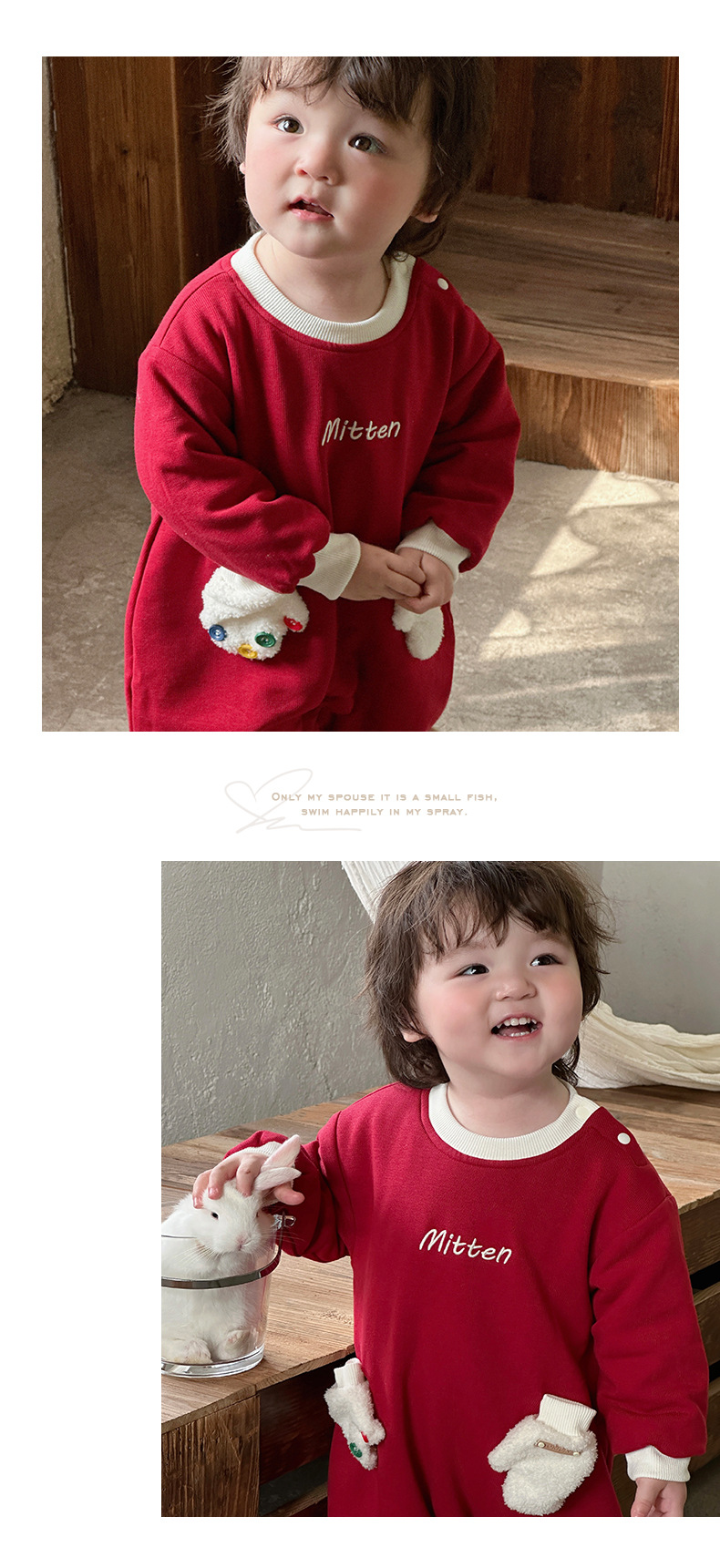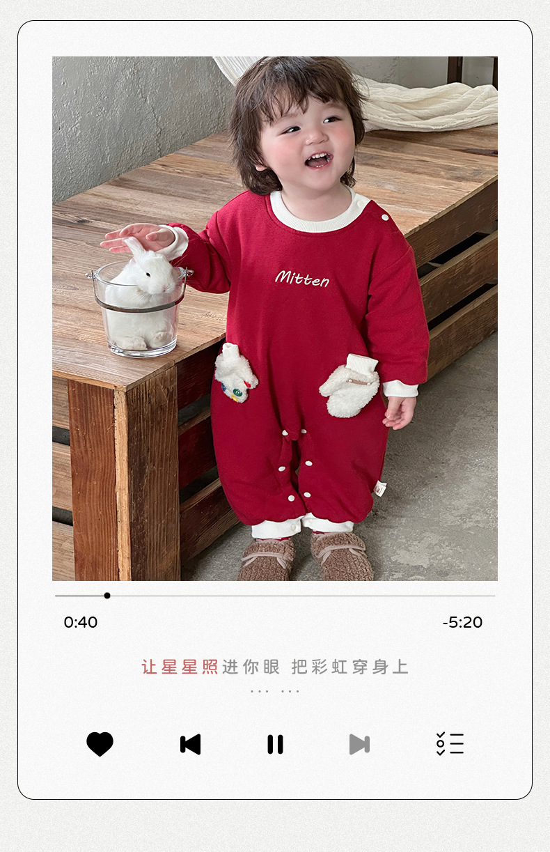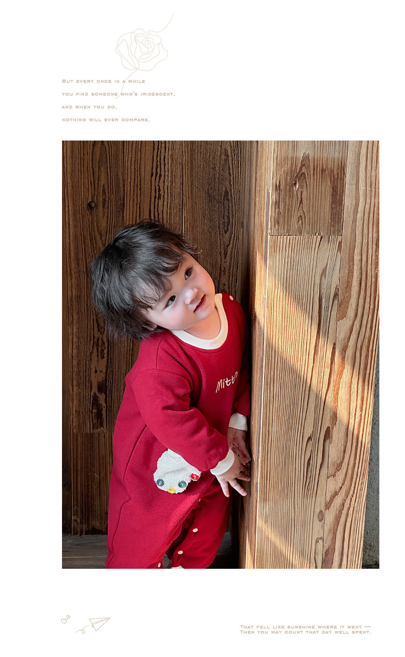 2024 nuevo traje de gatear para bebé de invierno, estilo occidental, cálido, cómodo y grueso de una pieza, vestido rojo de Año Nuevo, vestido de fin de semana