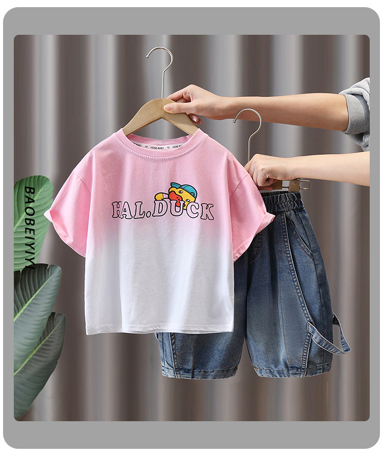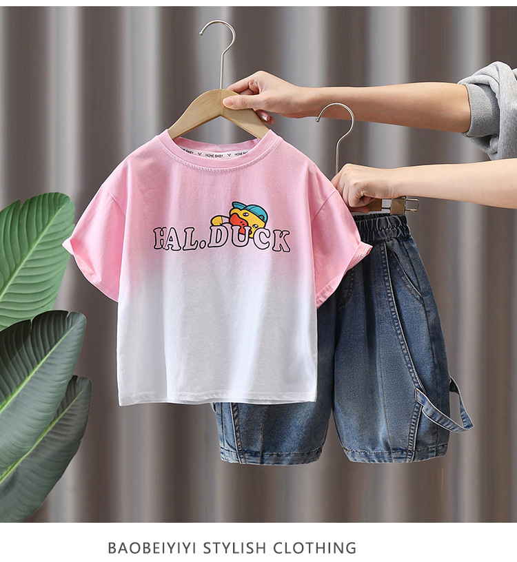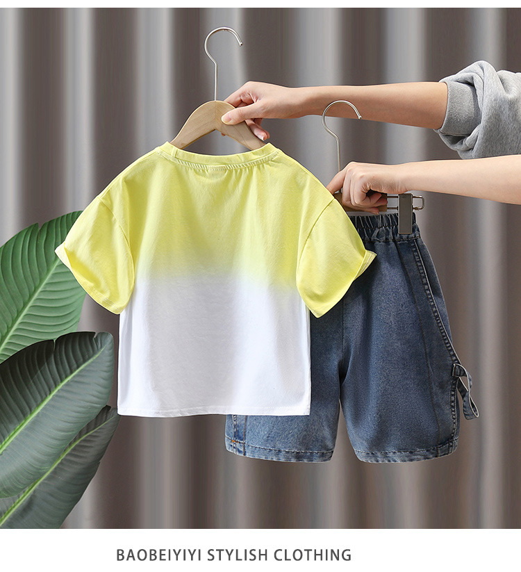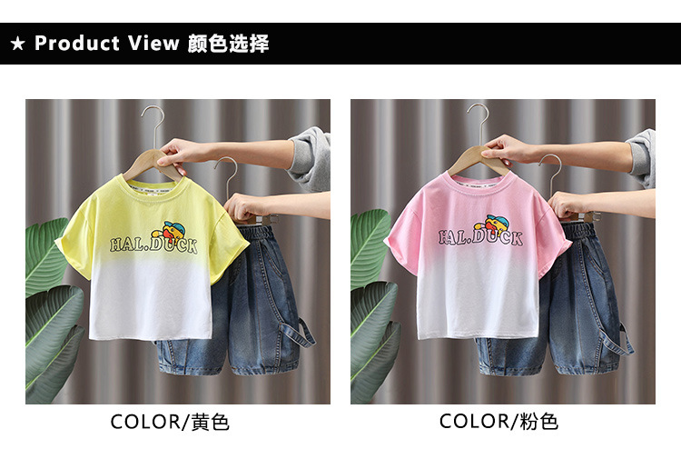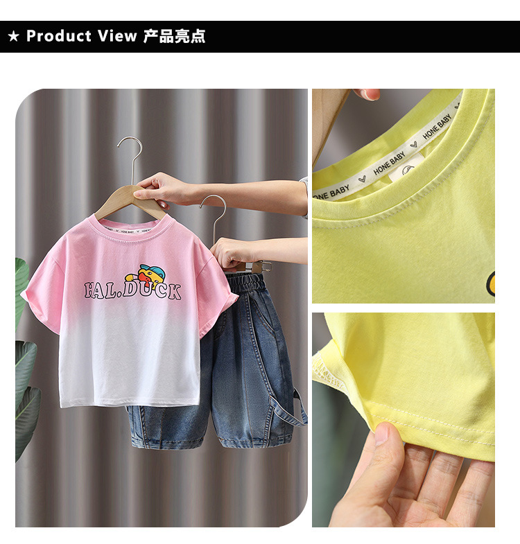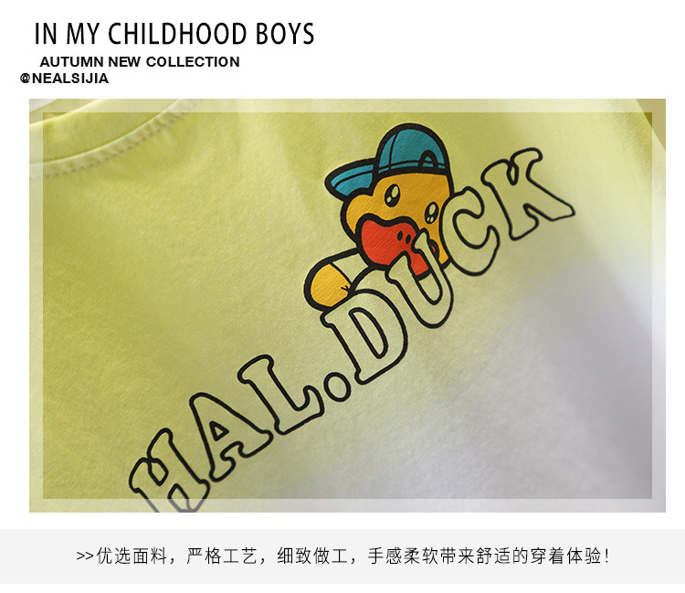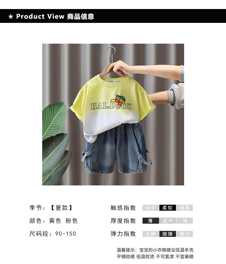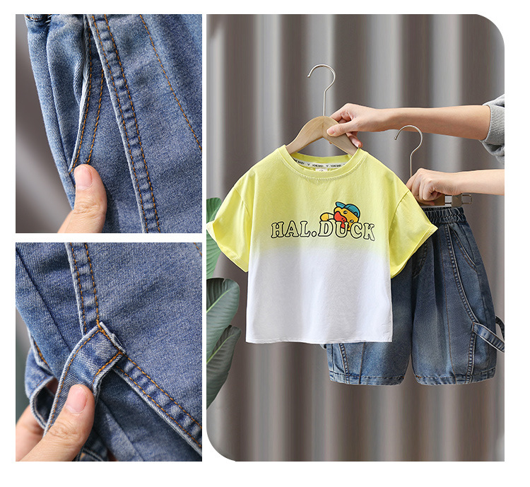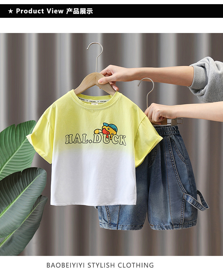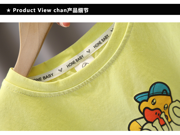 7313 Little Yellow Duck Clouds Traje de verano para niños 2025 Nueva ropa de verano para niños Estilo fino de manga corta guapo y de moda
