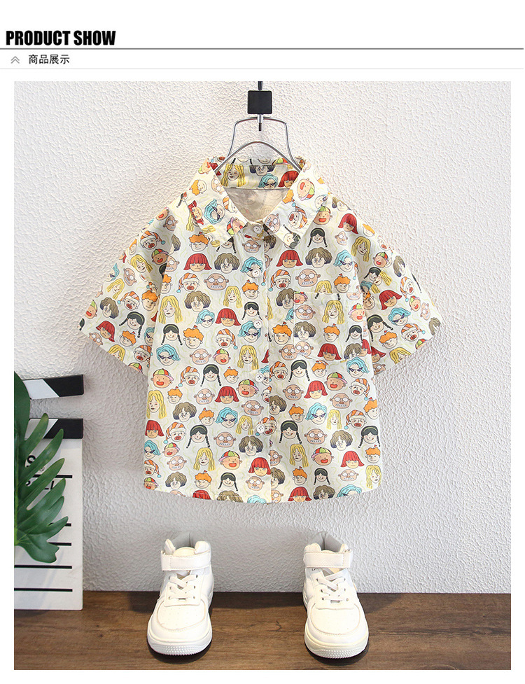 8026 Camisa de manga corta para niños Verano 2025 Nuevo estilo Niño Estilo extranjero Tesoro masculino Verano Camisa de verano para niños coreanos