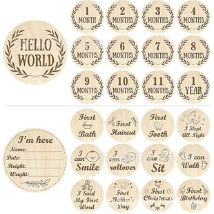 Globo de madera de doble cara bebé tarjeta de hito mensual accesorios de fotografía de hito mensual para registrar el crecimiento del bebé