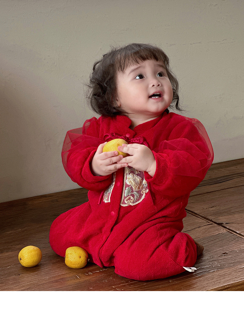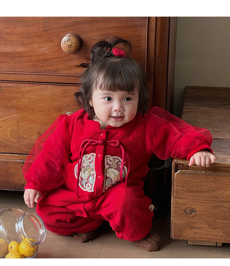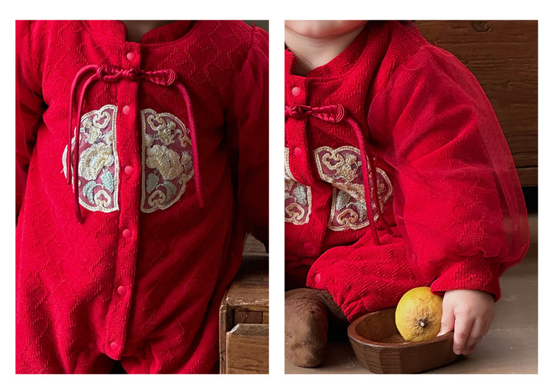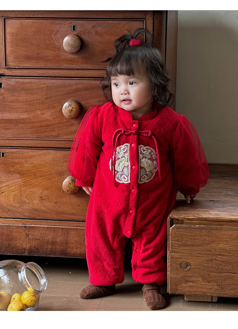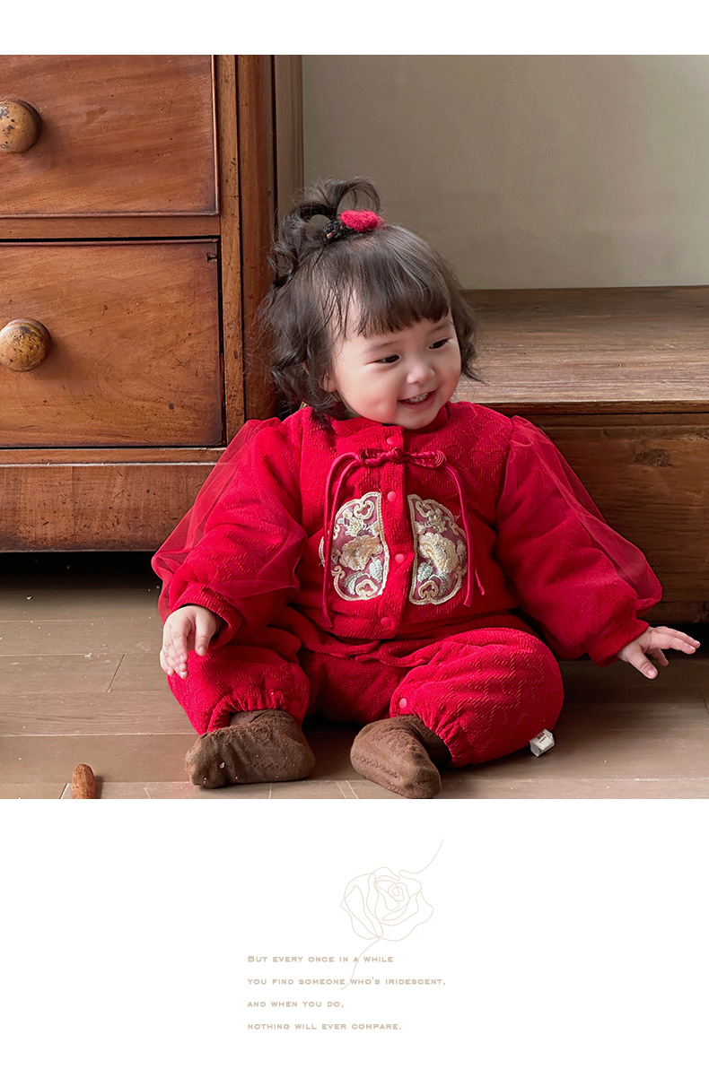 Ropa de bebé de una pieza de otoño e invierno más chaqueta de algodón con clip de terciopelo 0-2 años, luna llena, cien días, mameluco, ropa de Año Nuevo, ropa de fin de año 3