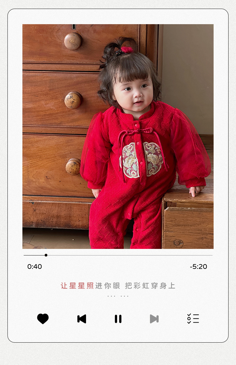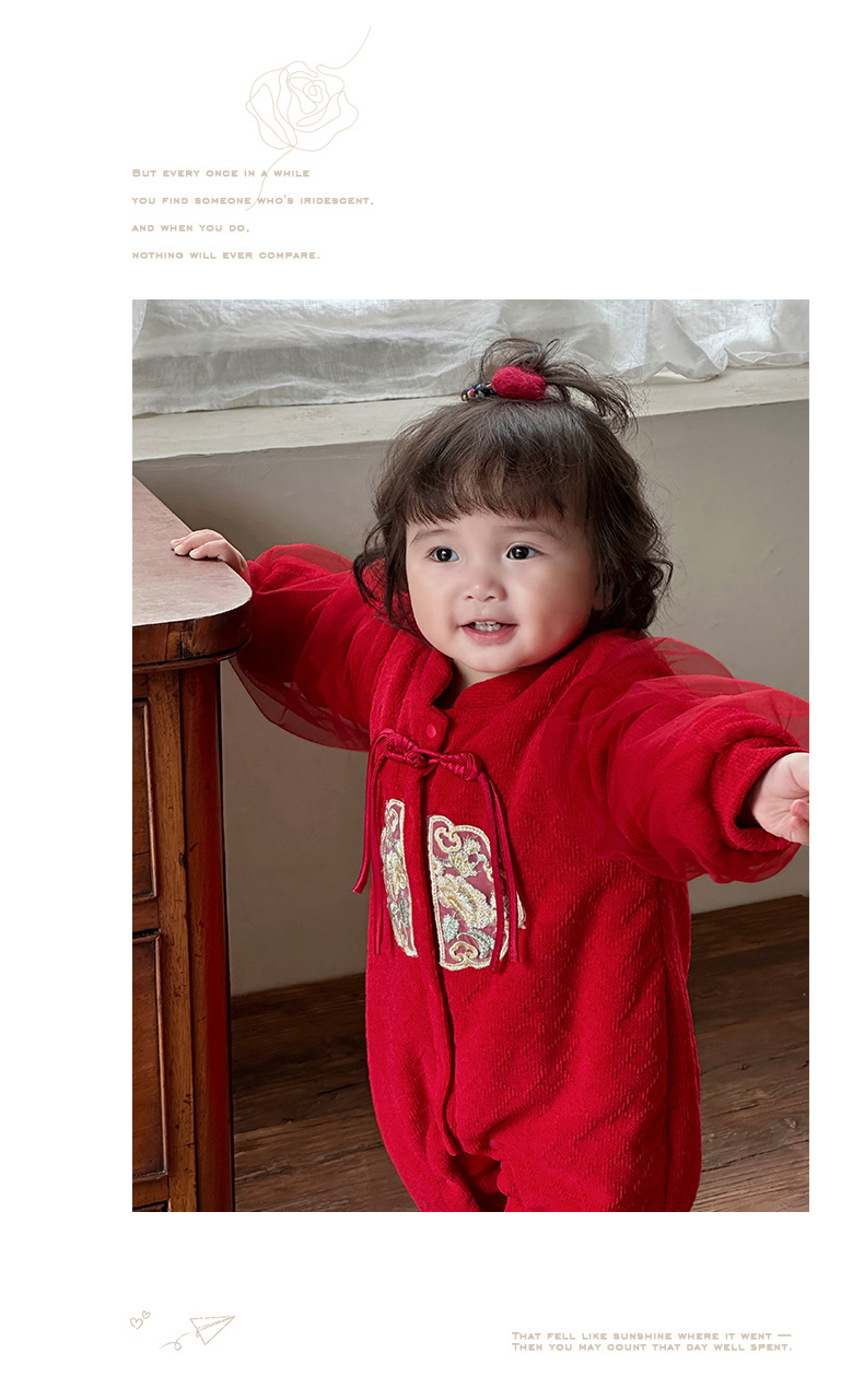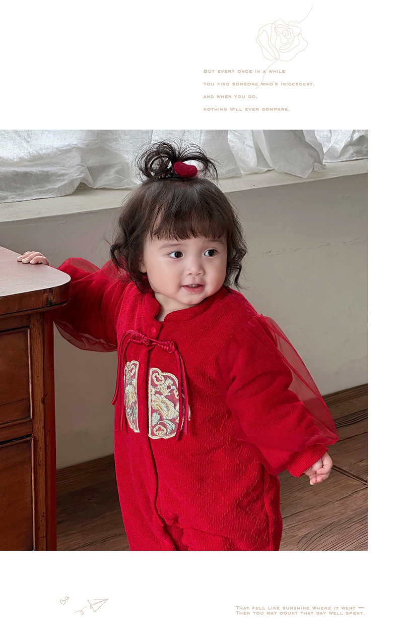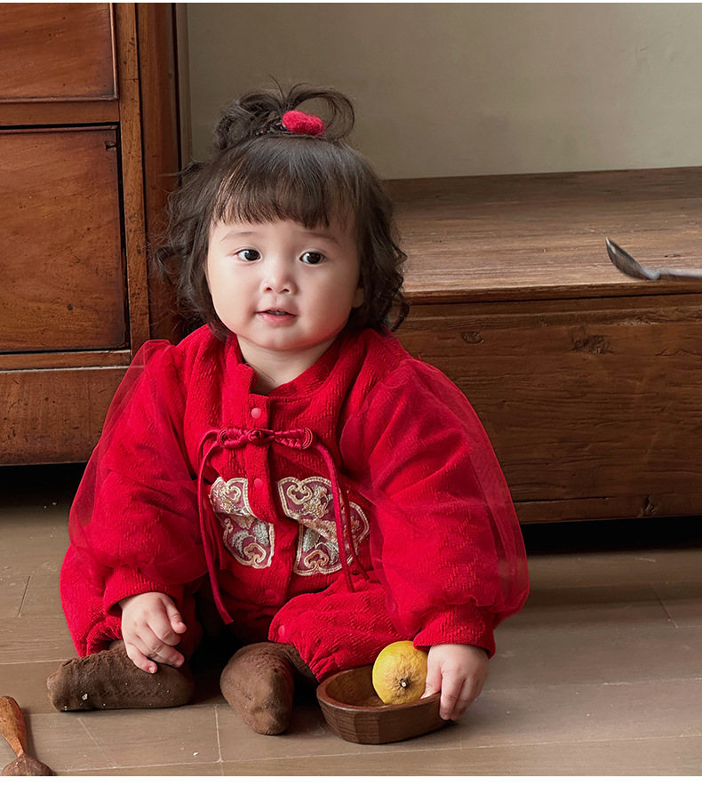 Ropa de bebé de una pieza de otoño e invierno más chaqueta de algodón con clip de terciopelo 0-2 años, luna llena, cien días, mameluco, ropa de Año Nuevo, ropa de fin de año 3