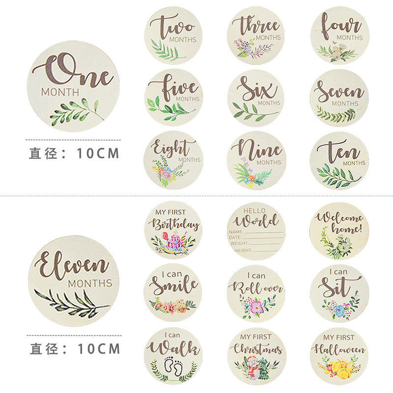 Tarjeta de luna de bebé de doble cara de madera Accesorios para fotos de bebé Tarjeta de hito de edad de doble cara de bebé Película mensual