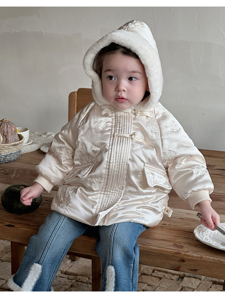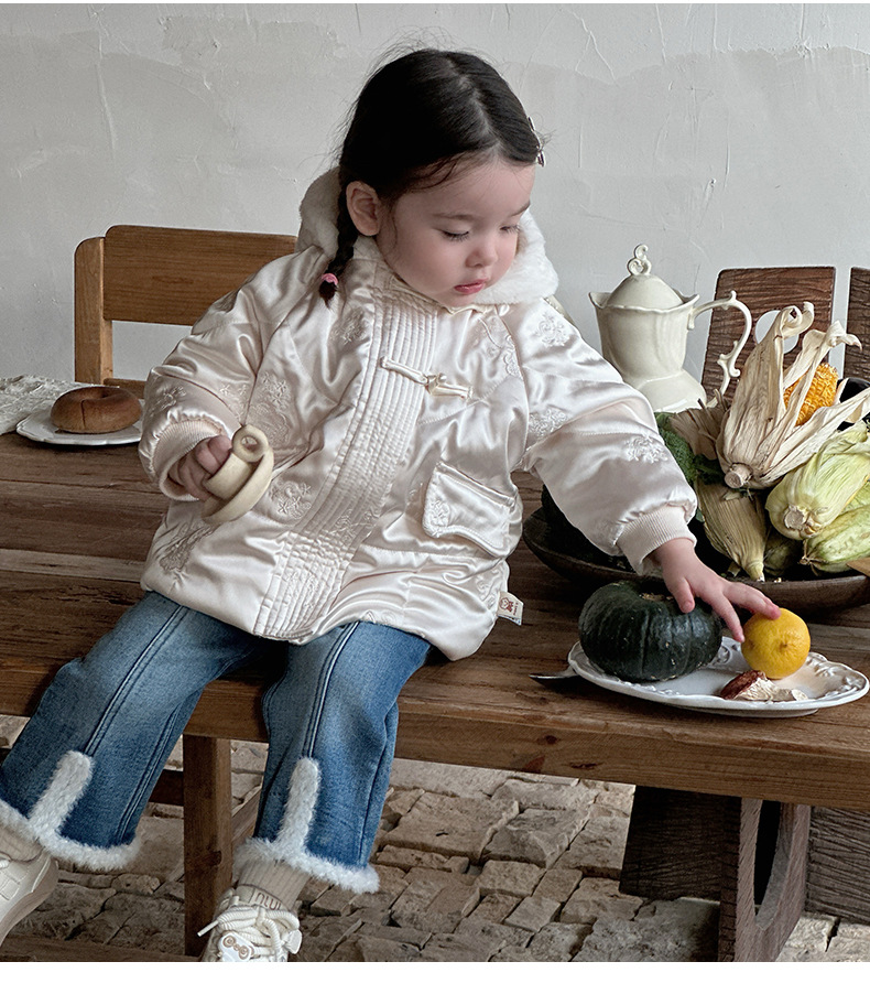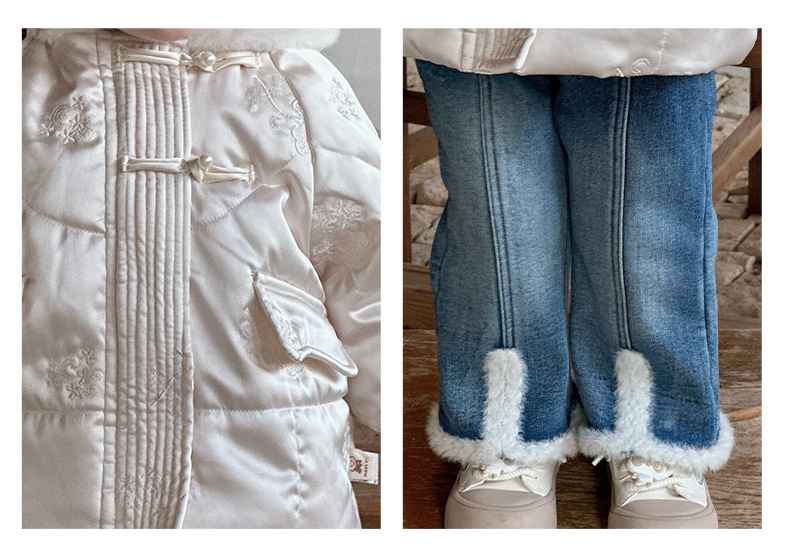 Chicas coreanas otoño e invierno más chaqueta con capucha acolchada de terciopelo chaqueta acolchada de invierno de bebé femenino más pantalones de terciopelo de dos piezas