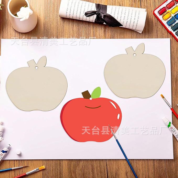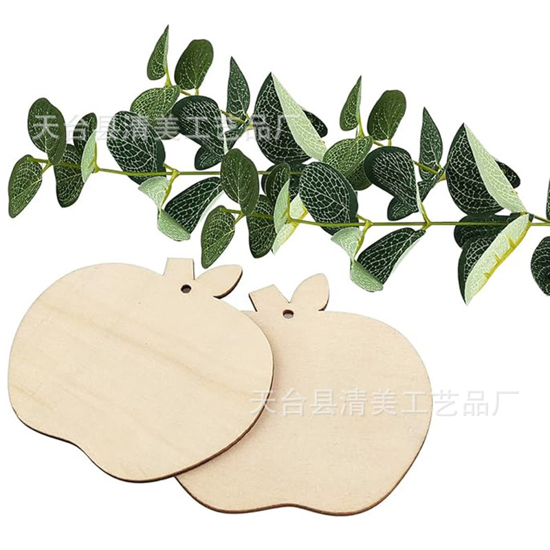 Manzana de madera de Navidad sin terminar decoración de hoja de madera colgante de hoja de madera de manzana colgante artesanal de bricolaje 10 piezas por paquete